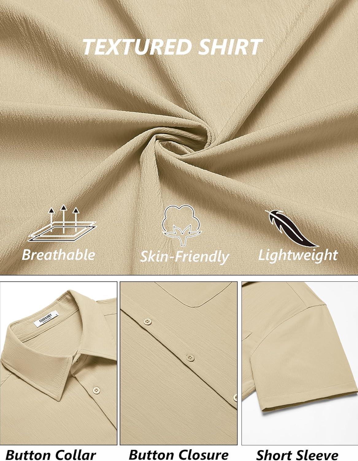 COOFANDY Mens Casual Button Down Shirts Short Sleeve Summer Beach Vacation Shirts(Khaki)