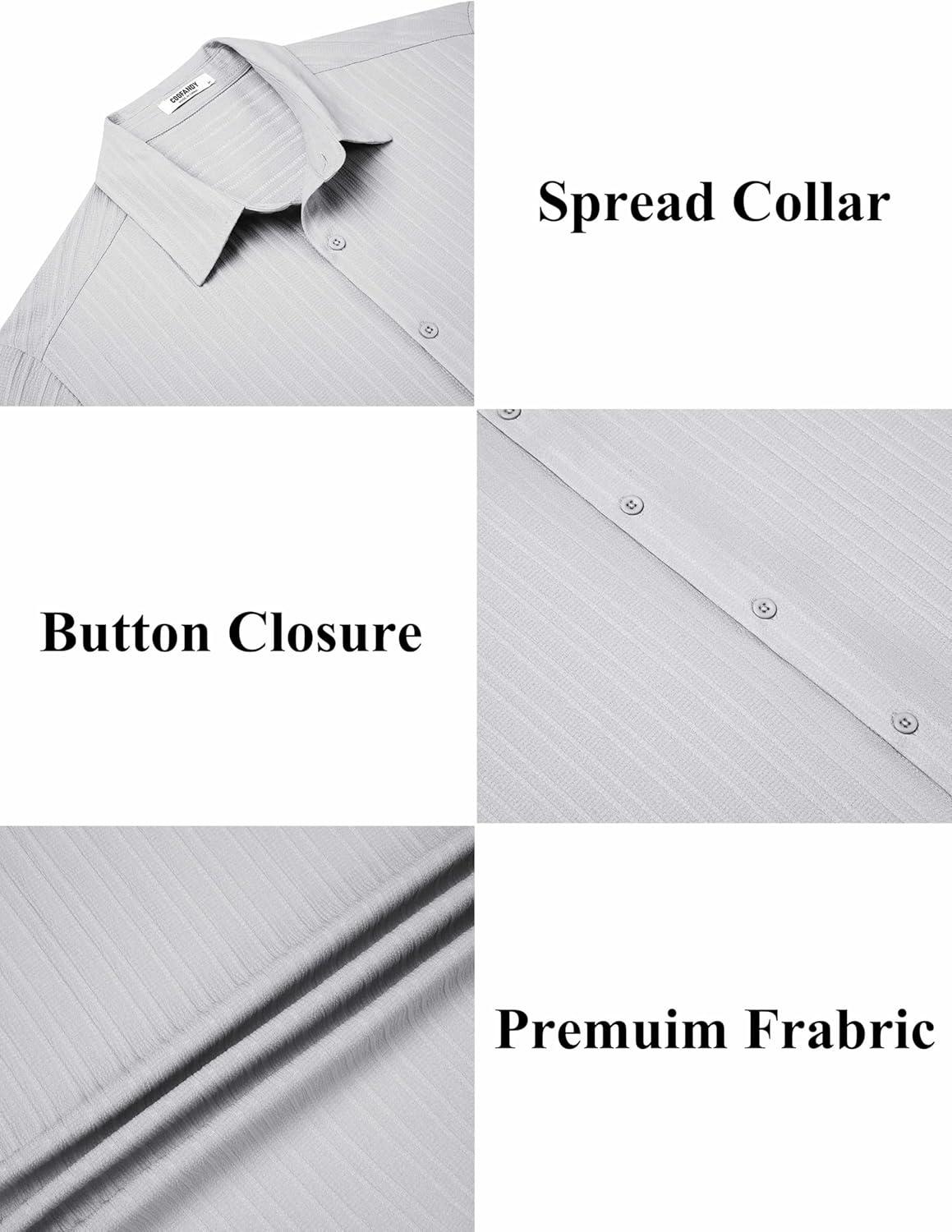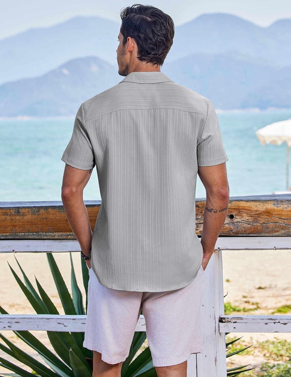 COOFANDY Men’s Casual Button Down Shirts Short Sleeve Textured Summer Beach Shirts(Light Grey)