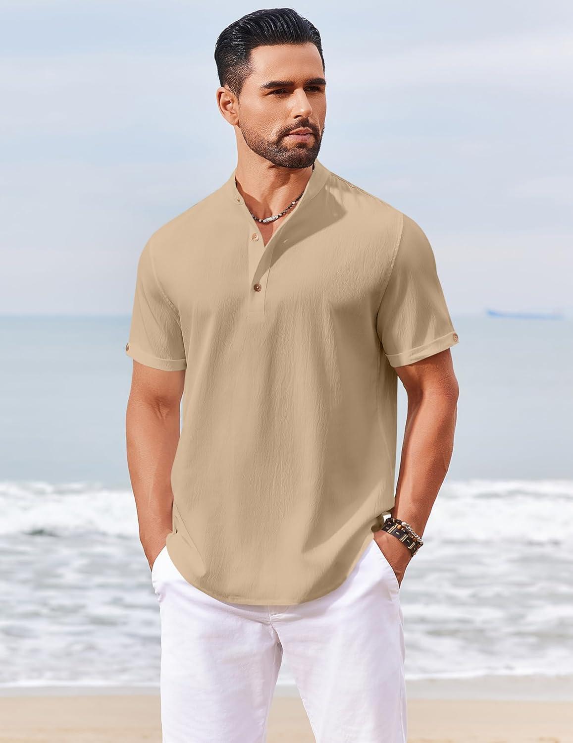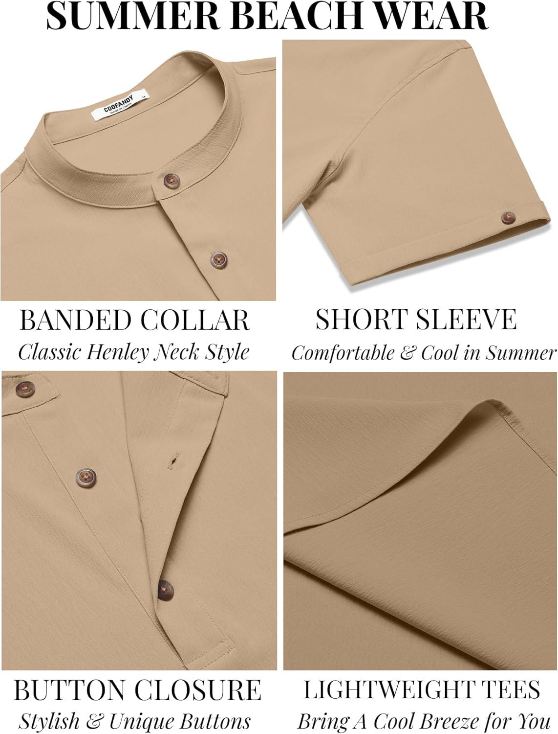 Be the first to review “COOFANDY Men’s Casual Henley Shirts Short Sleeve Summer Beach T-Shirts Banded Collar Henleys Button Tee Shirt(Khaki)” Cancel reply