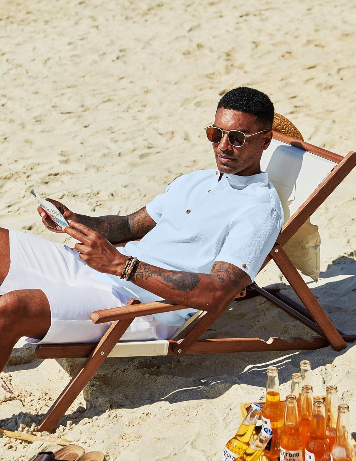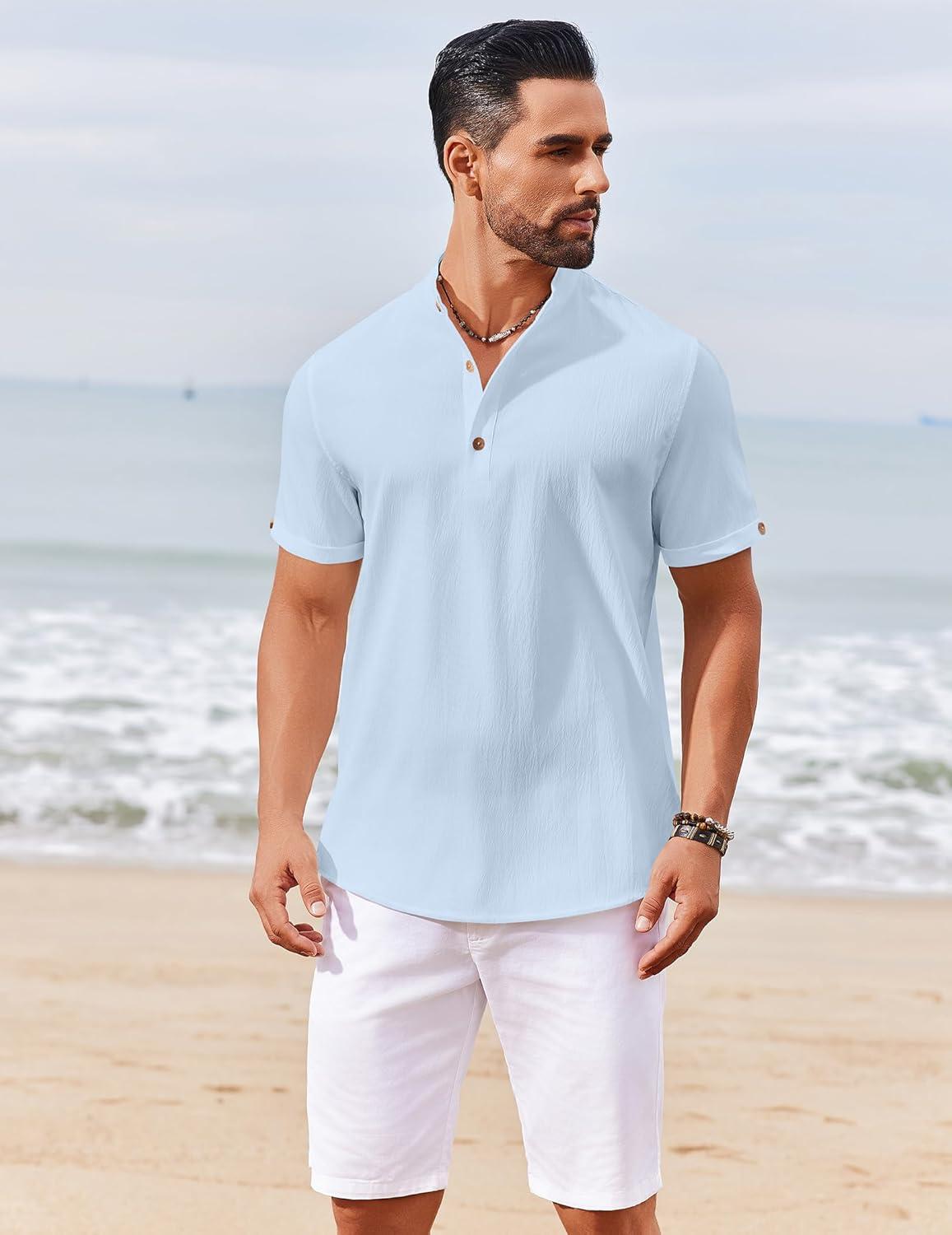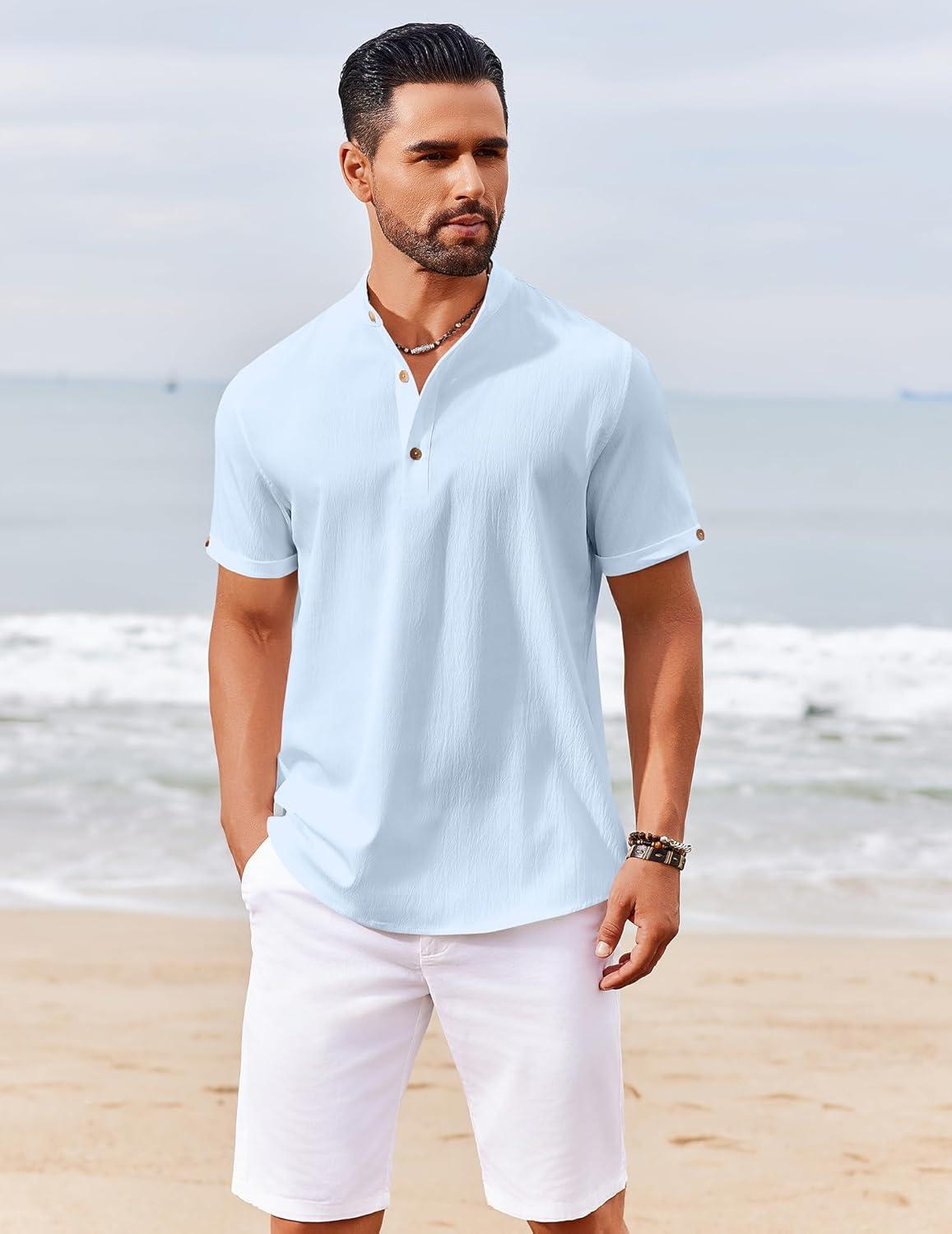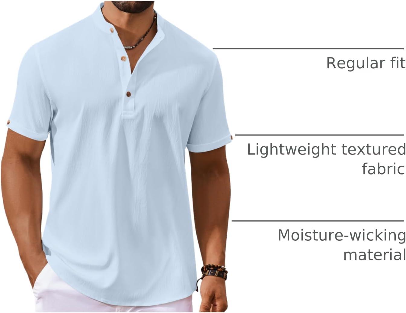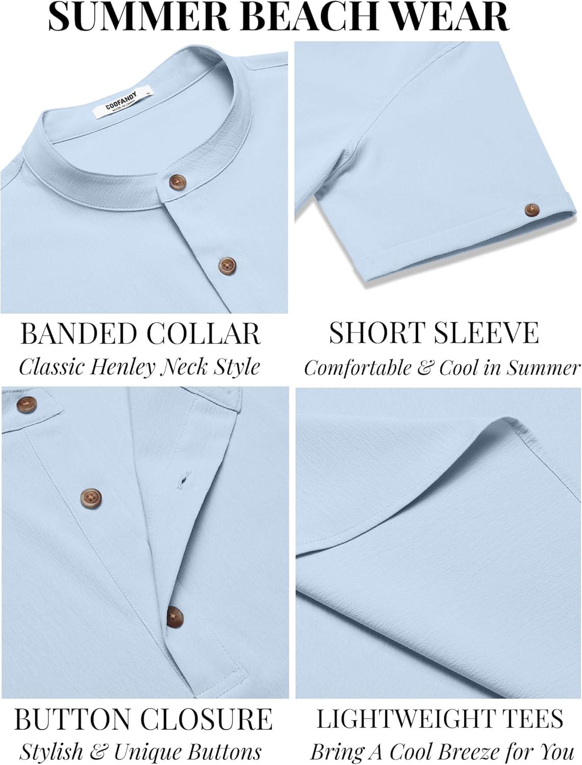 Be the first to review “COOFANDY Men’s Casual Henley Shirts Short Sleeve Summer Beach T-Shirts Banded Collar Henleys Button Tee Shirt(Sky Blue)” Cancel reply