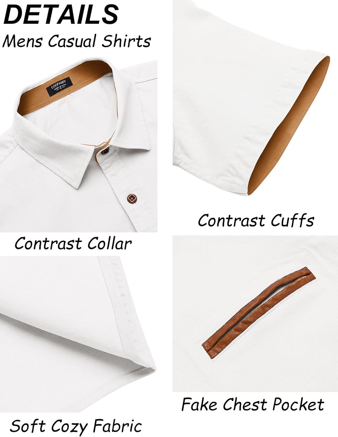 COOFANDY Men’s Casual Short Sleeve Button Down Dress Shirt Plaid Collar Denim Work Shirts(B- White – No Pocket)