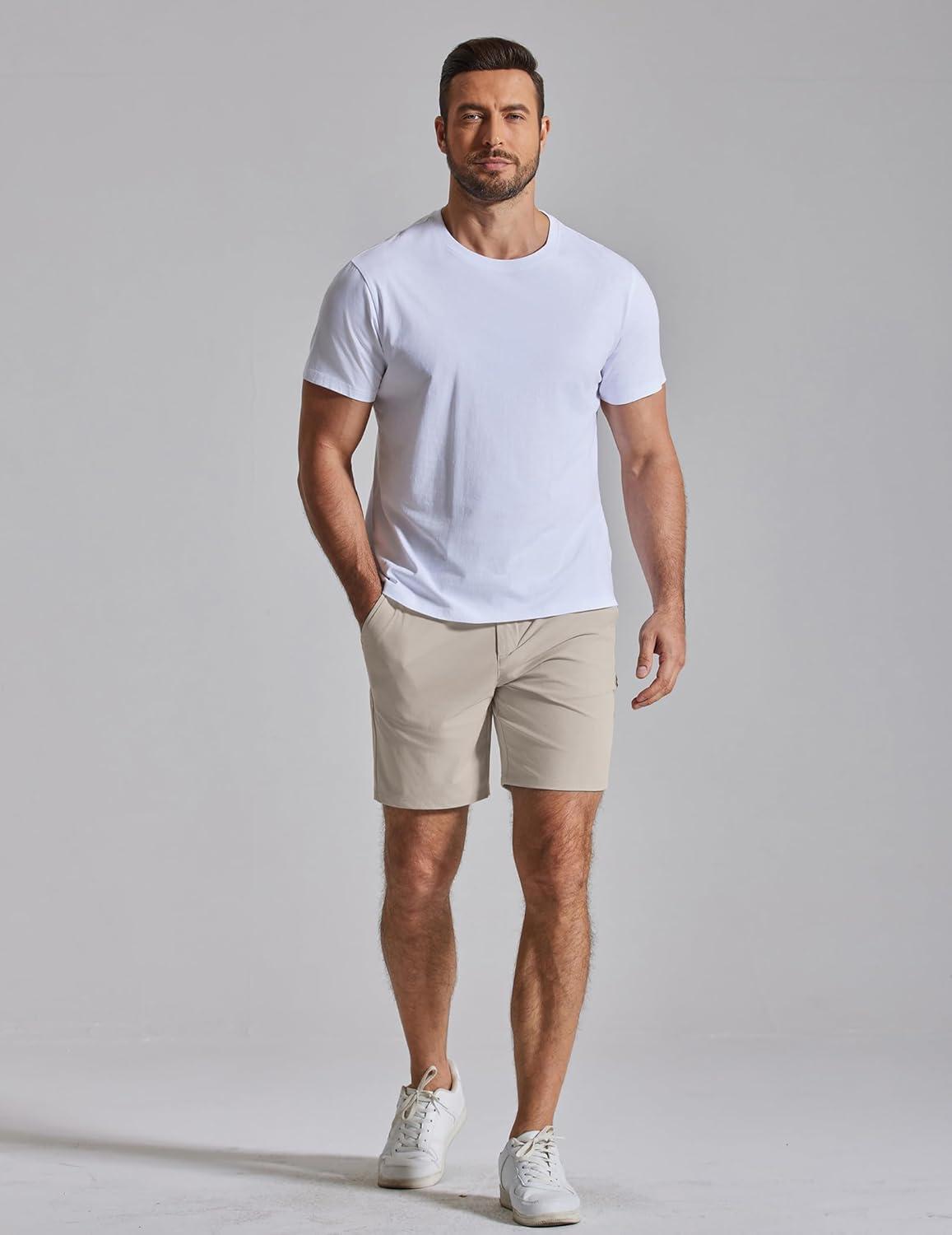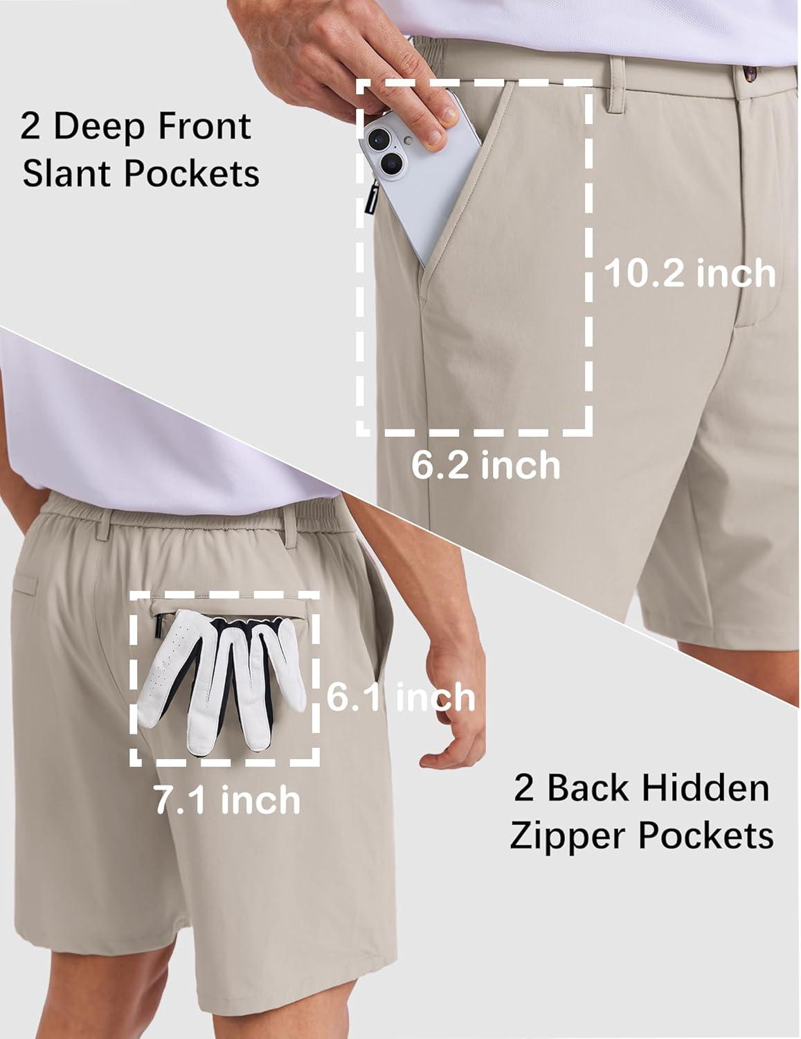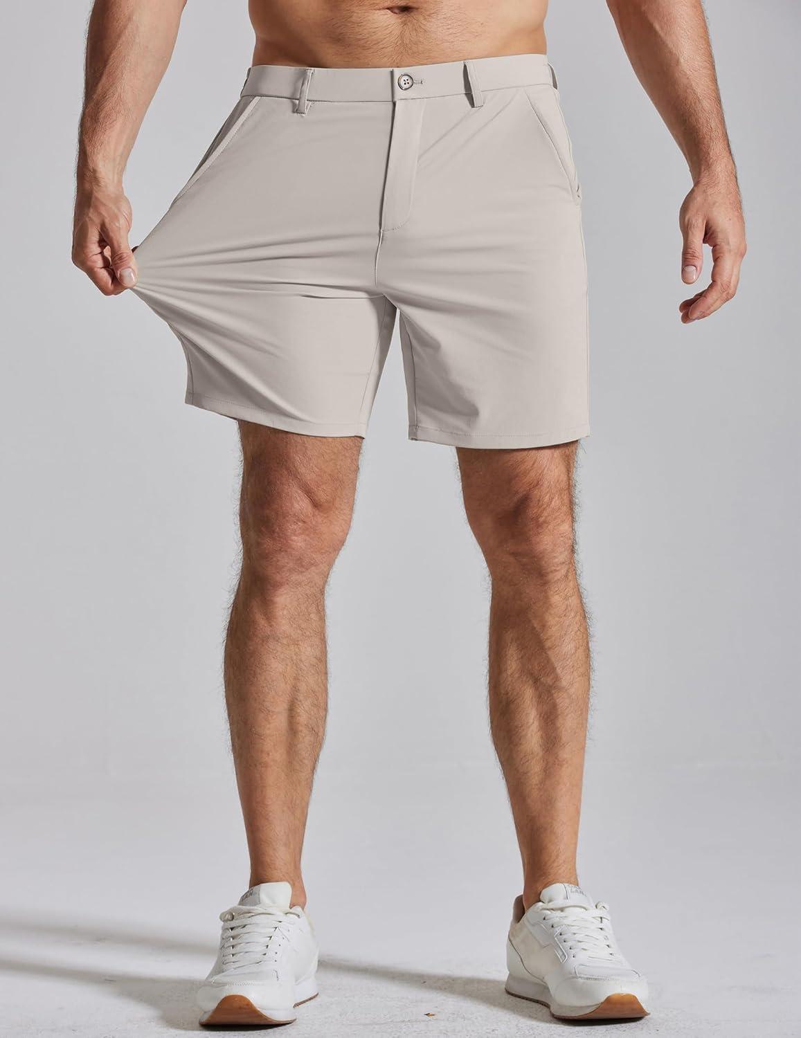 COOFANDY Men’s Casual Shorts 7″ Stretch Golf Shorts with 4 Pockets Quick Dry Lightweight Shorts Dress for Hiking Work(Light Khaki)
