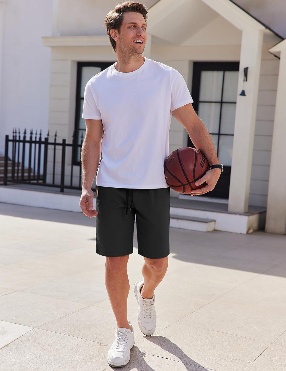 COOFANDY Mens Casual Shorts Cotton Elastic Waist Drawstring Shorts Lightweight Summer Beach Shorts(A-black)