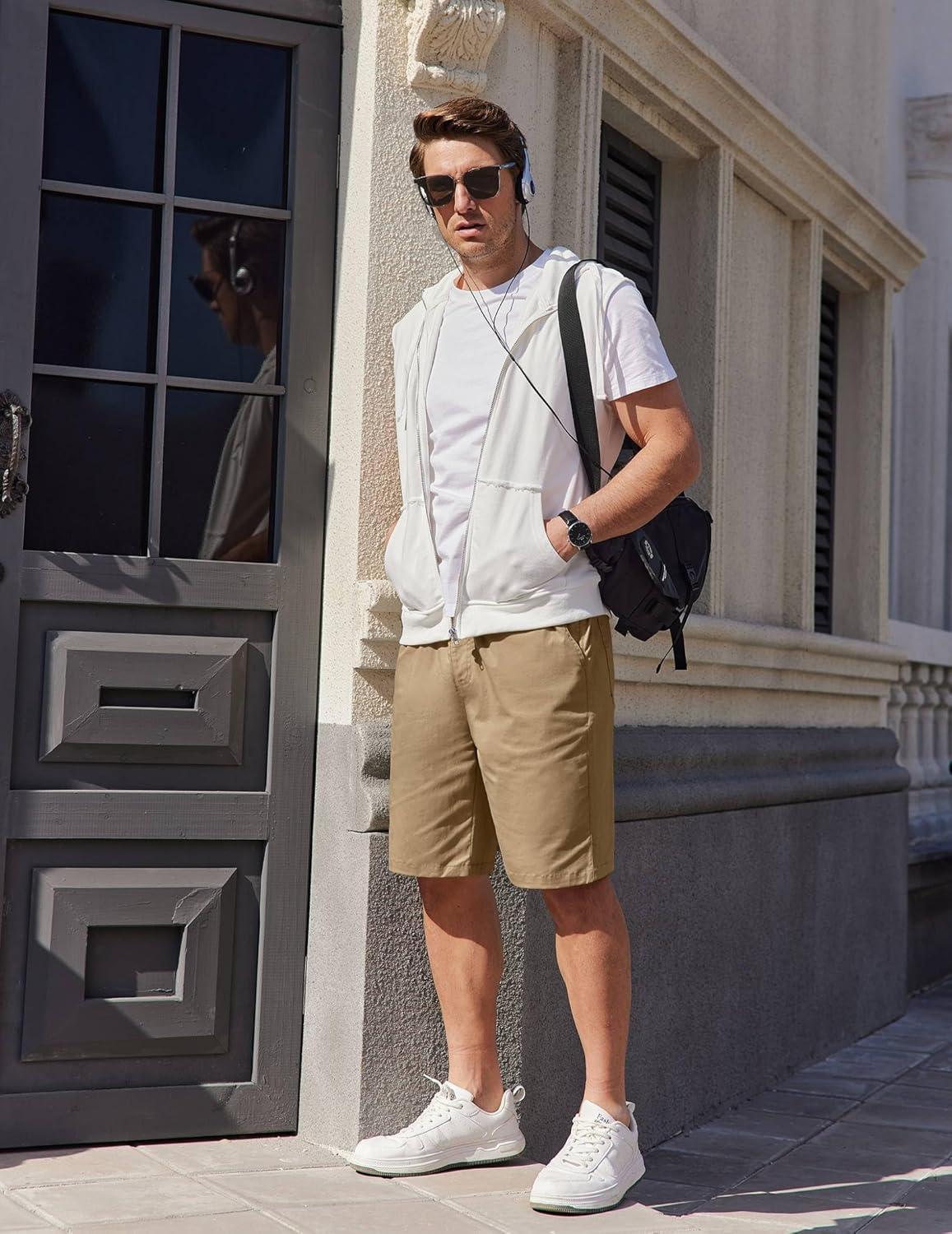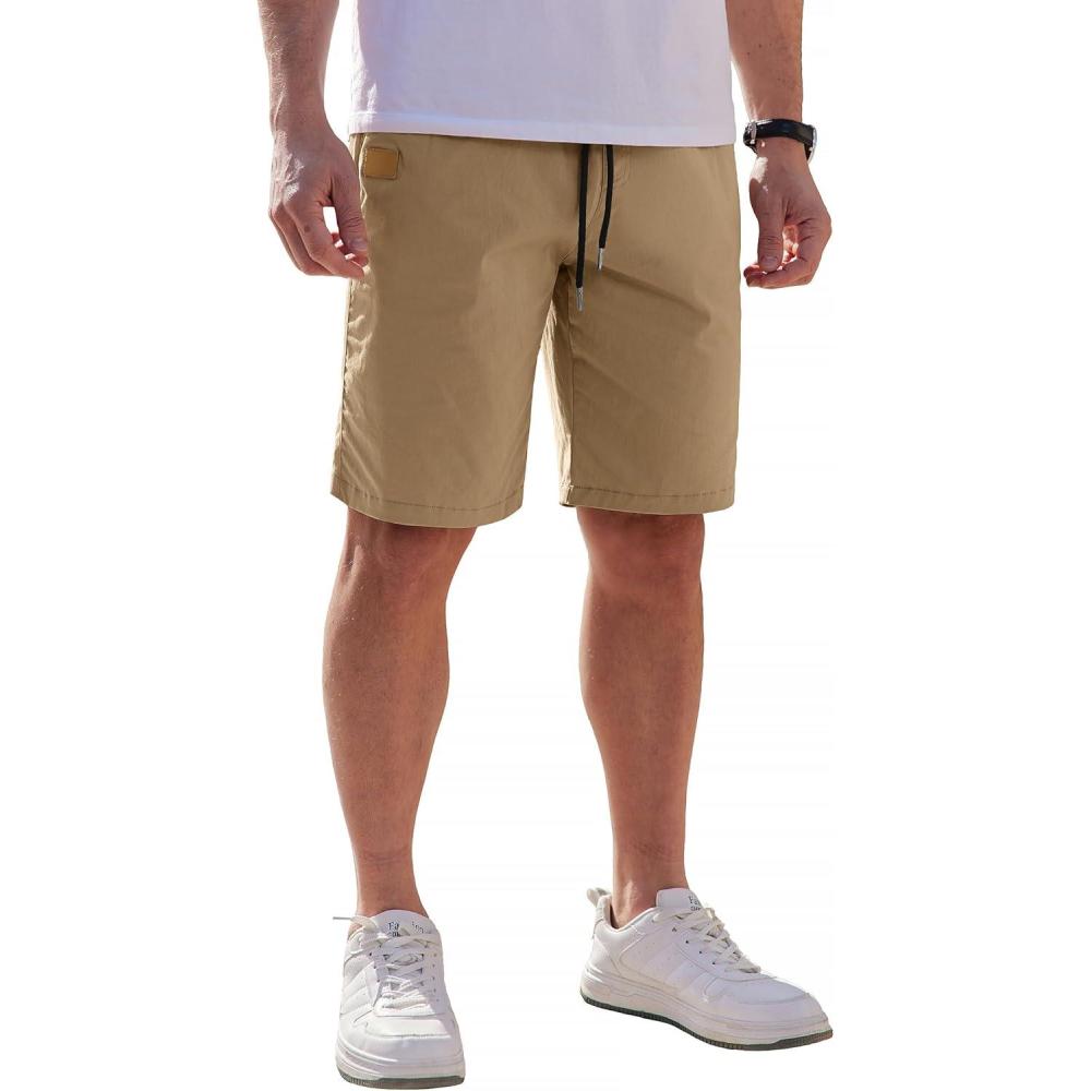 COOFANDY Mens Casual Shorts Cotton Elastic Waist Drawstring Shorts Lightweight Summer Beach Shorts(A-dark Khaki)