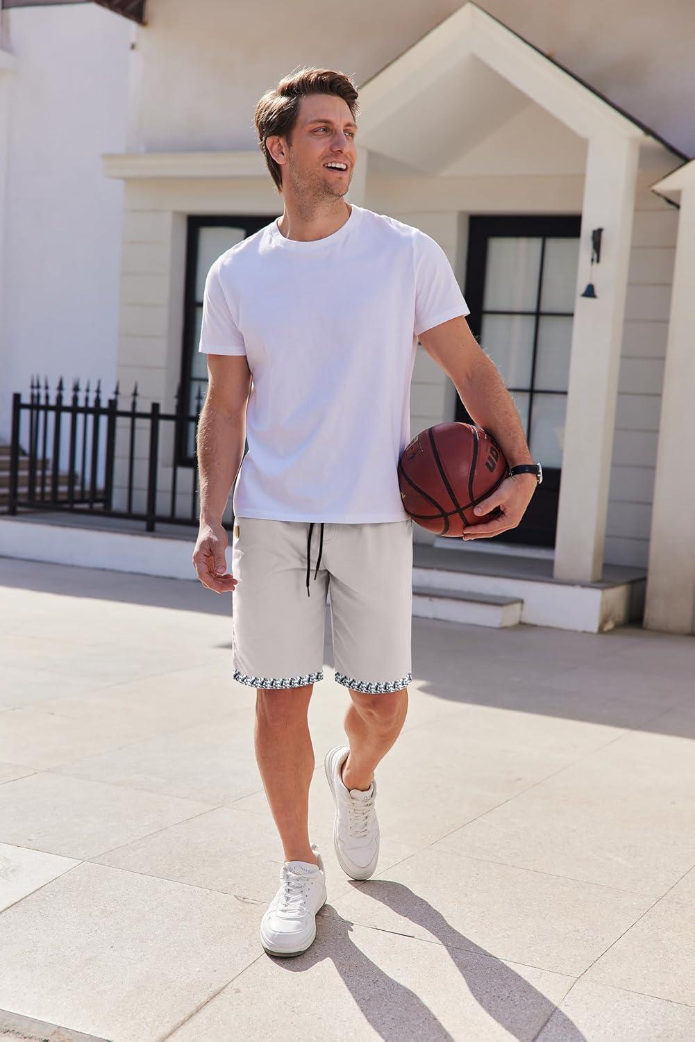 COOFANDY Mens Casual Shorts Cotton Elastic Waist Drawstring Shorts Lightweight Summer Beach Shorts(A-pat1)