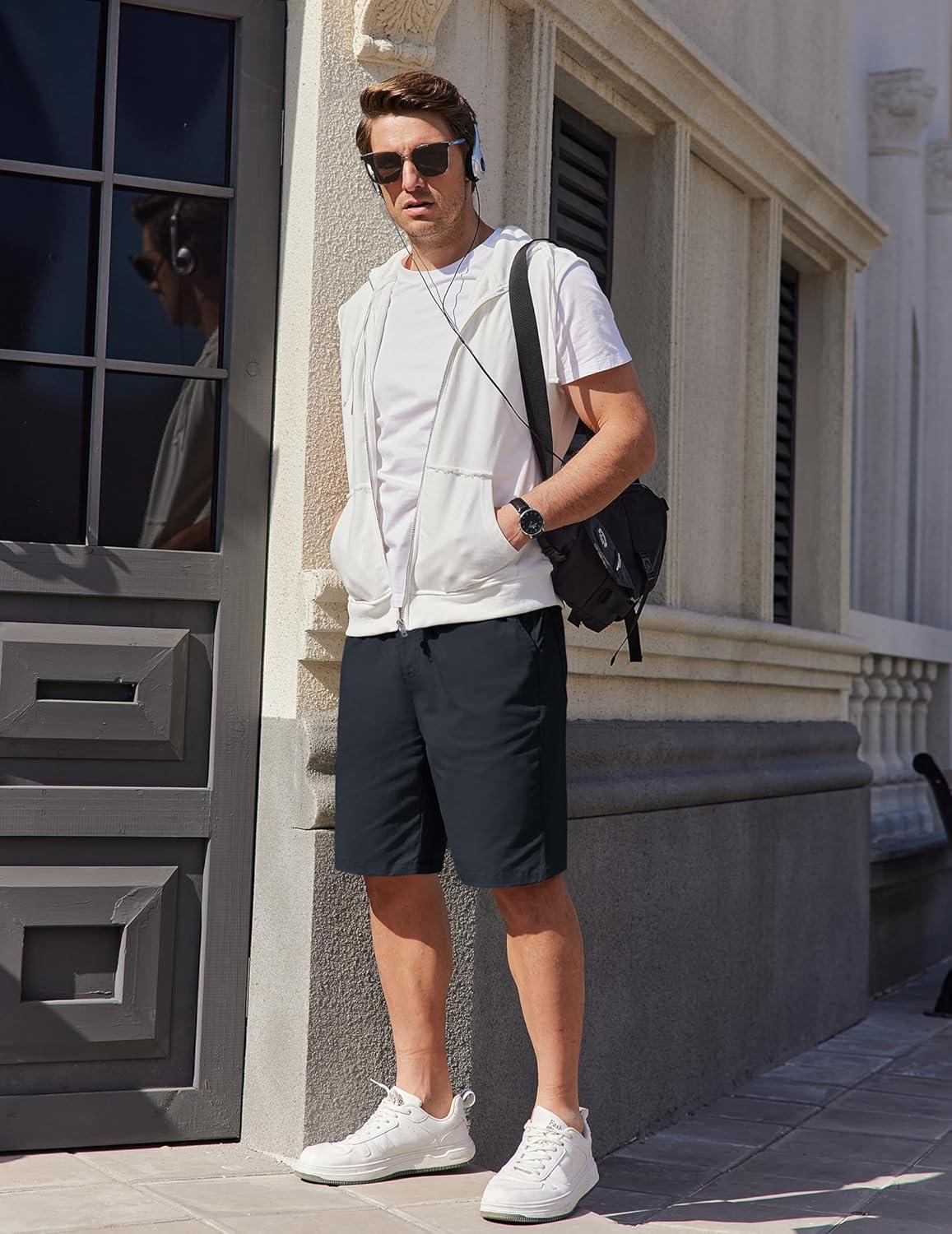 COOFANDY Mens Casual Shorts Cotton Elastic Waist Drawstring Shorts Lightweight Summer Beach Shorts(Dark Grey)