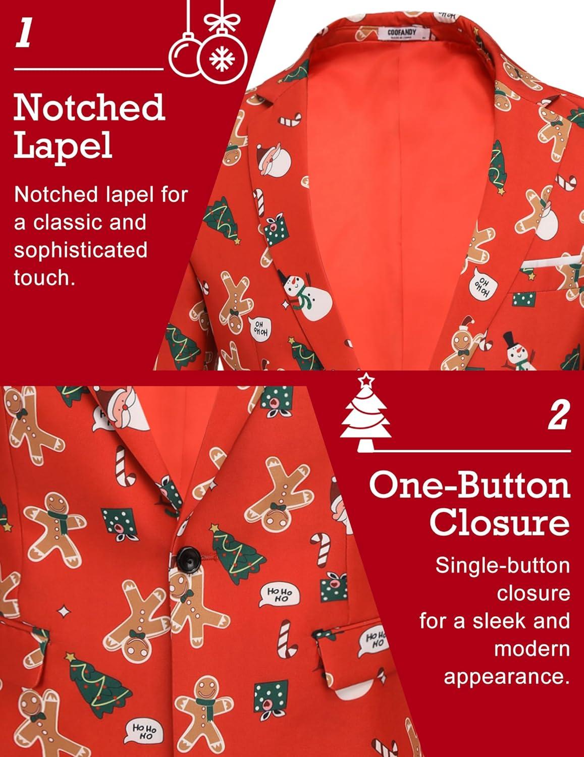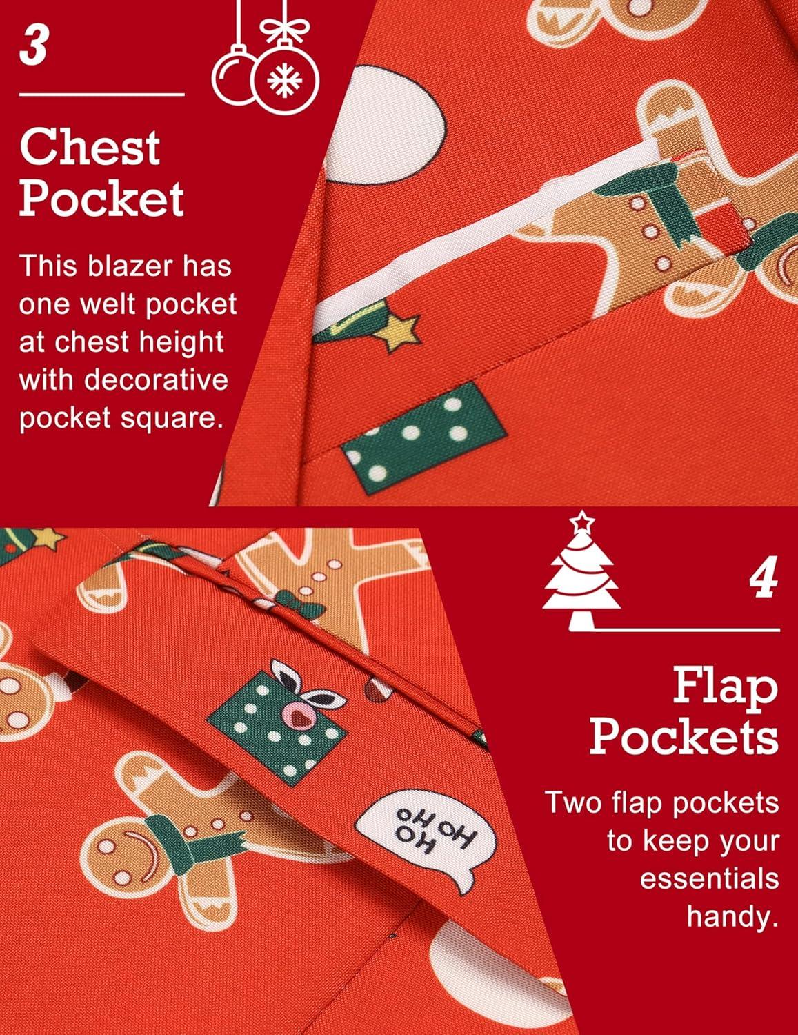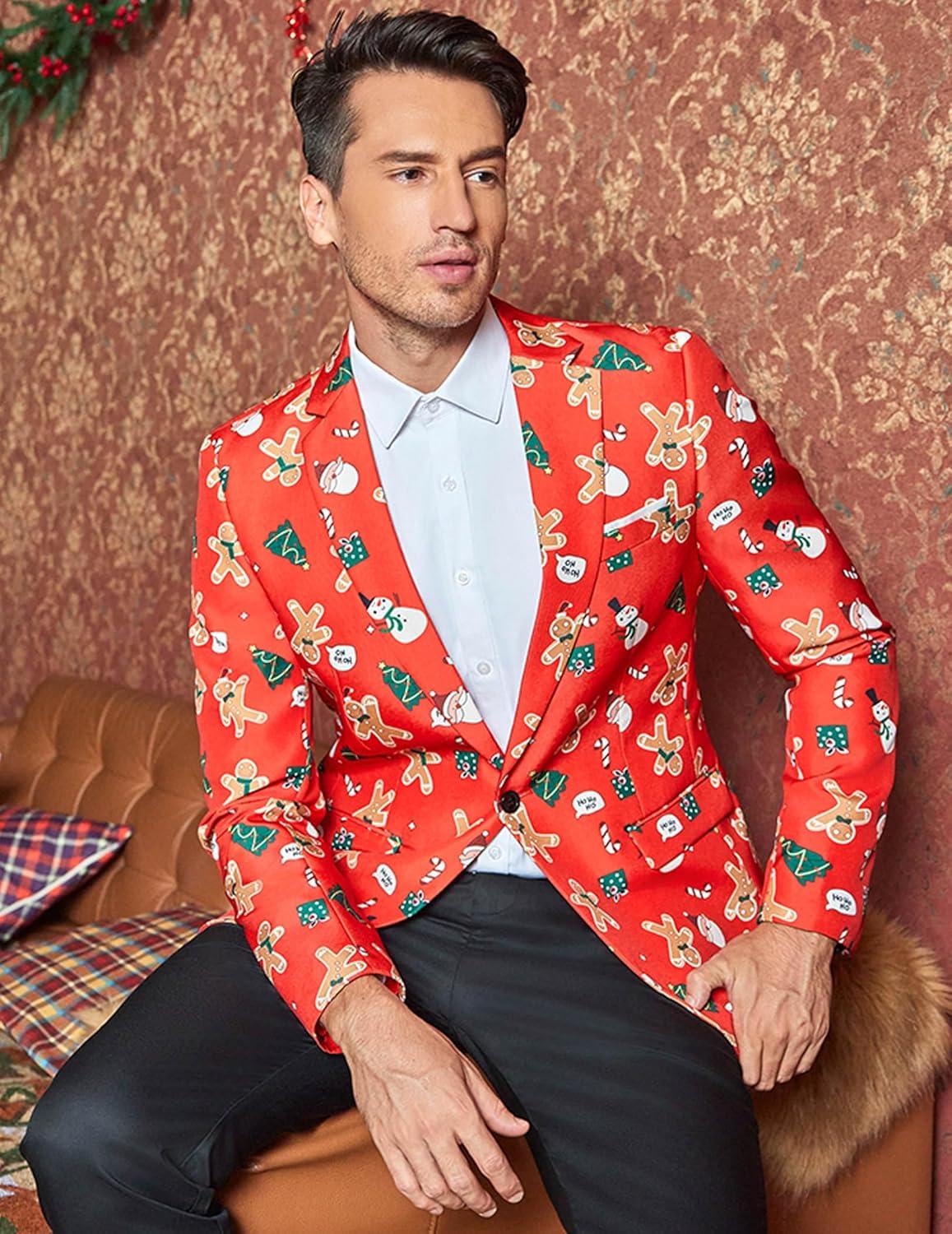 COOFANDY Men’s Christmas Blazer Jacket One Button Halloween Sport Coat Christmas Party Holiday Jacket(Christmas Blazer – Gingerbread Man)