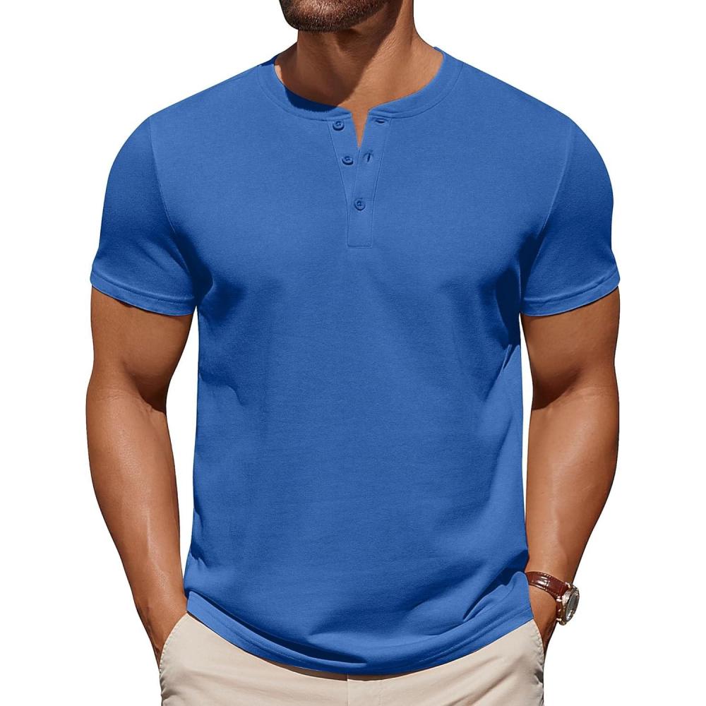 COOFANDY Mens Cotton Henley T-Shirts Short Sleeve Button Casual Basic Tees Work Shirts with Split Side(Blue)