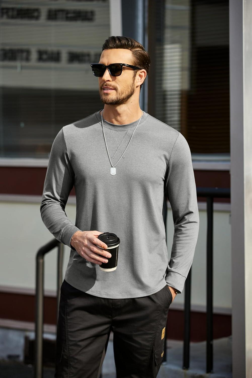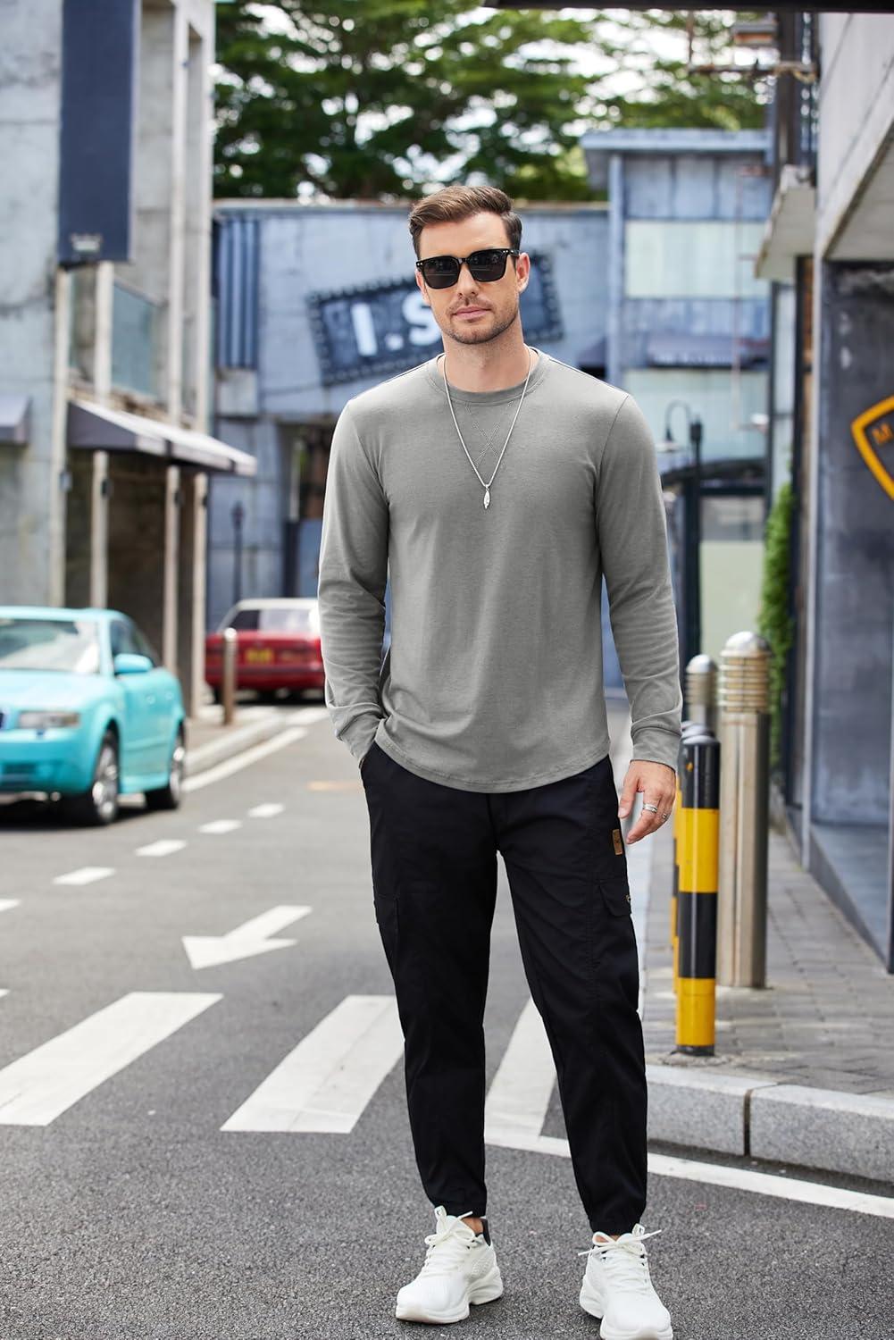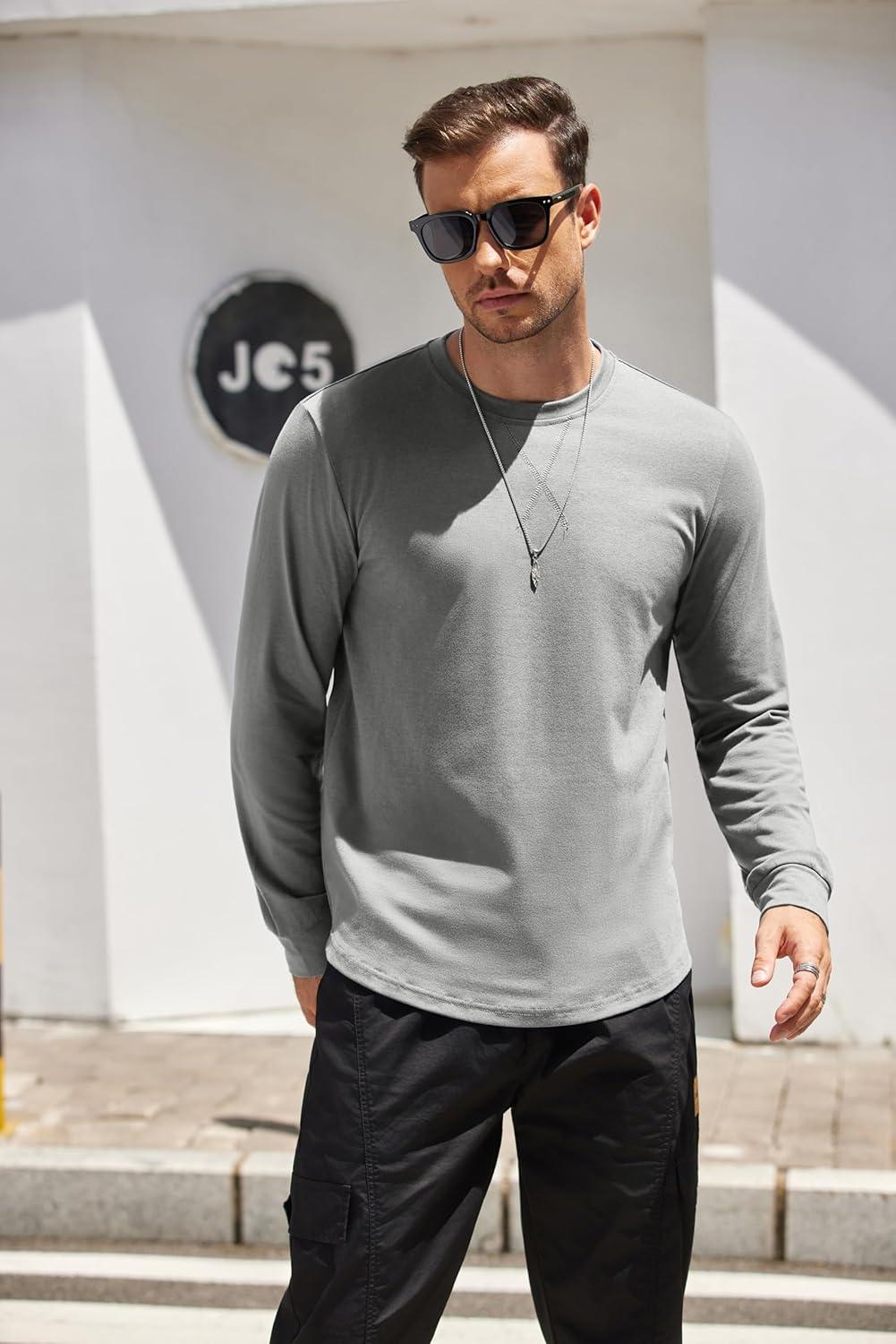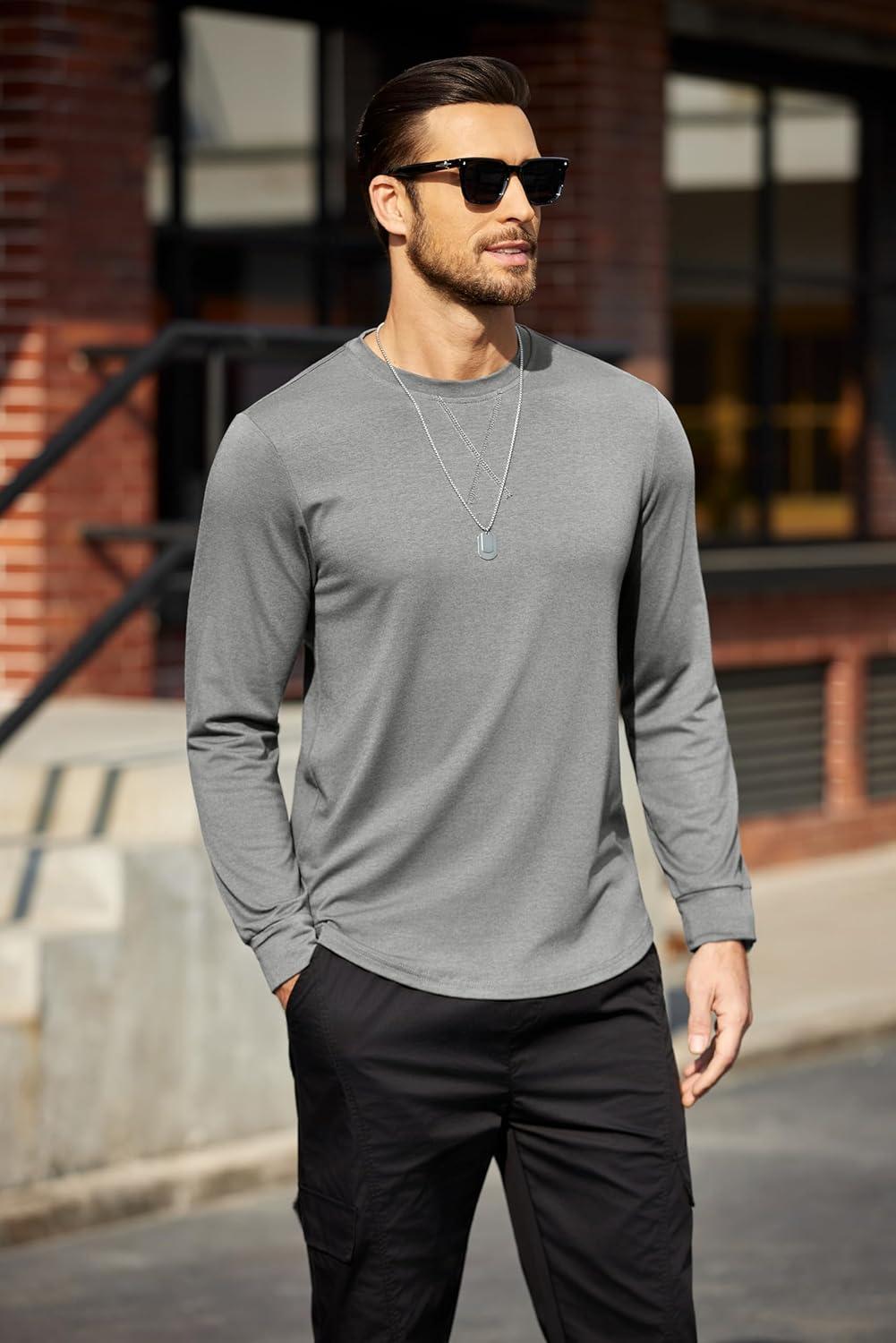 COOFANDY Mens Cotton Hipster Hip Hop Longline Crewneck T Shirts Casual Long Sleeve Tees Curved Hem Gym Shirts(One Piece- Dark Grey)