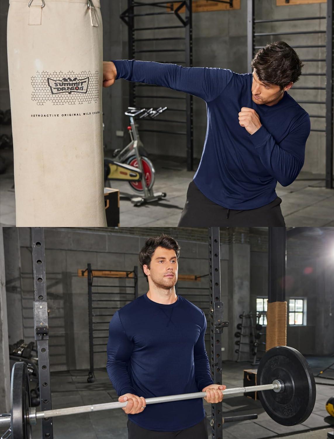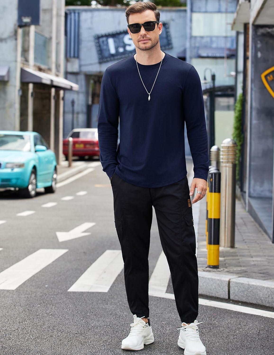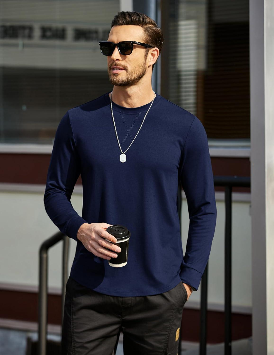 COOFANDY Mens Cotton Hipster Hip Hop Longline Crewneck T Shirts Casual Long Sleeve Tees Curved Hem Gym Shirts(One Piece- Navy Blue)