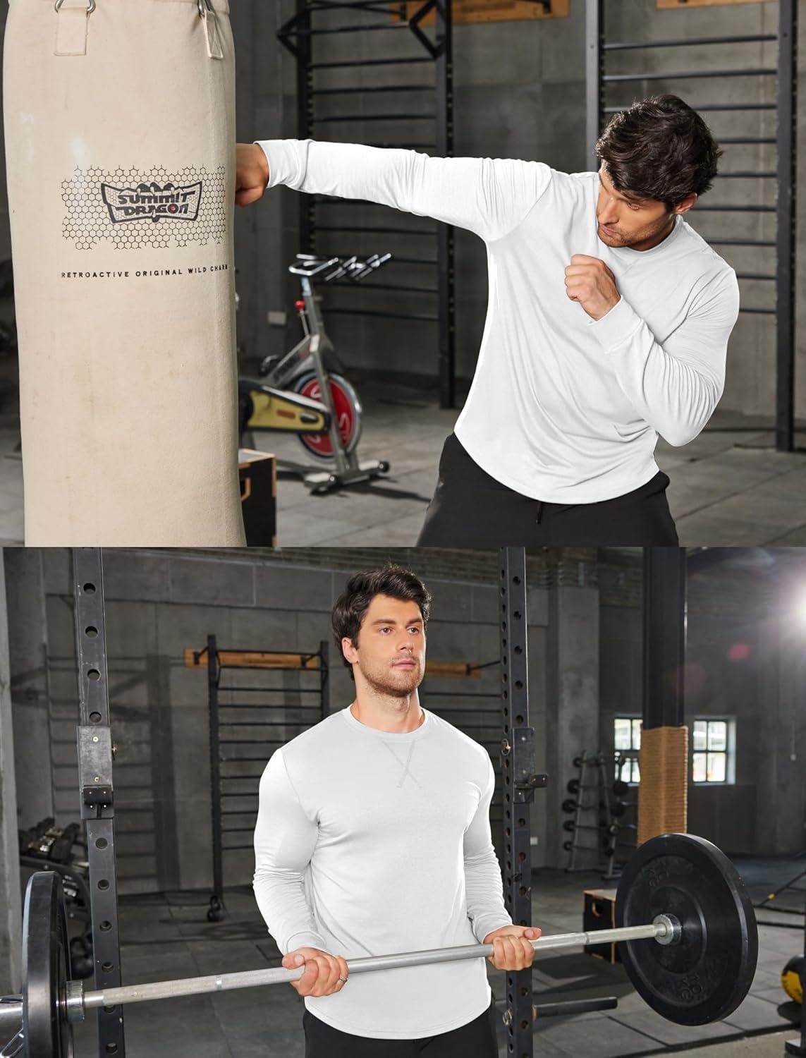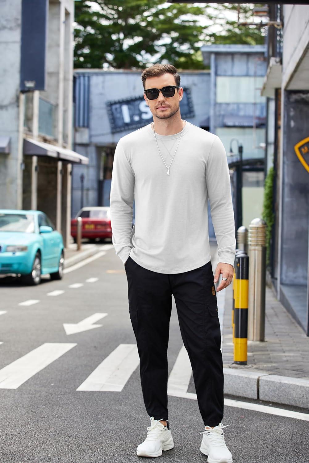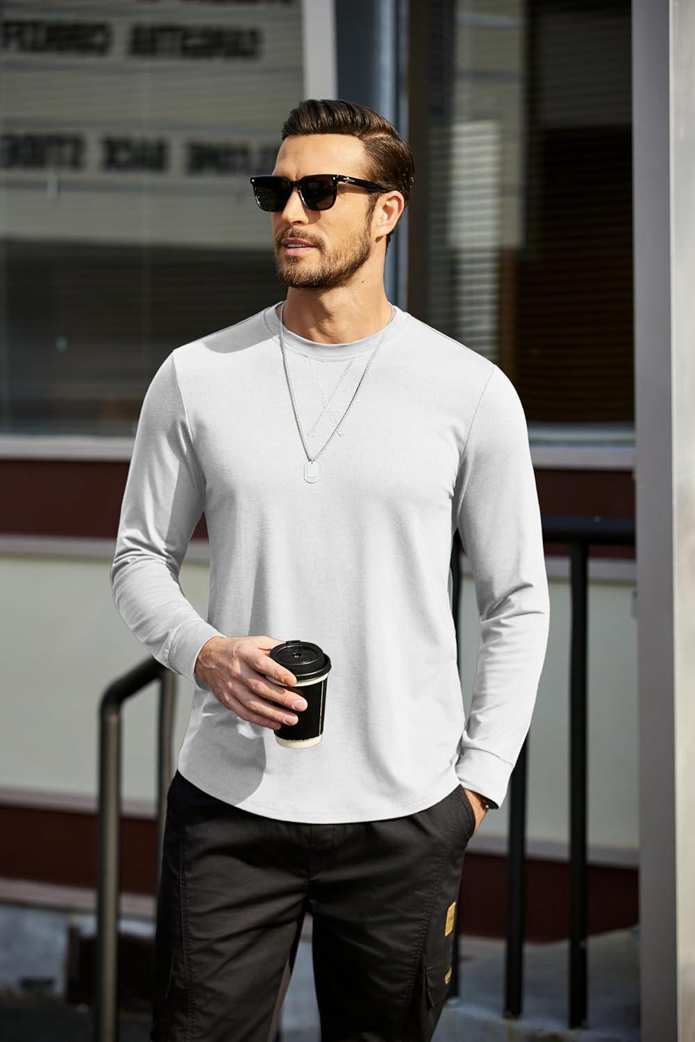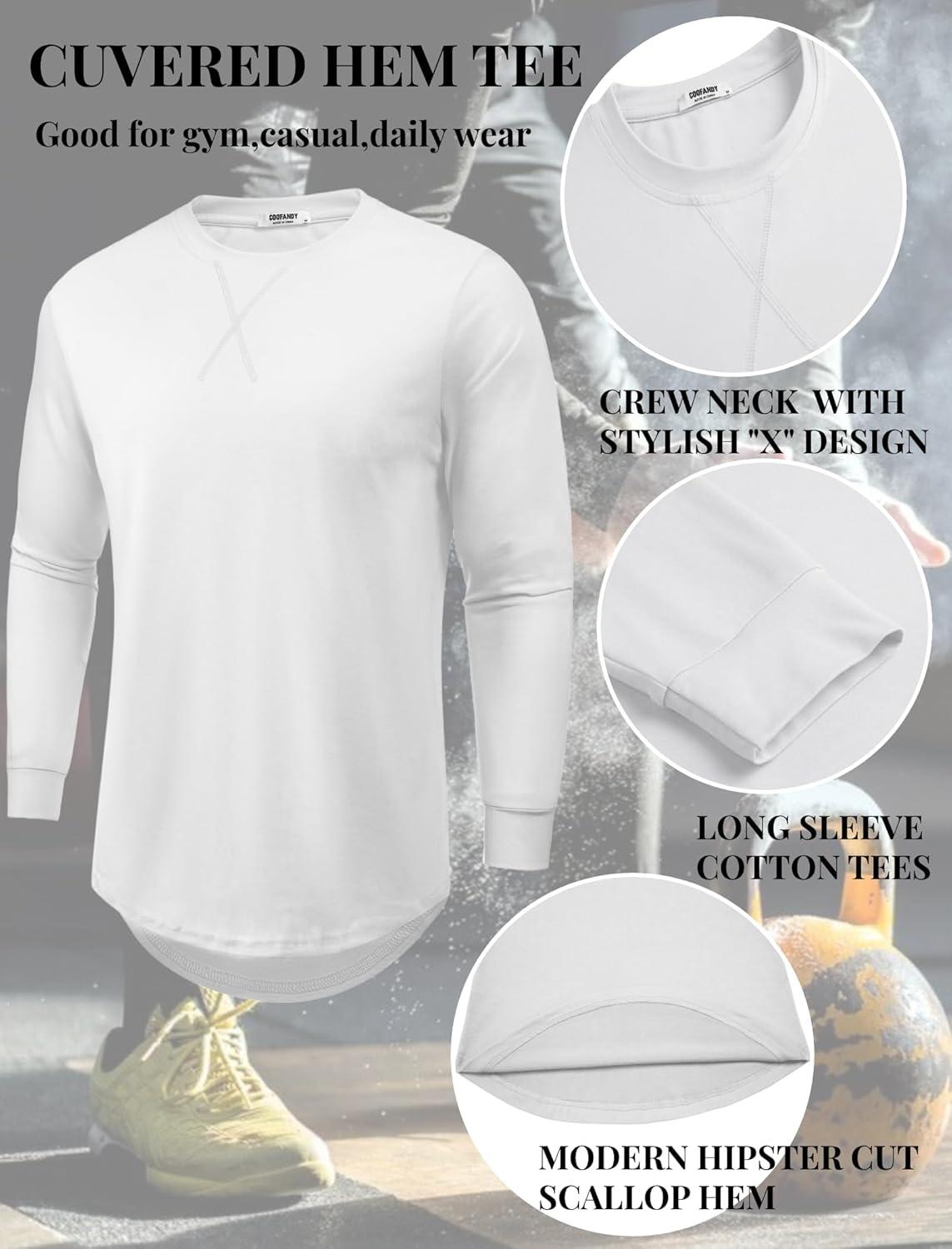 COOFANDY Mens Cotton Hipster Hip Hop Longline Crewneck T Shirts Casual Long Sleeve Tees Curved Hem Gym Shirts(One Piece- White)
