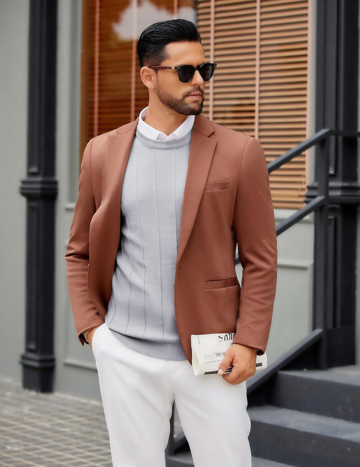 COOFANDY Men’s Crew Neck Sweater Long Sleeve Ribbed Knit Dress Sweaters Casual Slim Fit Pullover(Khaki)