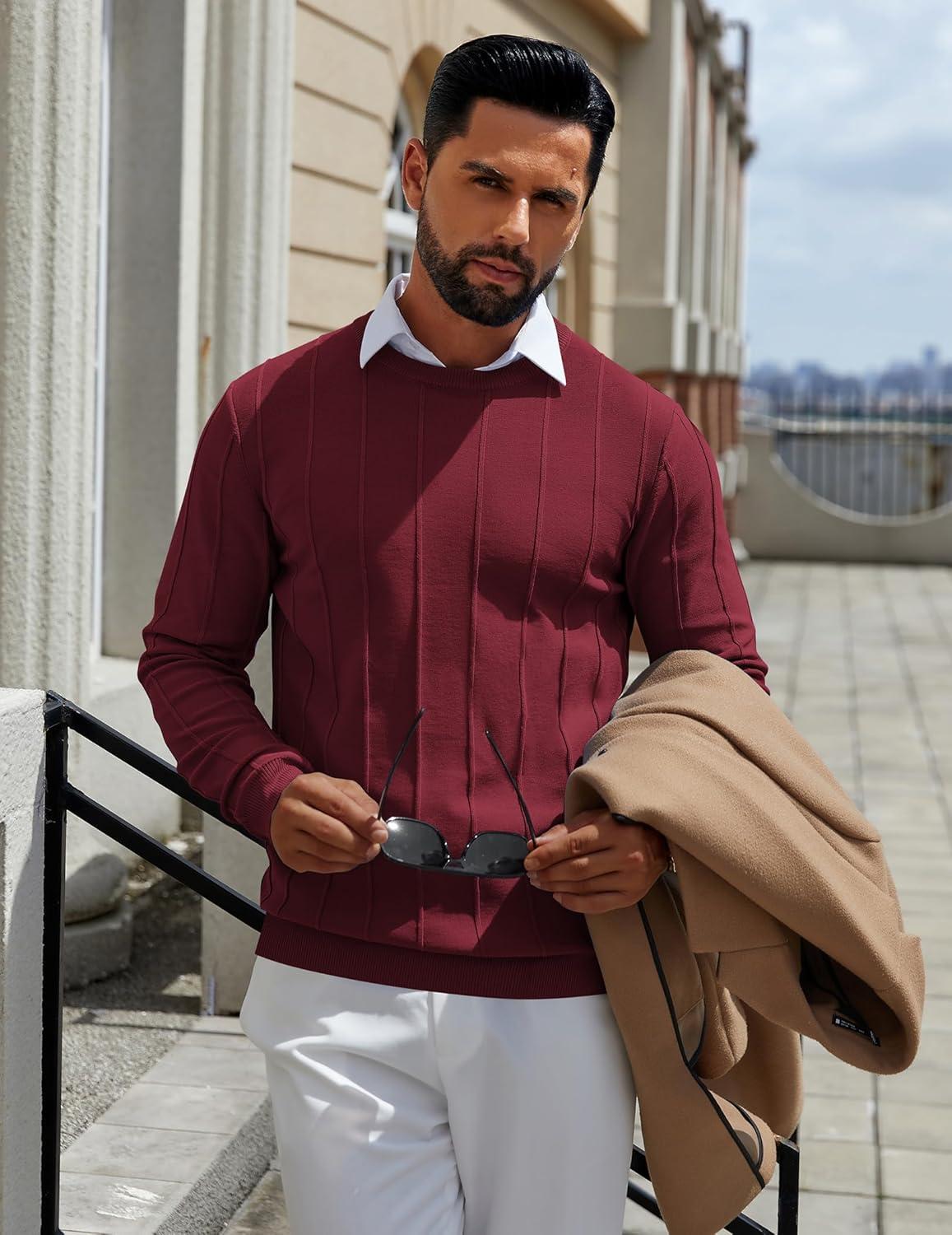 Get your hands on our newest COOFANDY Men’s Crew Neck Sweater Long Sleeve Ribbed Knit Dress Sweaters Casual Slim Fit Pullover(Wine Red) and enjoy a limited-time discount offer.