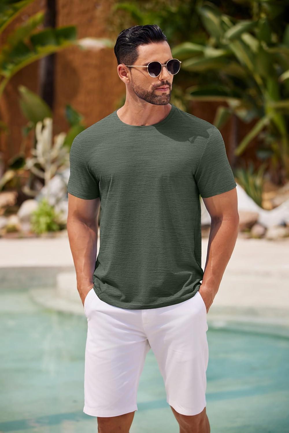 COOFANDY Mens Crew Neck T Shirt Short Sleeve Casual Summer Basic Tee Slim Fit Workout T-Shirt(Army Green)