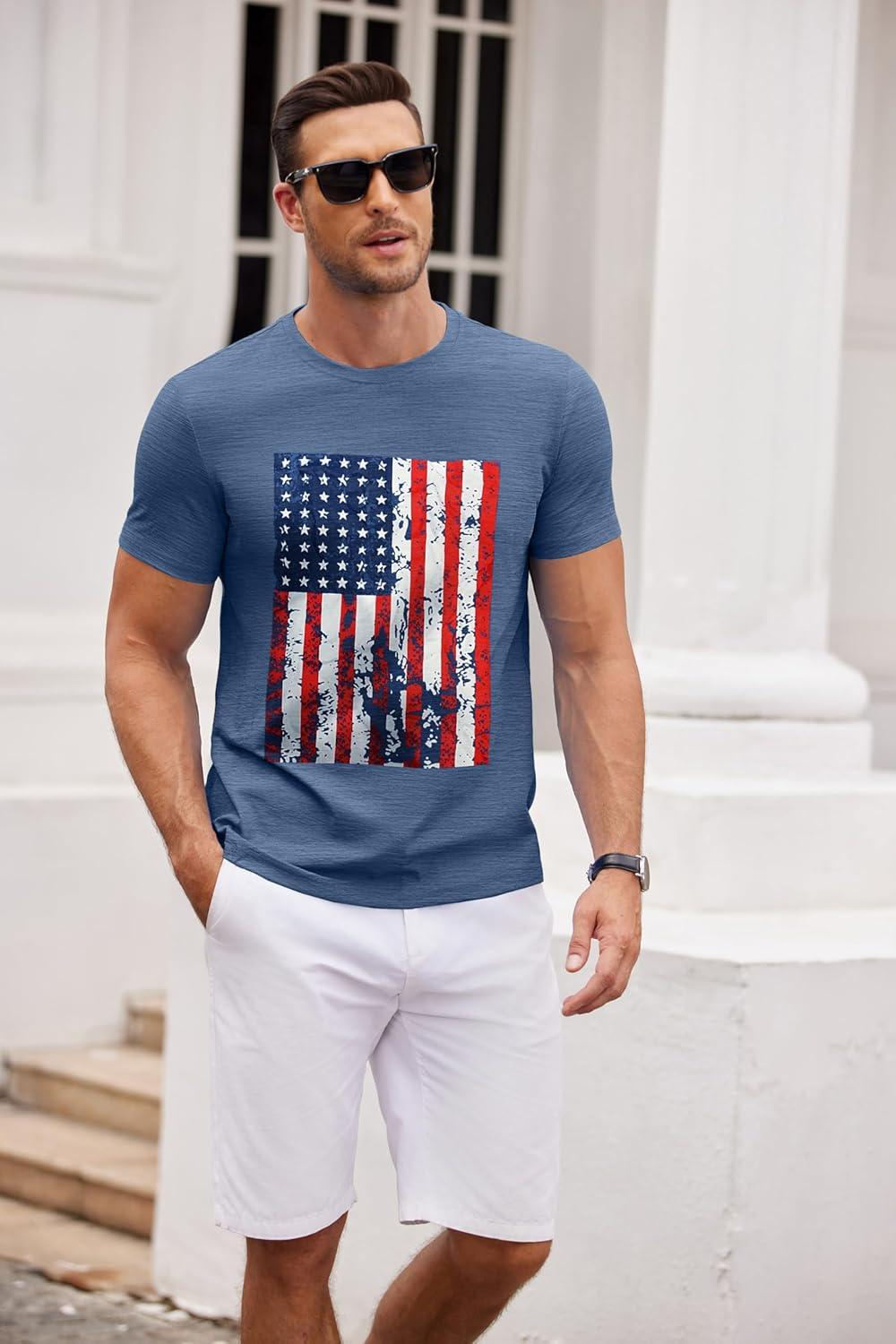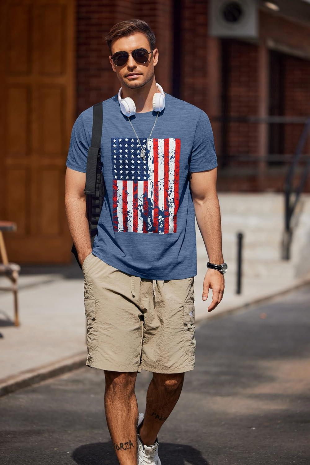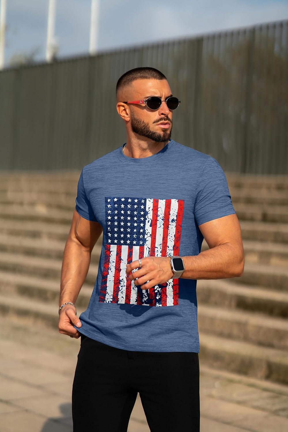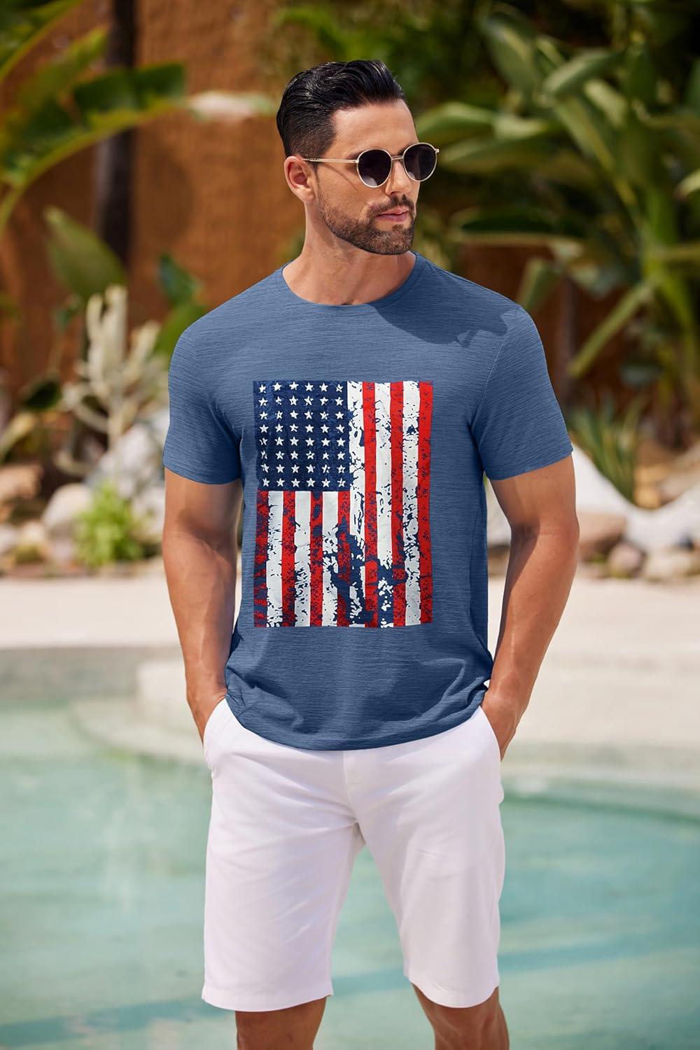 COOFANDY Mens Crew Neck T Shirt Short Sleeve Casual Summer Basic Tee Slim Fit Workout T-Shirt(Blue Red White Flag)