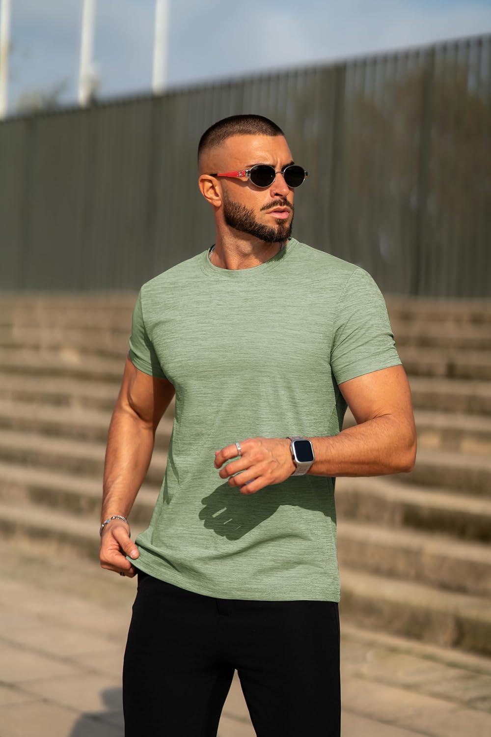 COOFANDY Mens Crew Neck T Shirt Short Sleeve Casual Summer Basic Tee Slim Fit Workout T-Shirt(Light Green)