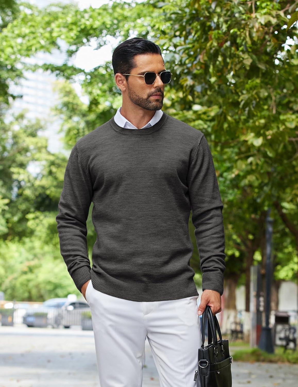 COOFANDY Mens Crewneck Sweater Pullover Knit Sweater Lightweight Sweaters with Ribbing Edge(Dark Gray)