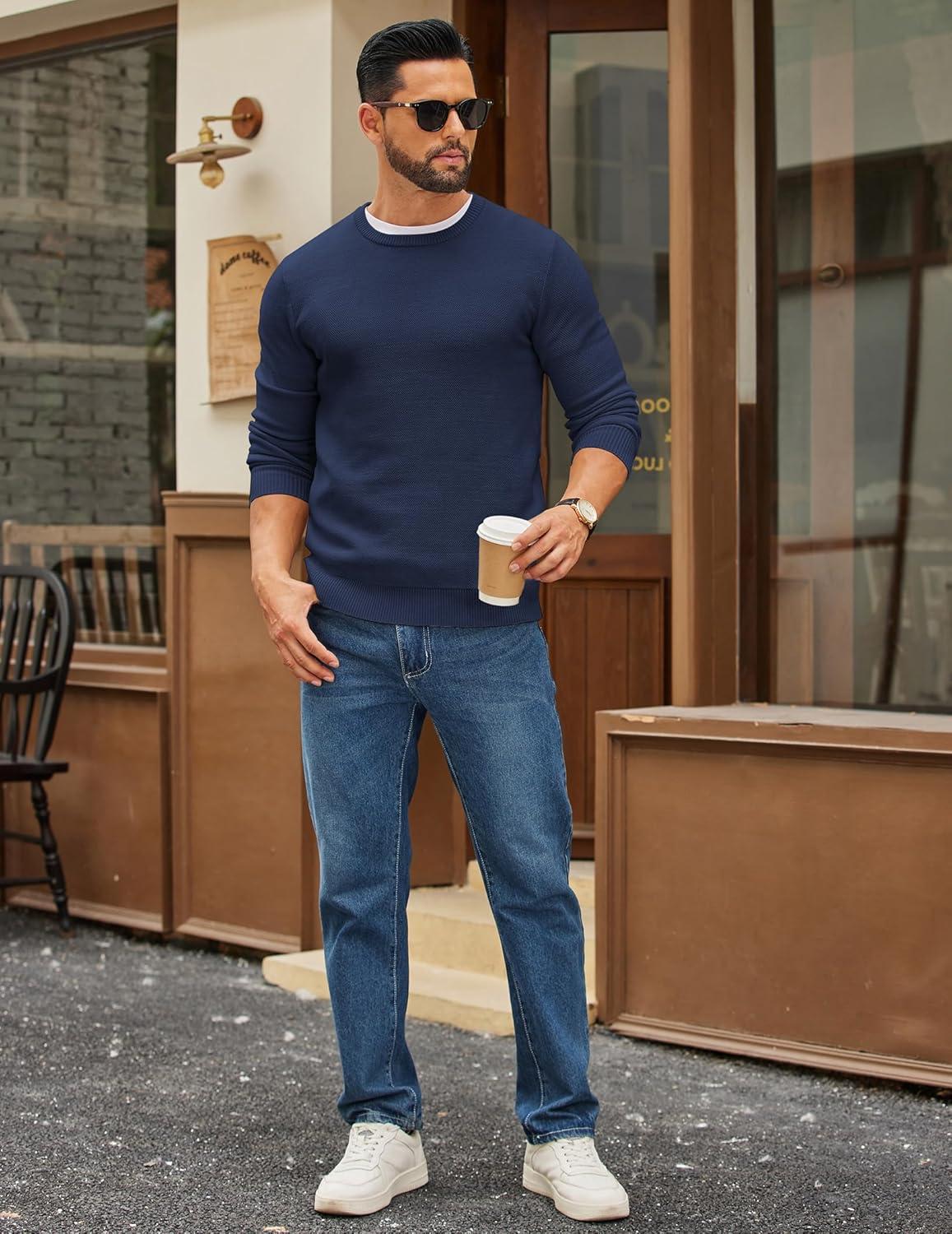 Score big savings on COOFANDY Mens Crewneck Sweater Slim Fit Lightweight Knit Pullover Casual Dress Crew Neck Pullover Sweaters(Navy Blue) during our back-to-school sale. Limited quantities available.