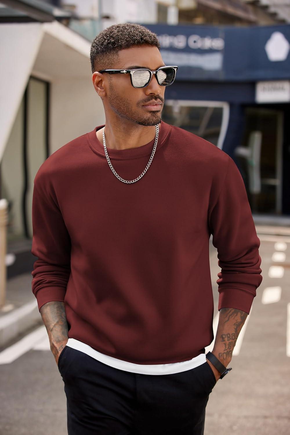 COOFANDY Men’s Crewneck Sweatshirts Long Sleeves Fleece Sweatshirts Thermal Casual Pullover Shirt(Red)