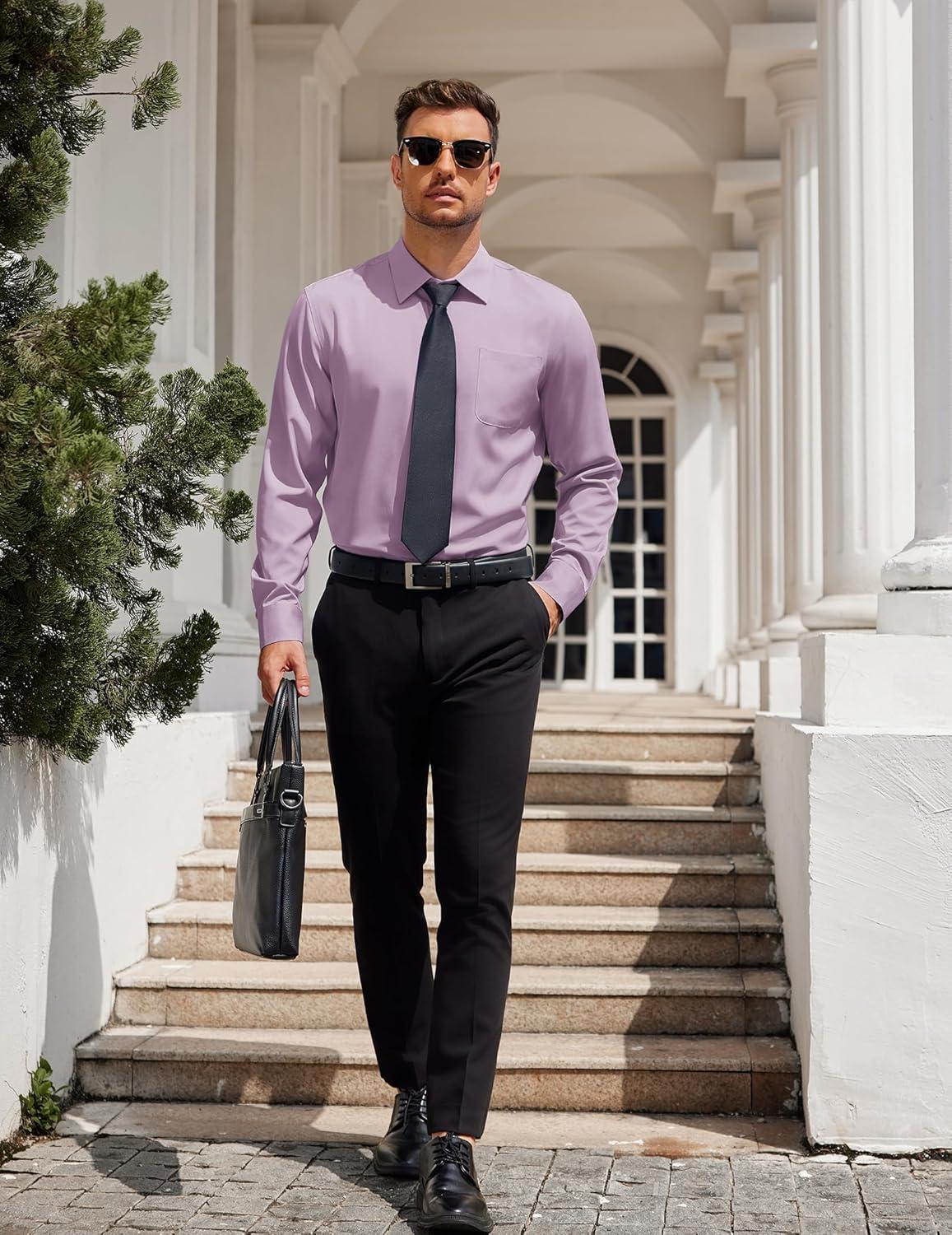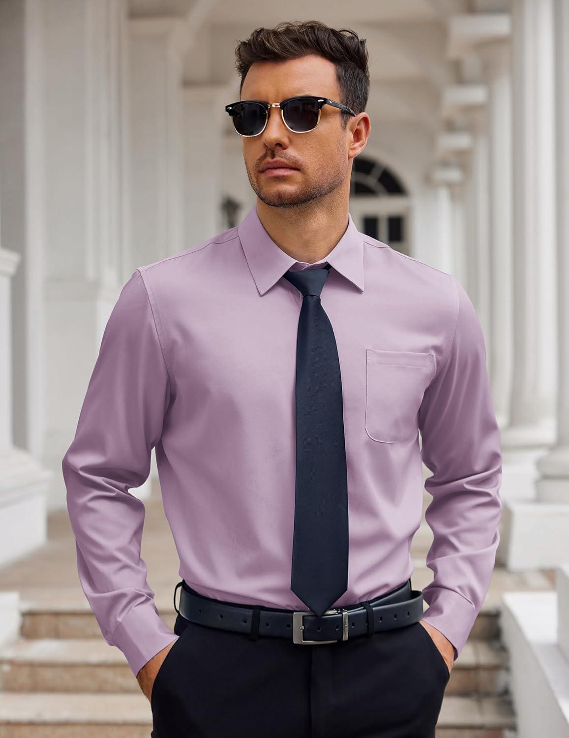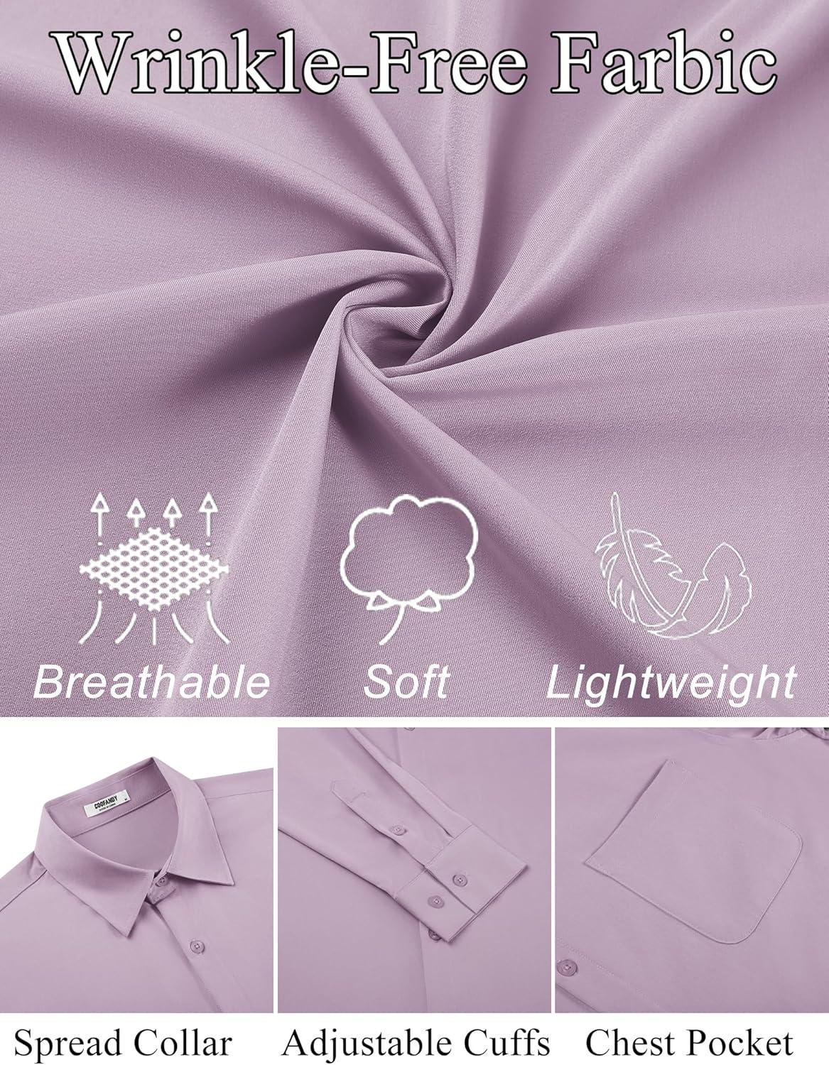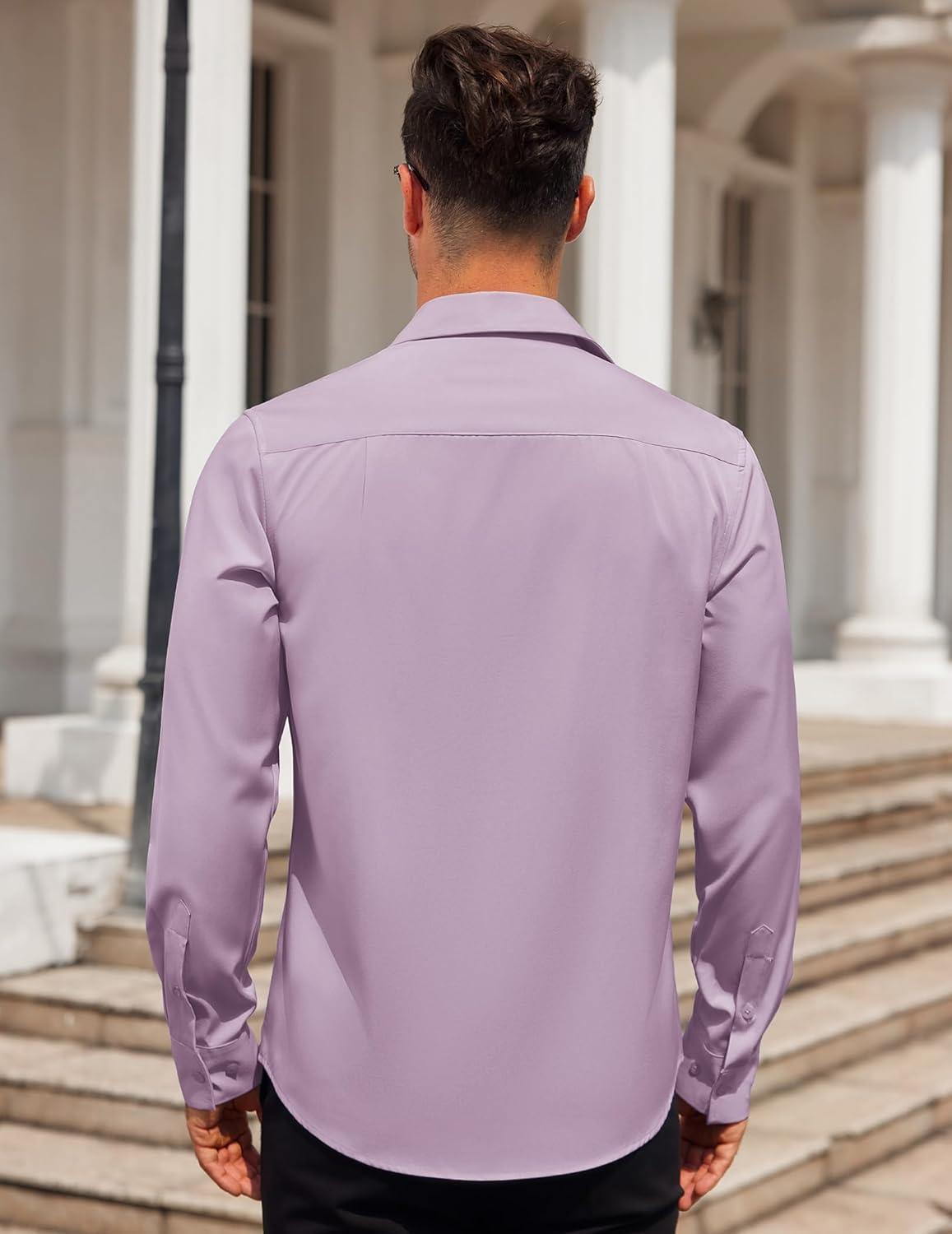 COOFANDY Mens Dress Shirt Long Sleeve Button Down Shirts Business Casual Wrinkle Free Shirts with Pocket(Light Purple)