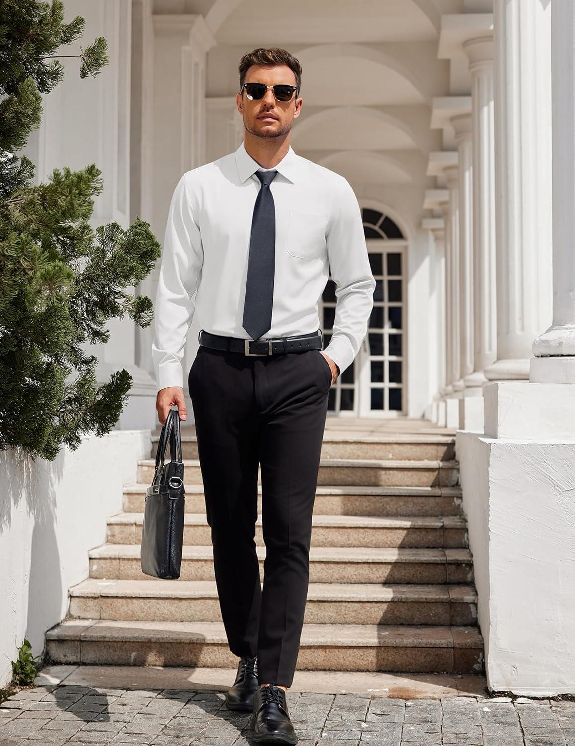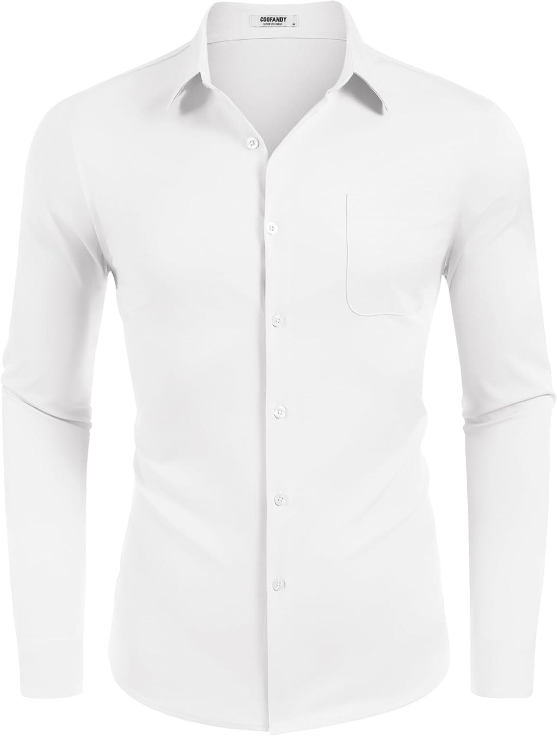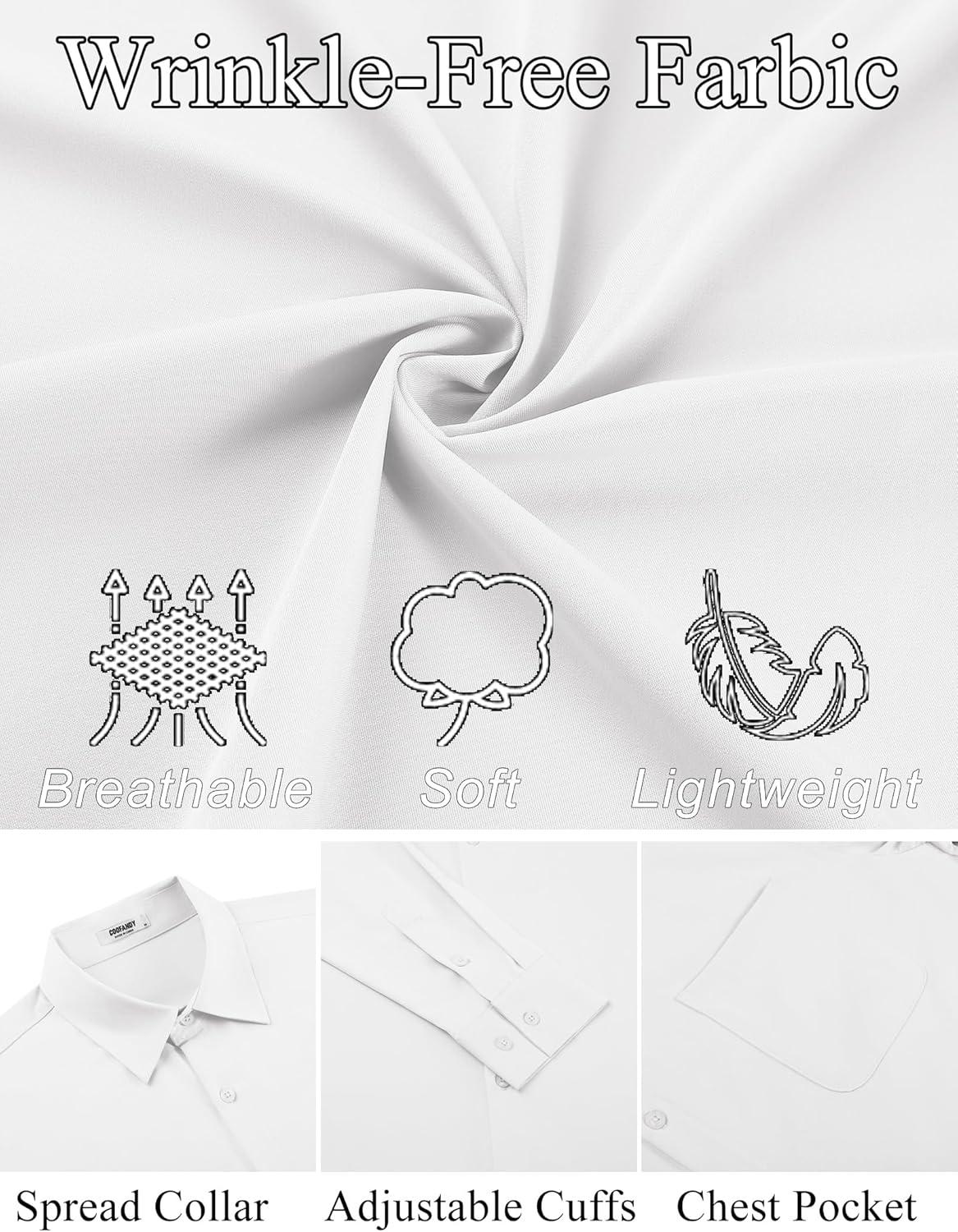 COOFANDY Mens Dress Shirt Long Sleeve Button Down Shirts Business Casual Wrinkle Free Shirts with Pocket(White)