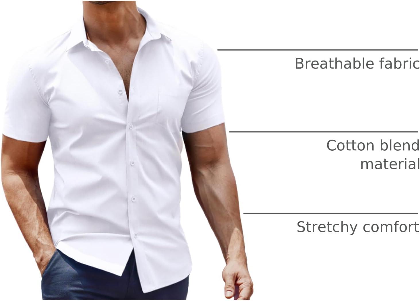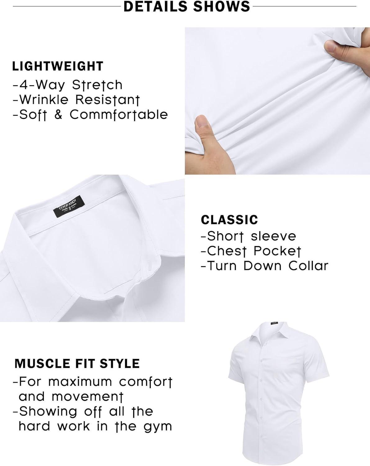 Upgrade your style with this mens athletic fit short sleeve dress shirt provided by COOFANDY.