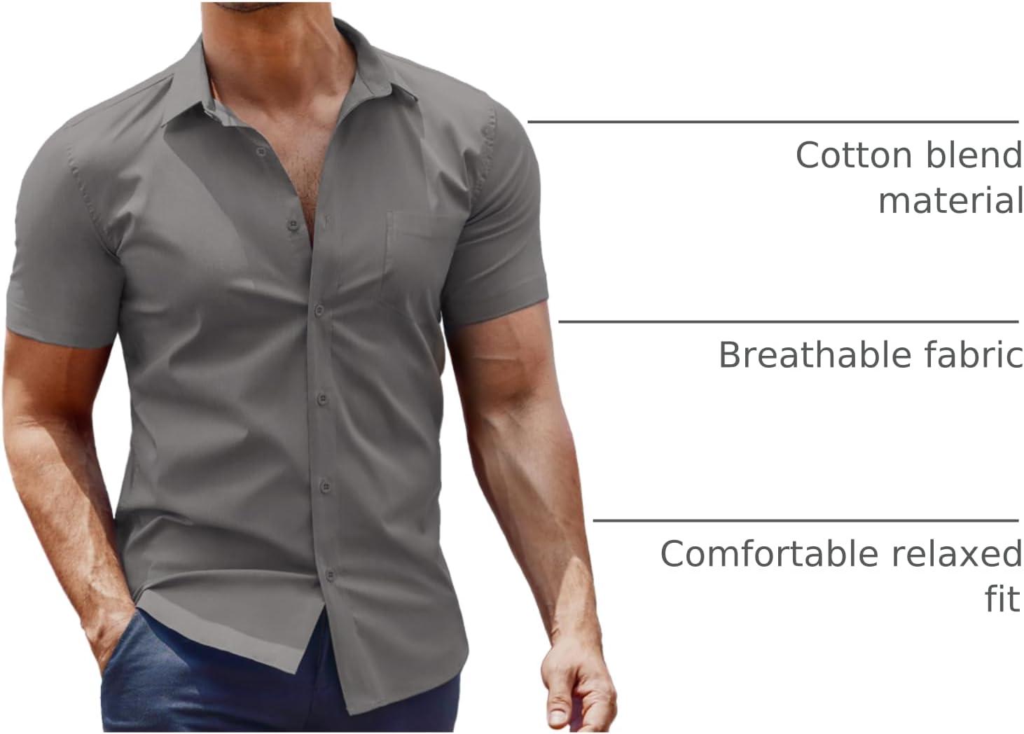COOFANDY Men’s Dress Shirt Short Sleeve Button Down Shirts with Pocket(Dark Grey)