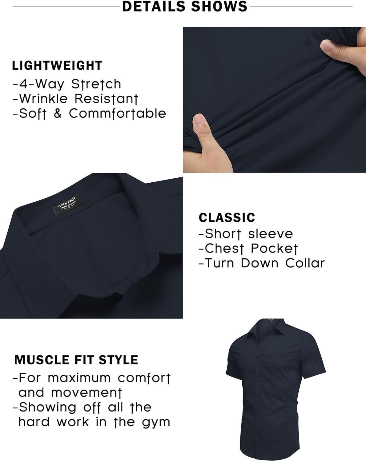 Upgrade your style with this mens athletic fit short sleeve dress shirt provided by COOFANDY.