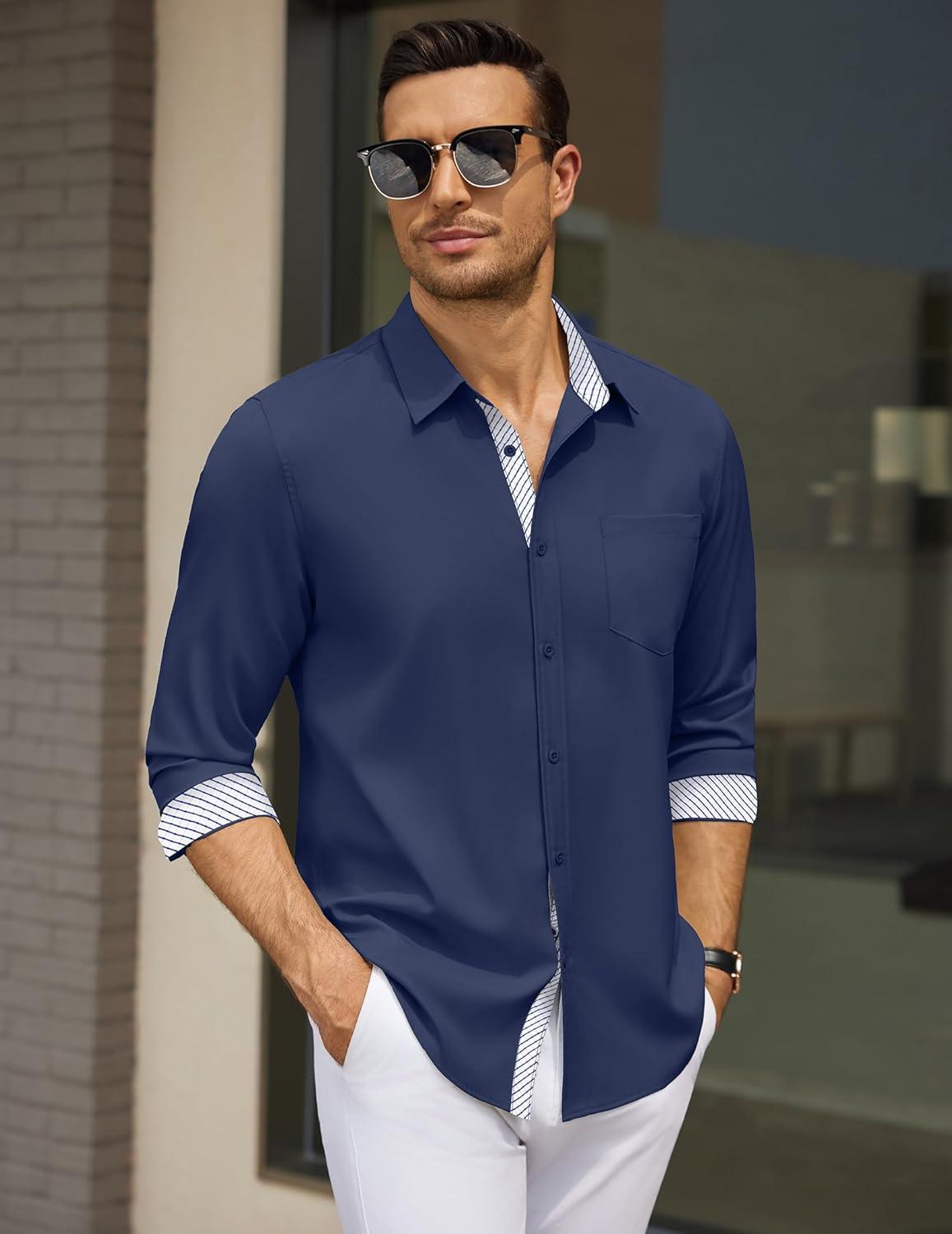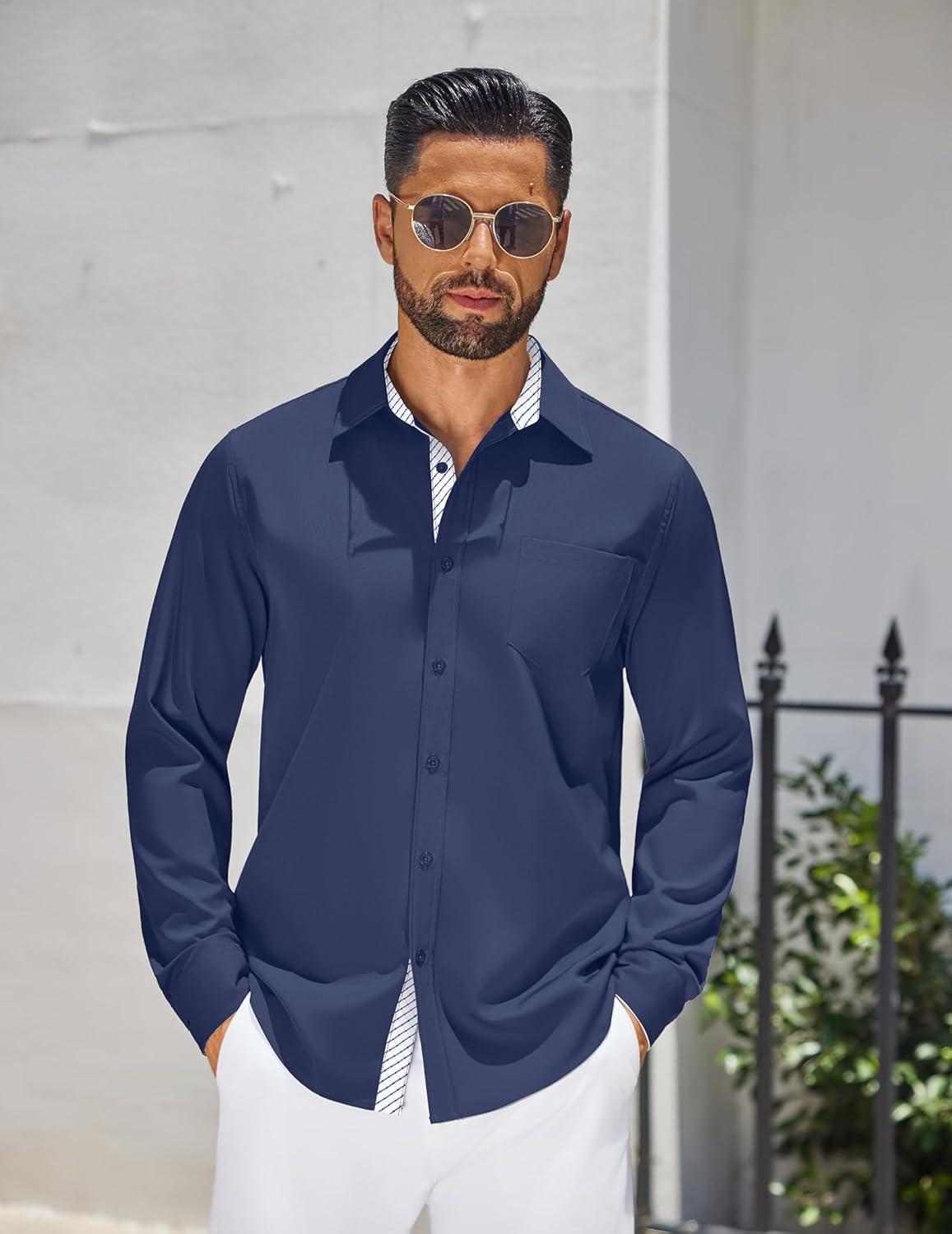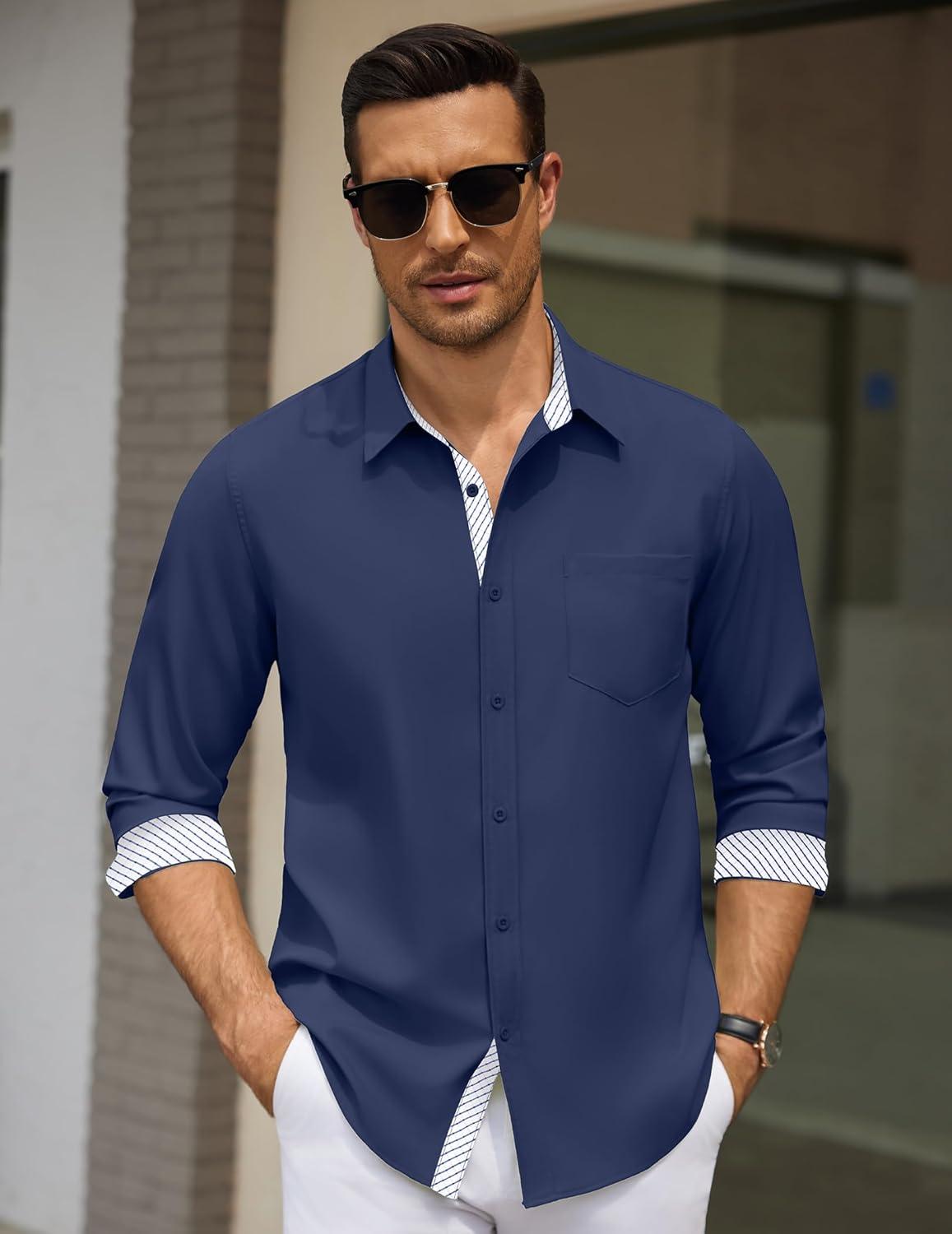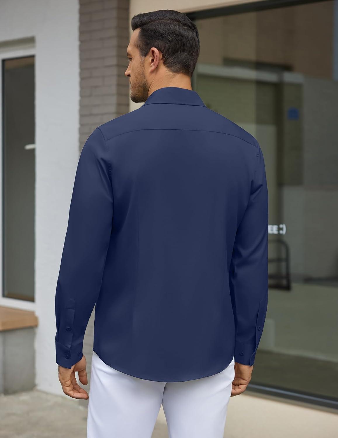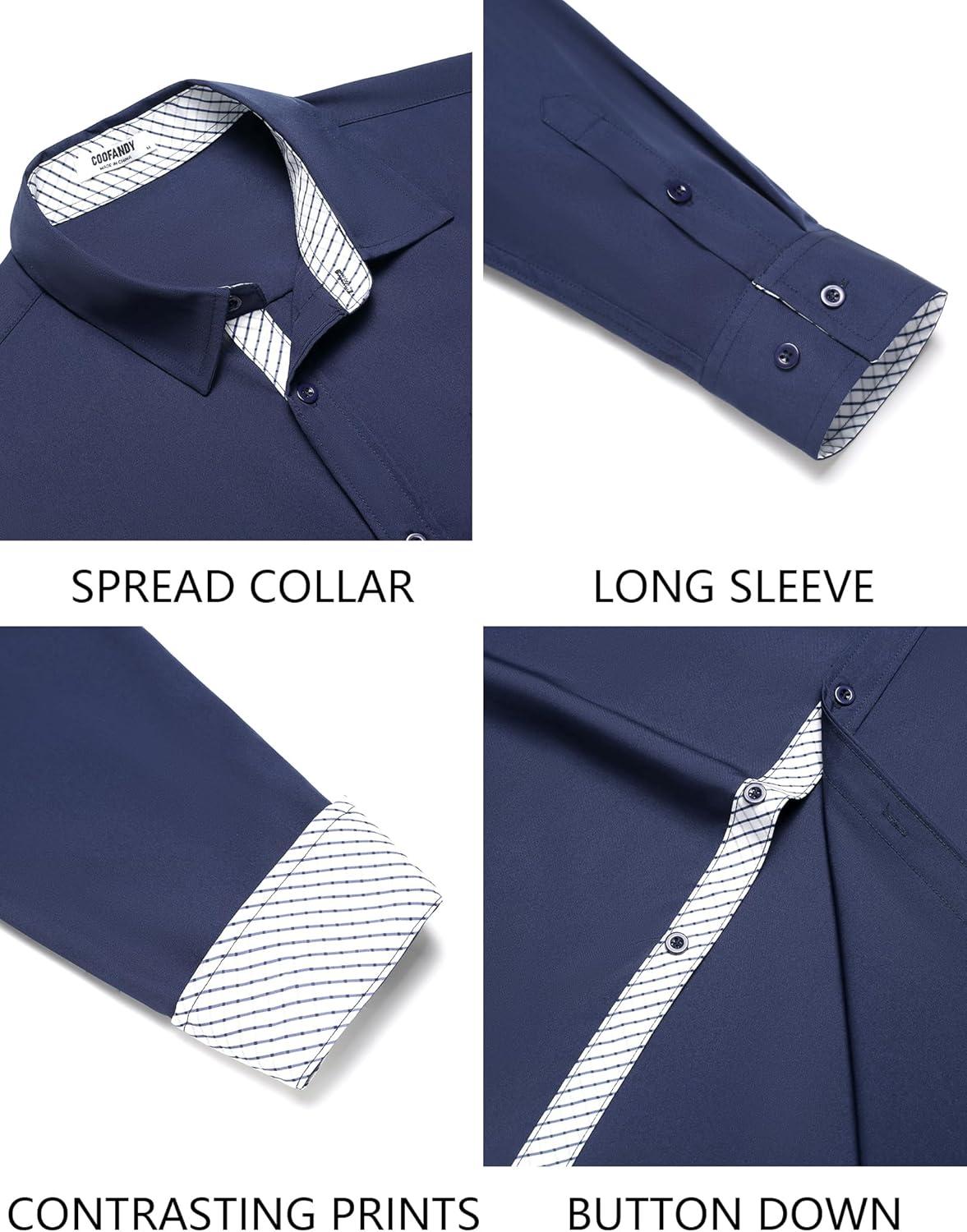 COOFANDY Men’s Dress Shirt Wrinkle Free Regular Fit Stretch Long Sleeve Button Down Shirts(Navy Blue)