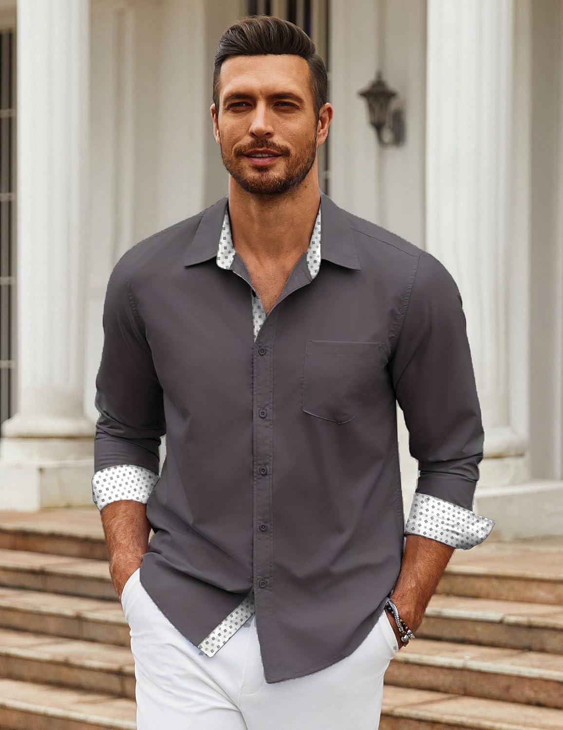 COOFANDY Mens Dress Shirts Long Sleeve Button Down Shirts Untucked Wrinkle-Free Business Casual Shirts(Dark Grey)