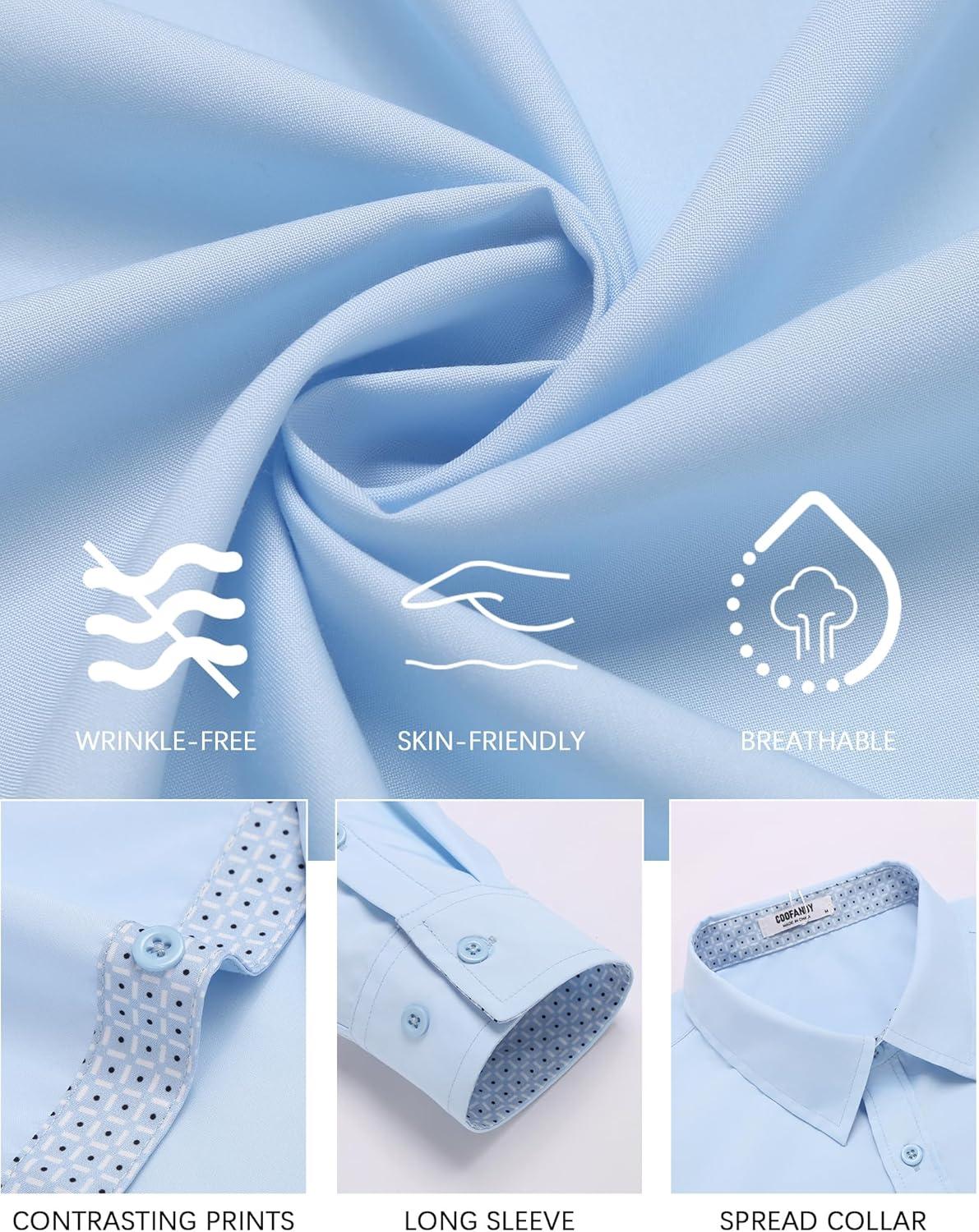 COOFANDY Mens Dress Shirts Long Sleeve Button Down Shirts Untucked Wrinkle-Free Business Casual Shirts(Light Blue)