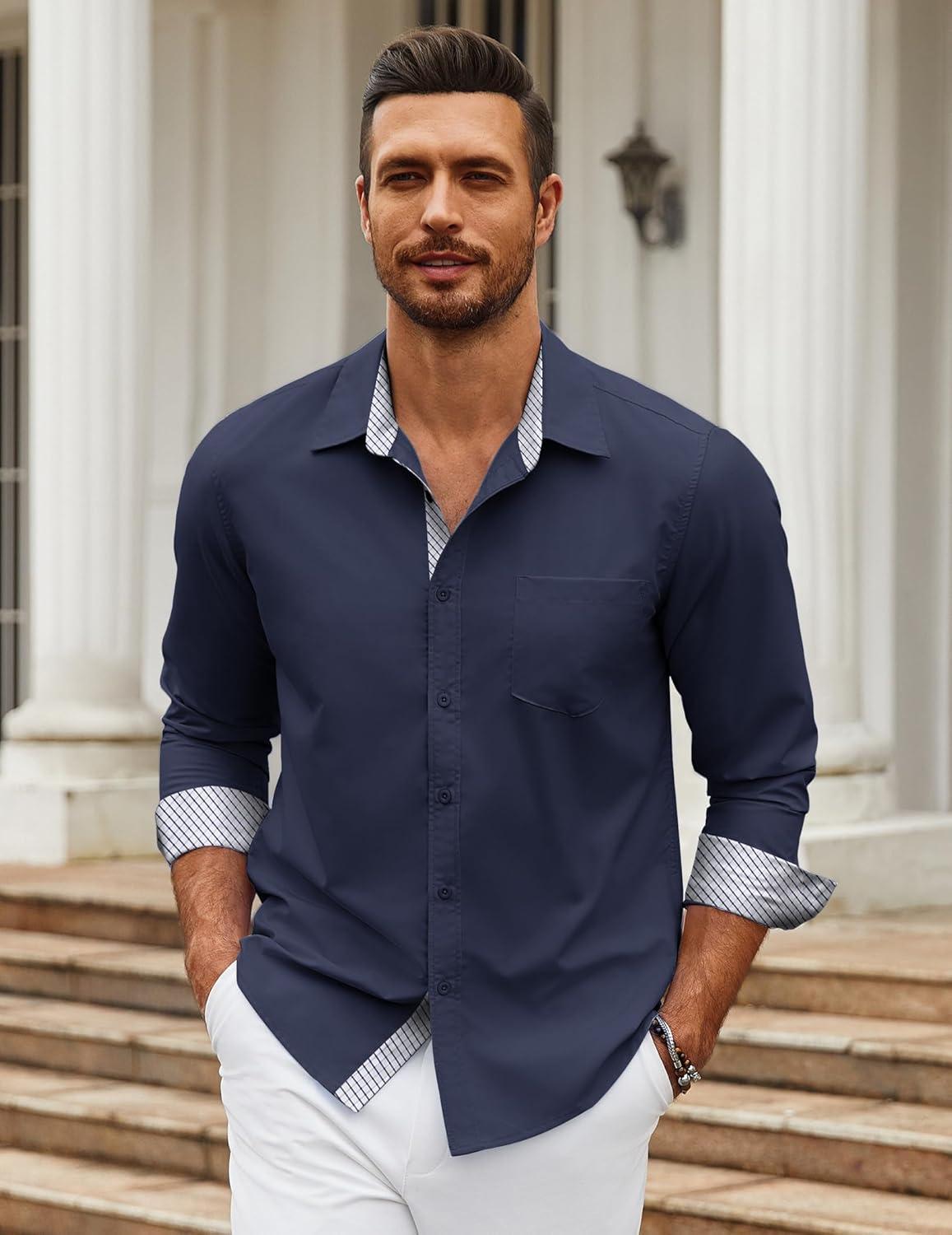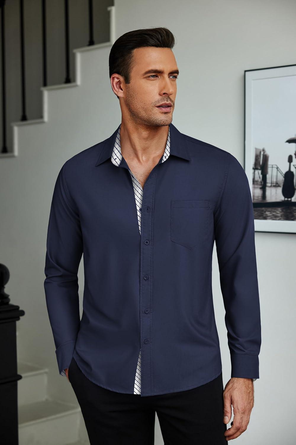 COOFANDY Mens Dress Shirts Long Sleeve Button Down Shirts Untucked Wrinkle-Free Business Casual Shirts(Navy Blue)