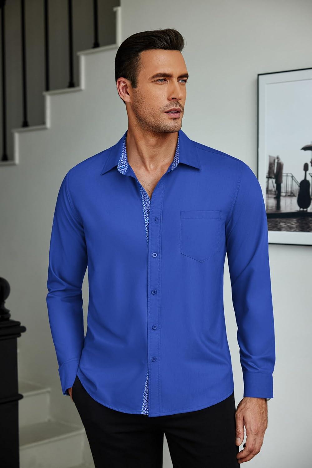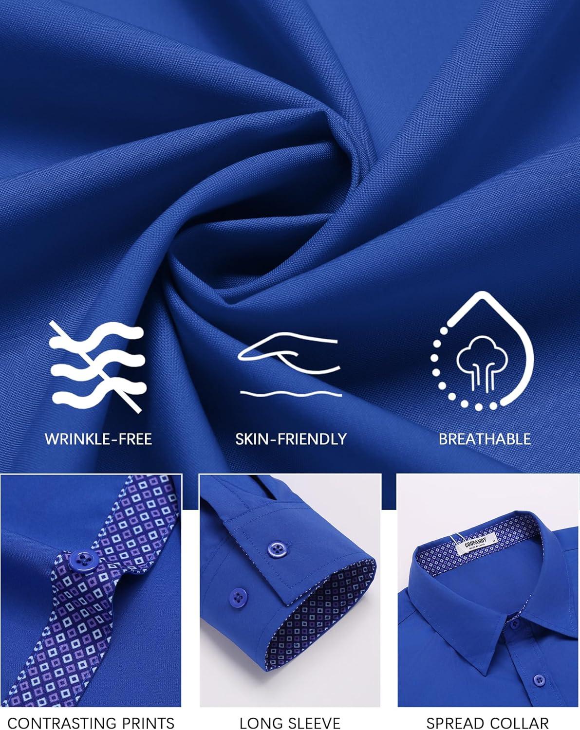 COOFANDY Mens Dress Shirts Long Sleeve Button Down Shirts Untucked Wrinkle-Free Business Casual Shirts(Ocean)