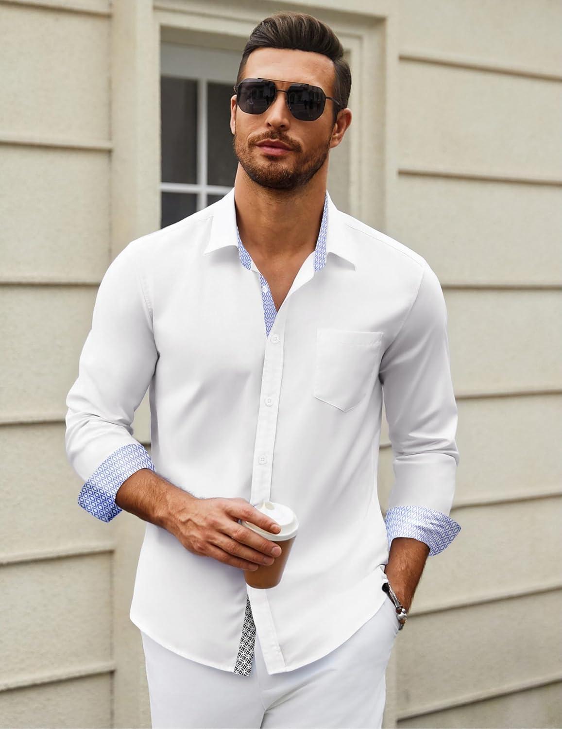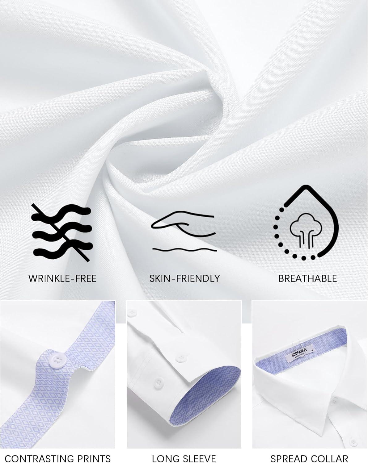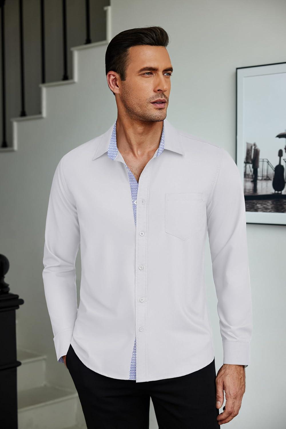 COOFANDY Mens Dress Shirts Long Sleeve Button Down Shirts Untucked Wrinkle-Free Business Casual Shirts(White-black)