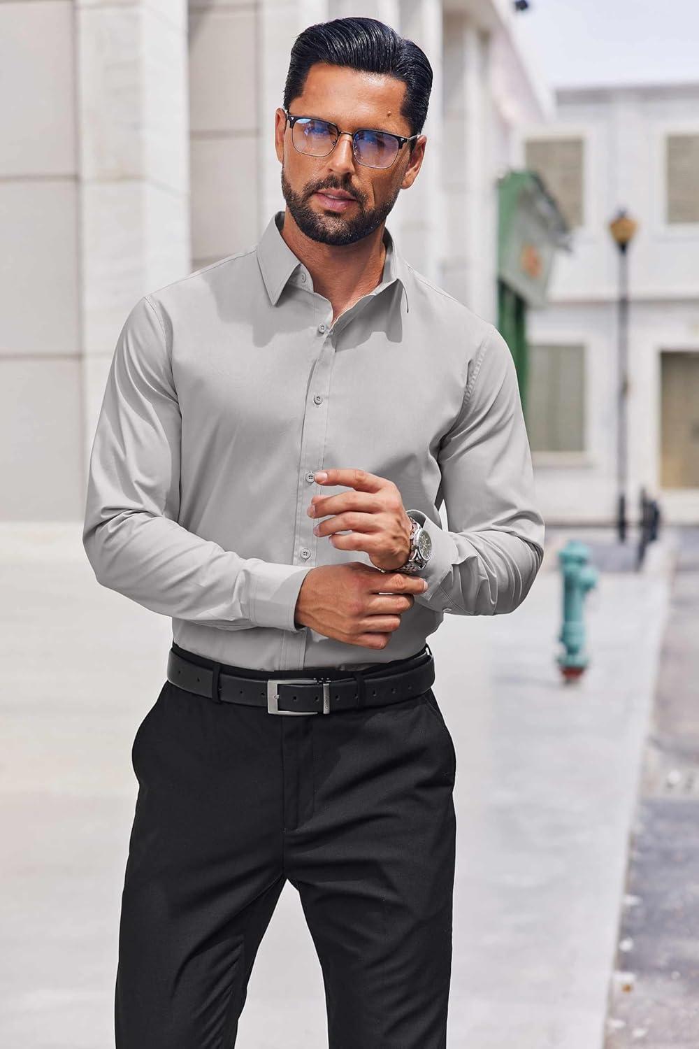 Get more for your money with our exclusive bundle deals on COOFANDY Mens Dress Shirts Long Sleeve Stain Shield Button Down Shirt Regular Fit Formal Business Wedding Shirts(Light Grey) and accessories.
