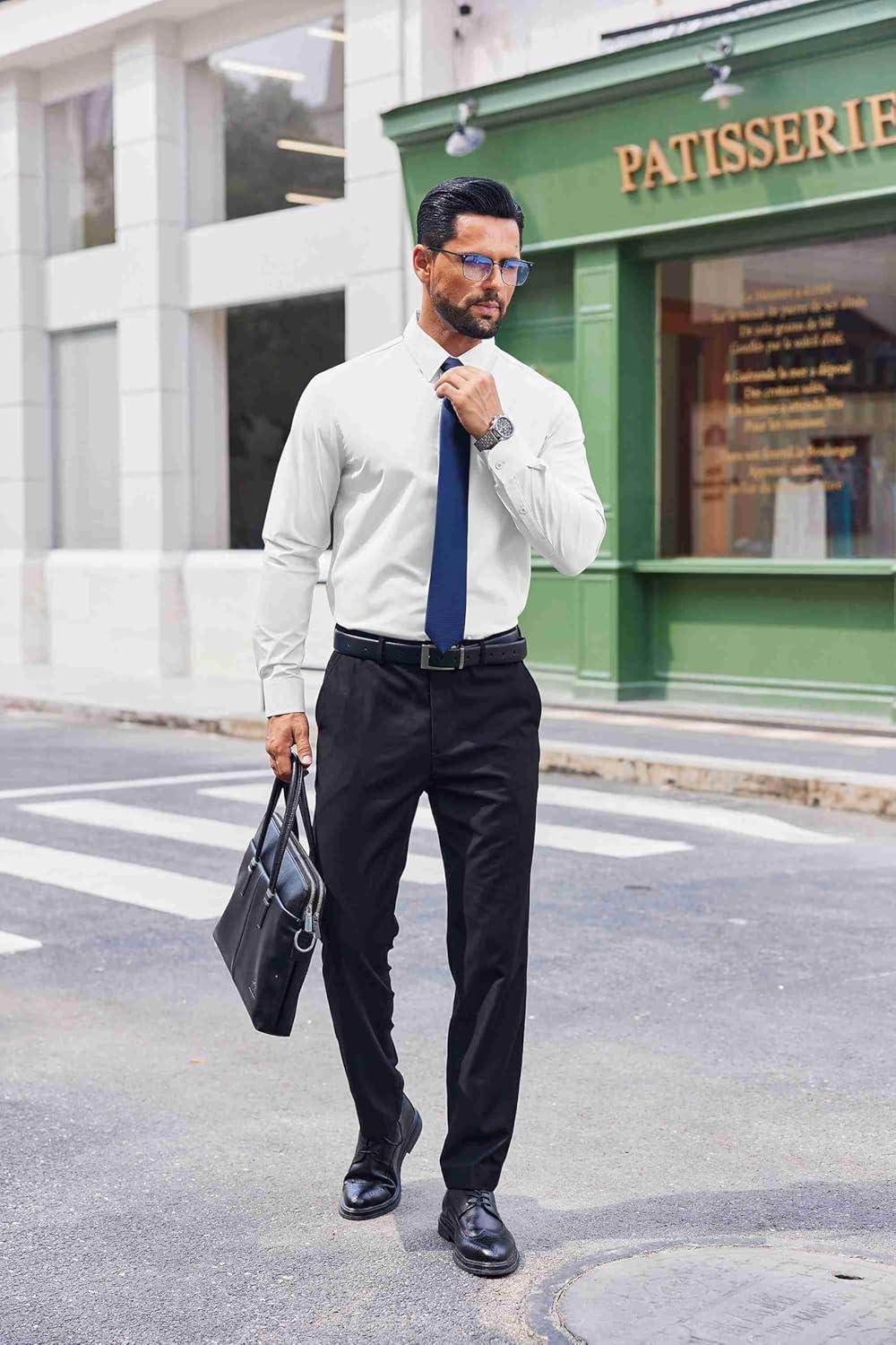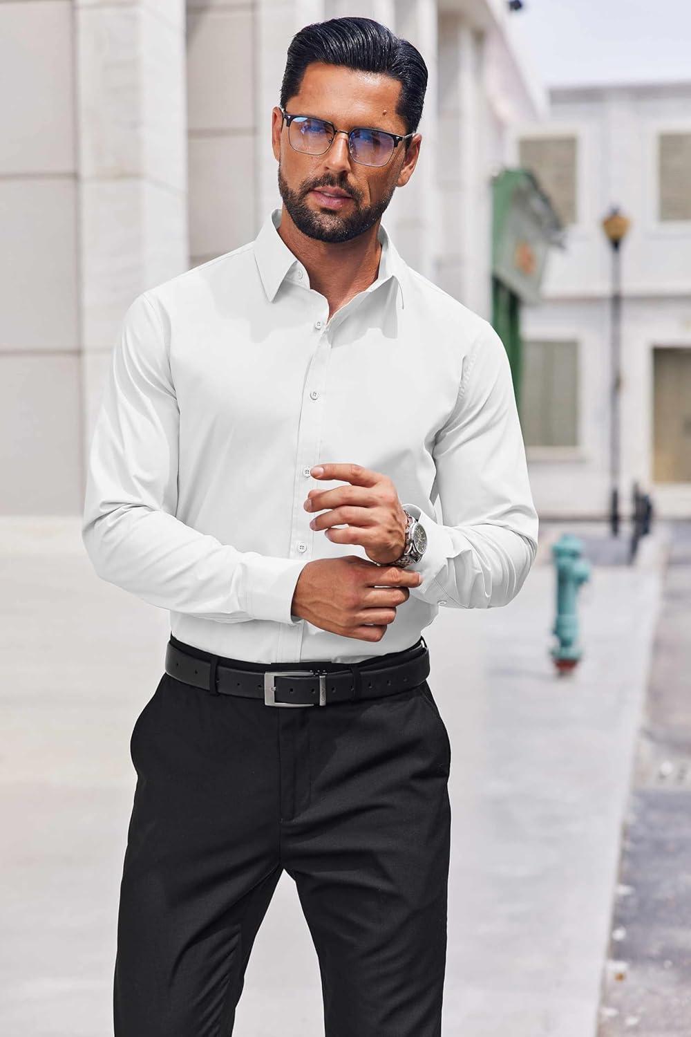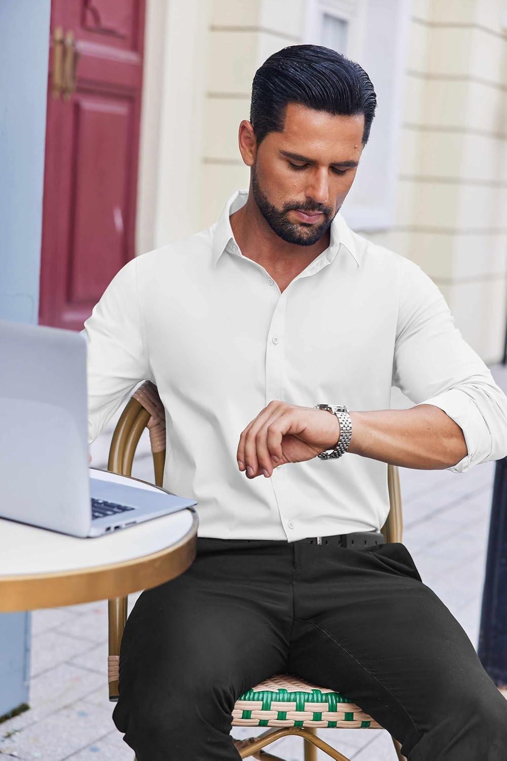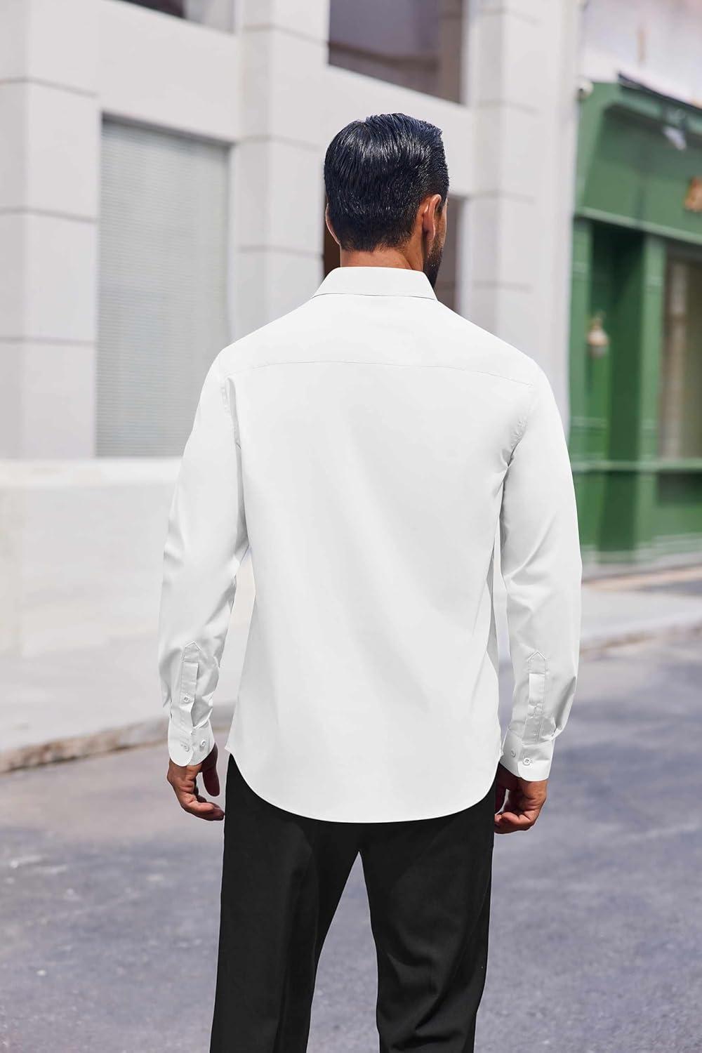 COOFANDY Mens Dress Shirts Long Sleeve Stain Shield Button Down Shirt Regular Fit Formal Business Wedding Shirts(White)