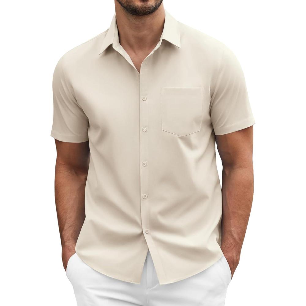 COOFANDY Men’s Dress Shirts Short Sleeve Business Casual Regular Fit Button Down Shirts with Pocket(Khaki)
