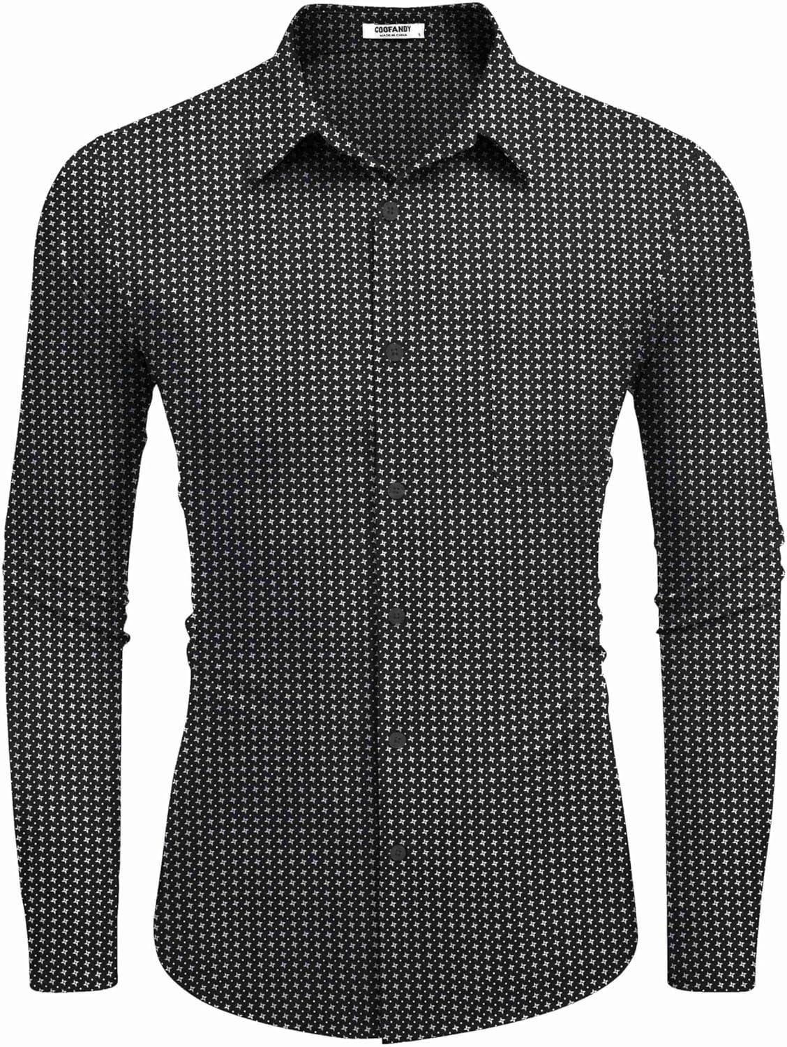 COOFANDY Mens Dress Shirts Wrinkle Free Long Sleeve Button Down Shirts Formal Business Shirt(Black Grey Patterned)