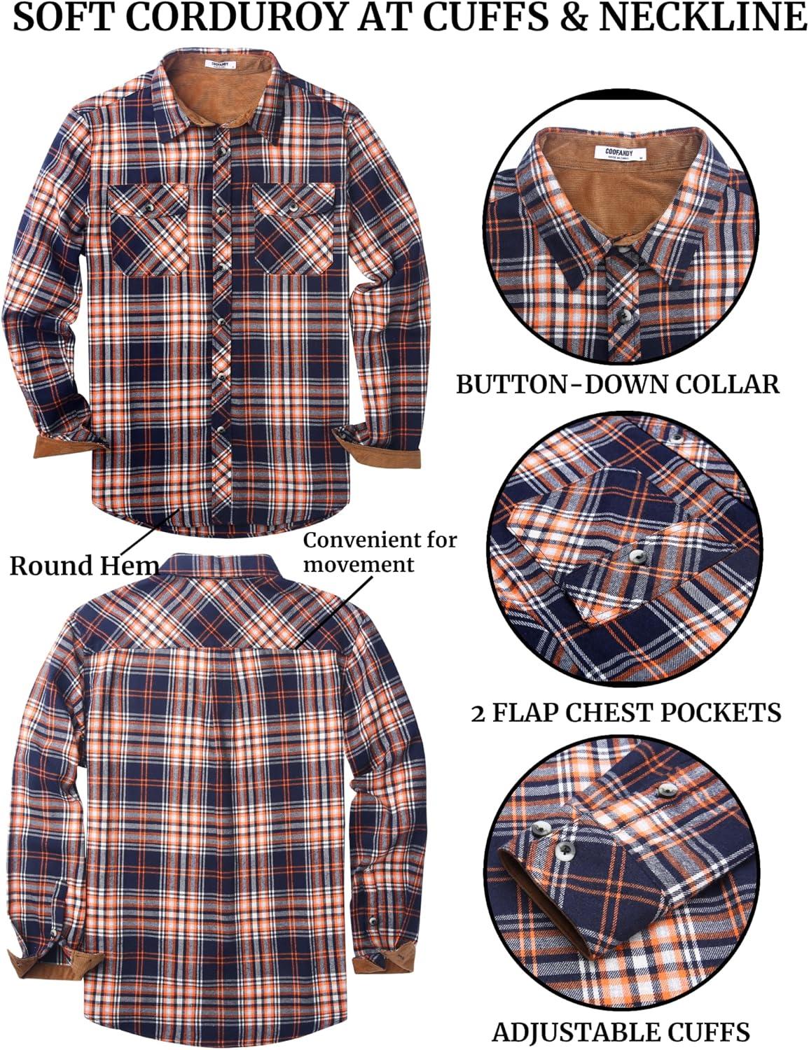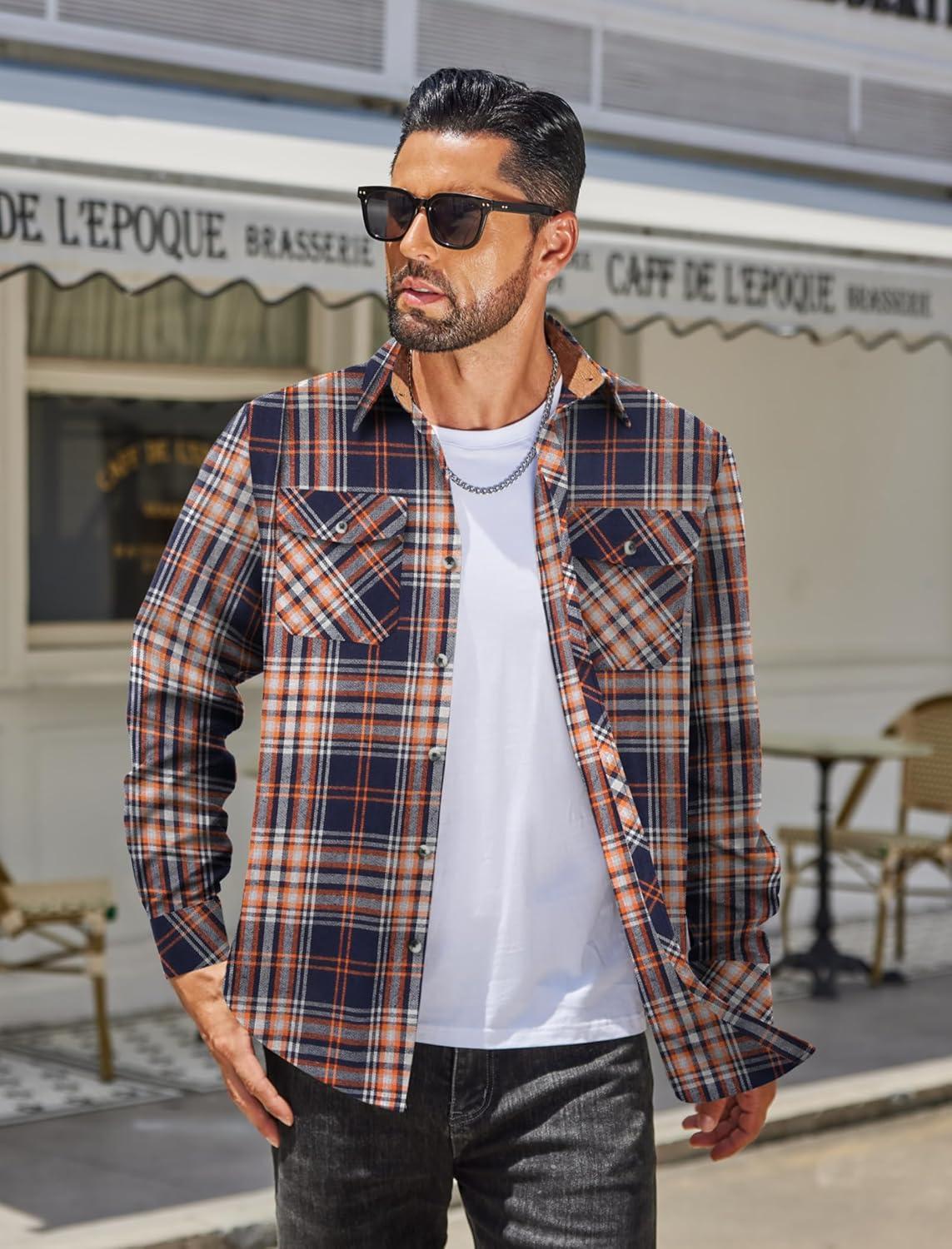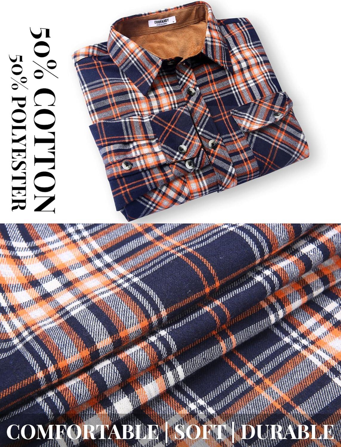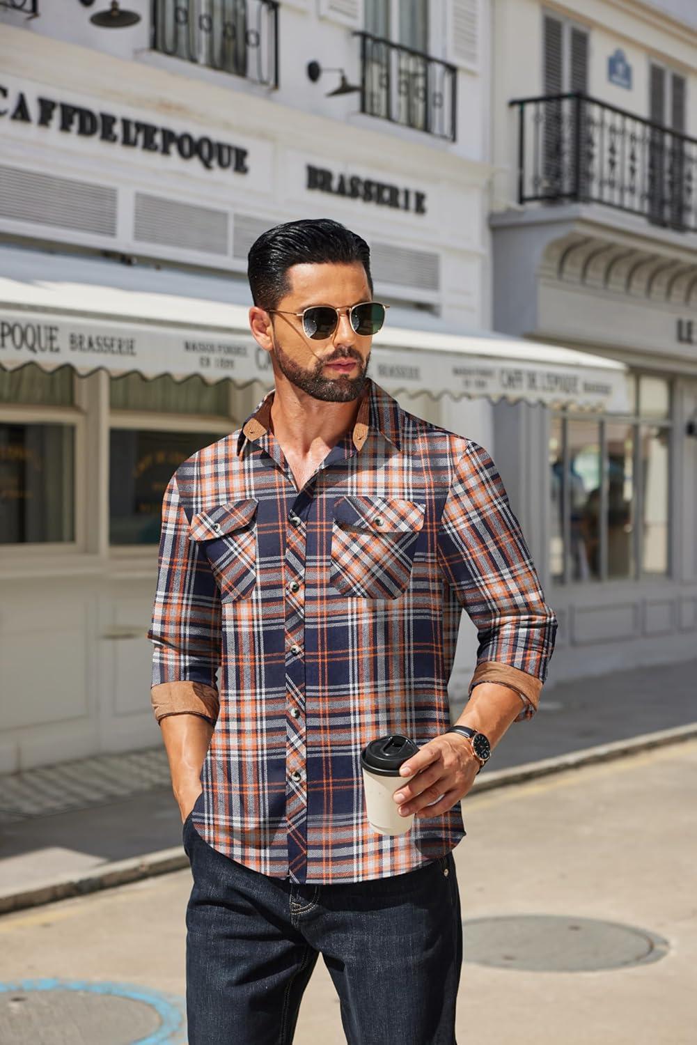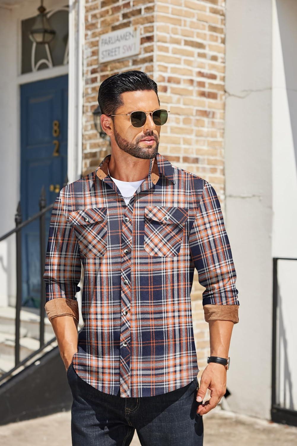 COOFANDY Men’s Fall Plaid Button Down Shirt Long Sleeve Casual Cowboy Work Shirts Lightweight Flannel Shirts Two Pocket(Plaid-vibrant Orange)