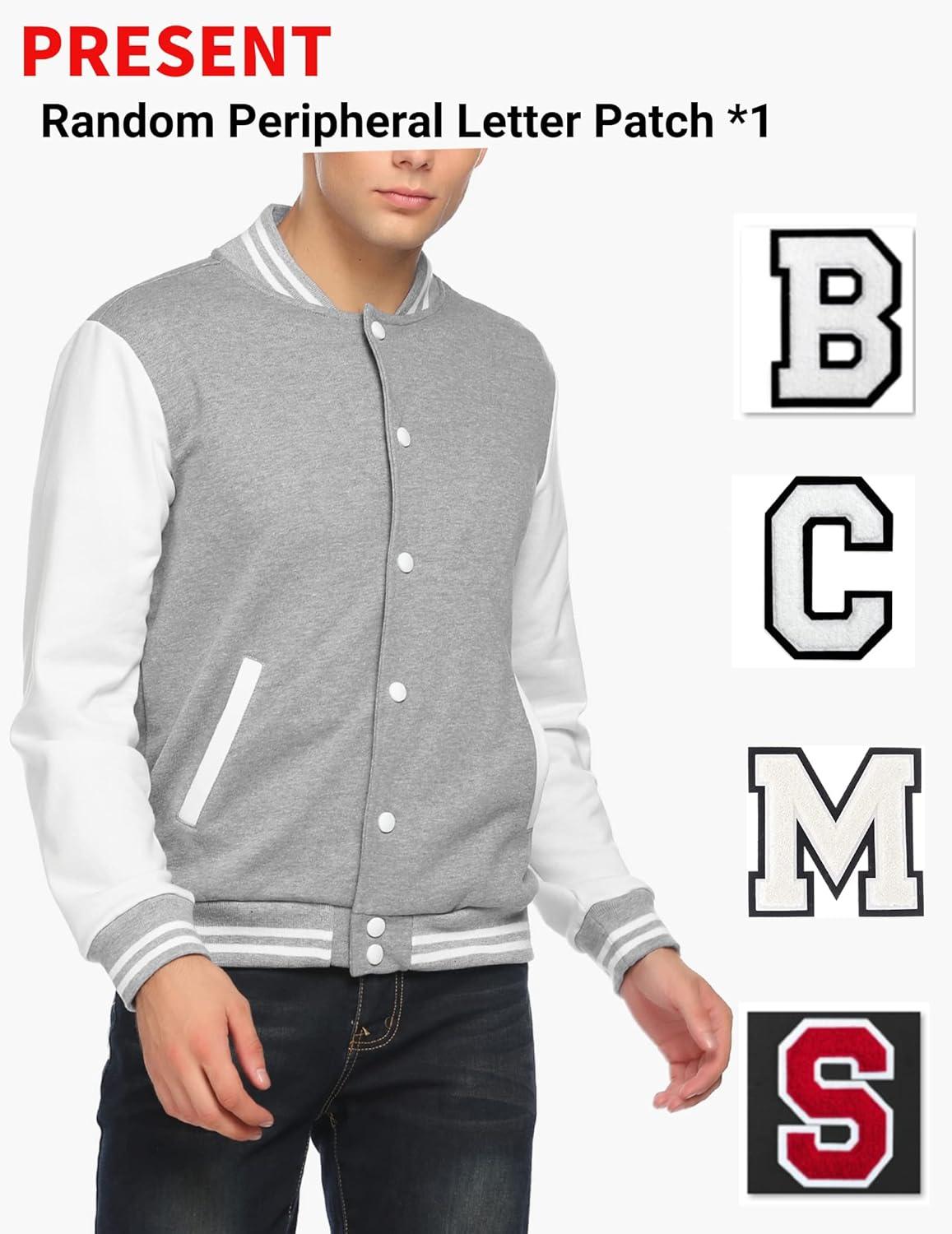 COOFANDY Men’s Fashion Varsity Jacket Causal Slim Fit Cotton Letterman Baseball Bomber Jackets(Gray)