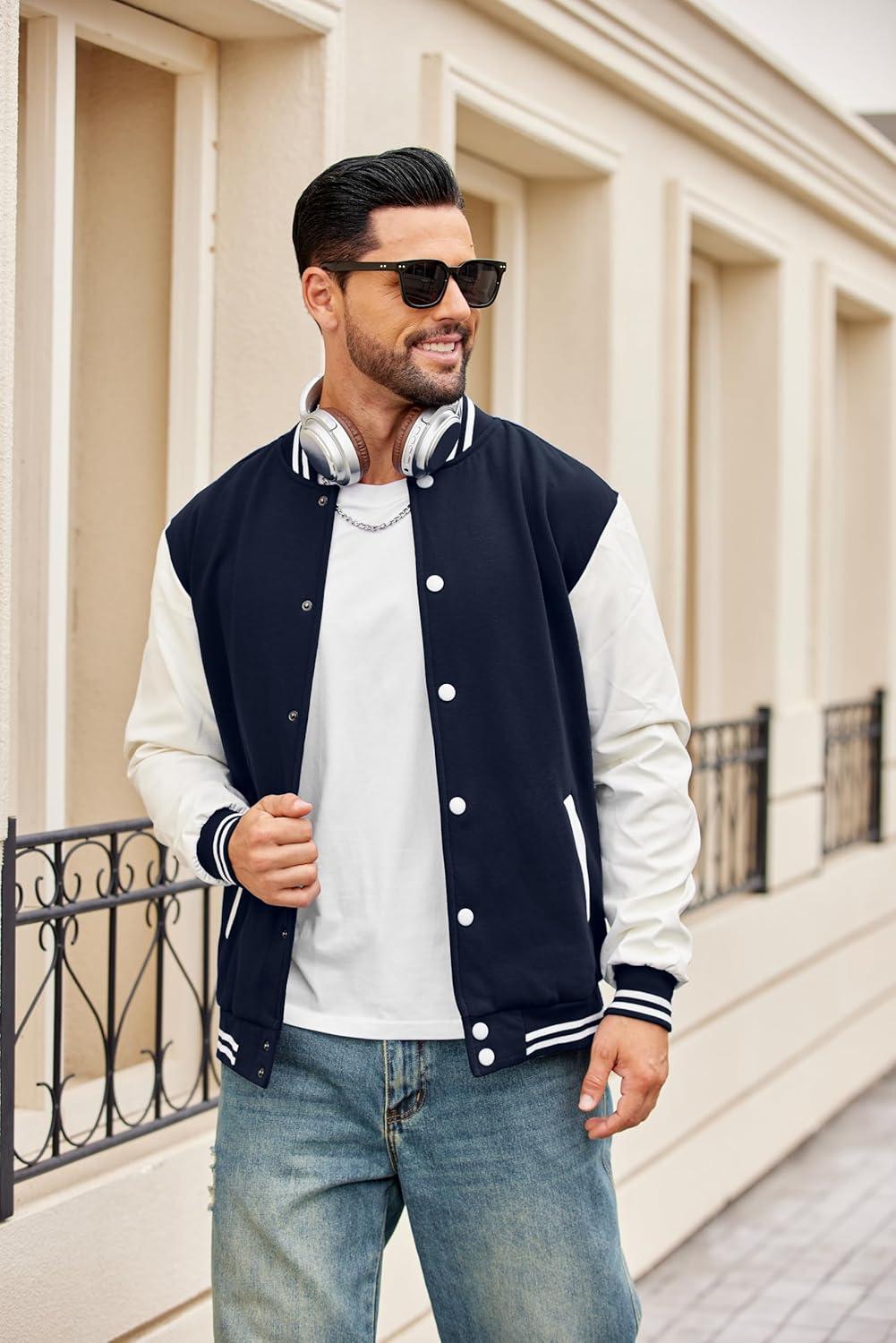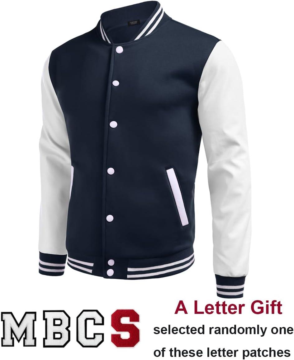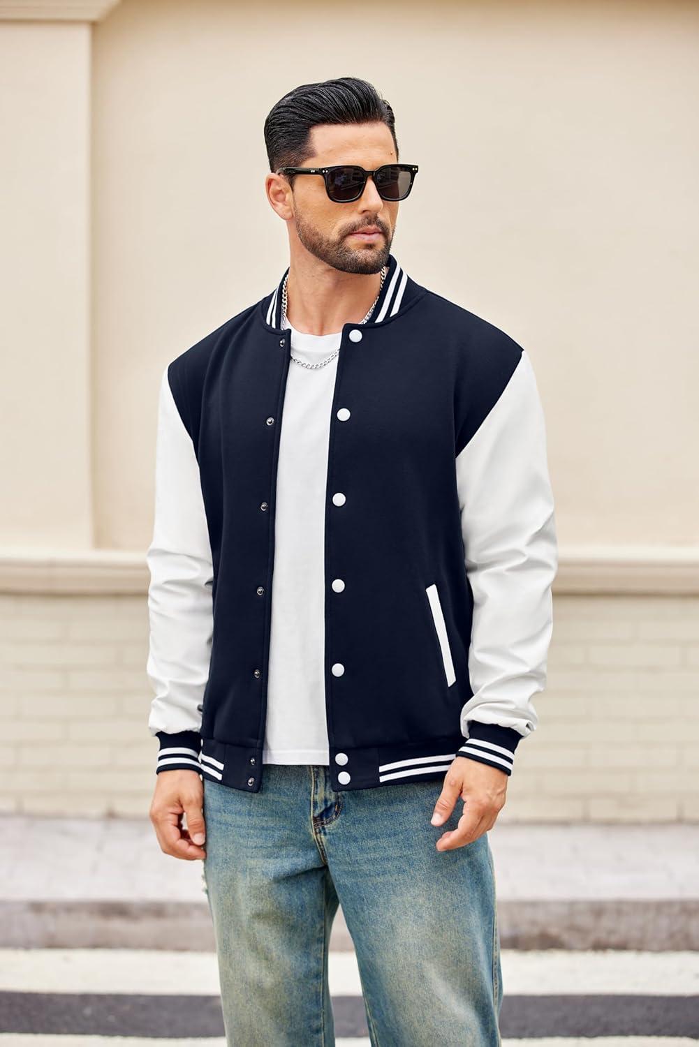 COOFANDY Men’s Fashion Varsity Jacket Causal Slim Fit Cotton Letterman Baseball Bomber Jackets(Navy-grey)