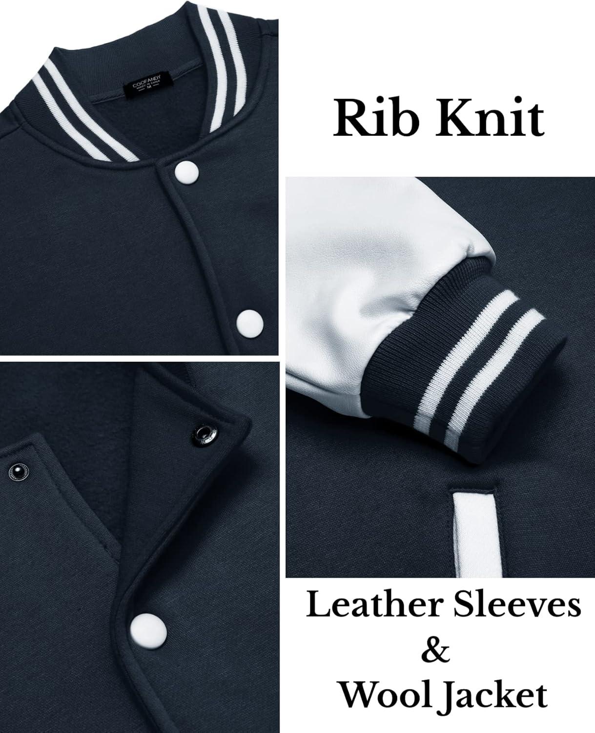 COOFANDY Men’s Fashion Varsity Jacket Causal Slim Fit Cotton Letterman Baseball Bomber Jackets(Navy-white Sleeve)