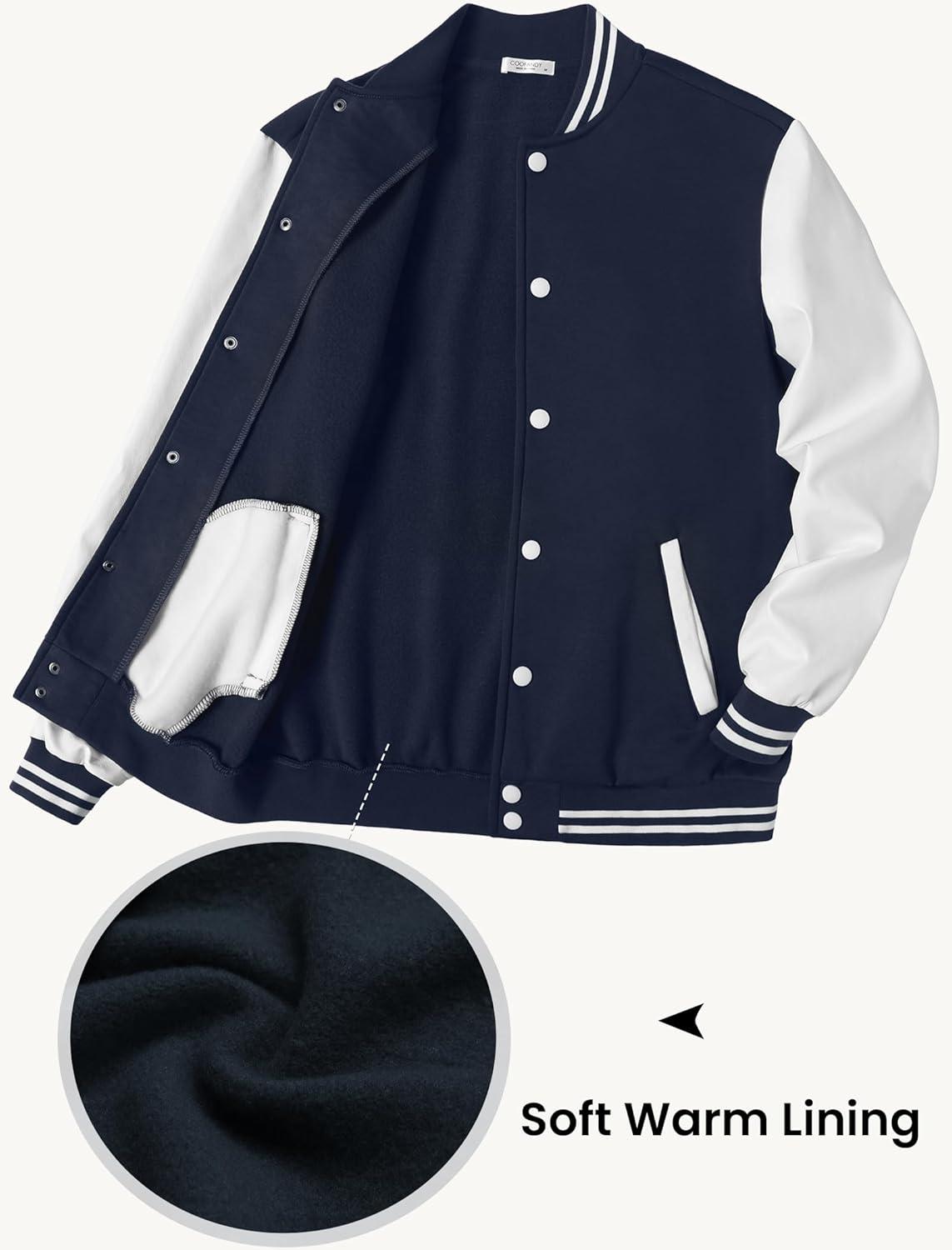 Be the first to review “COOFANDY Men’s Fashion Varsity Jacket Causal Slim Fit Cotton Letterman Baseball Bomber Jackets(Navy-white Sleeve)”