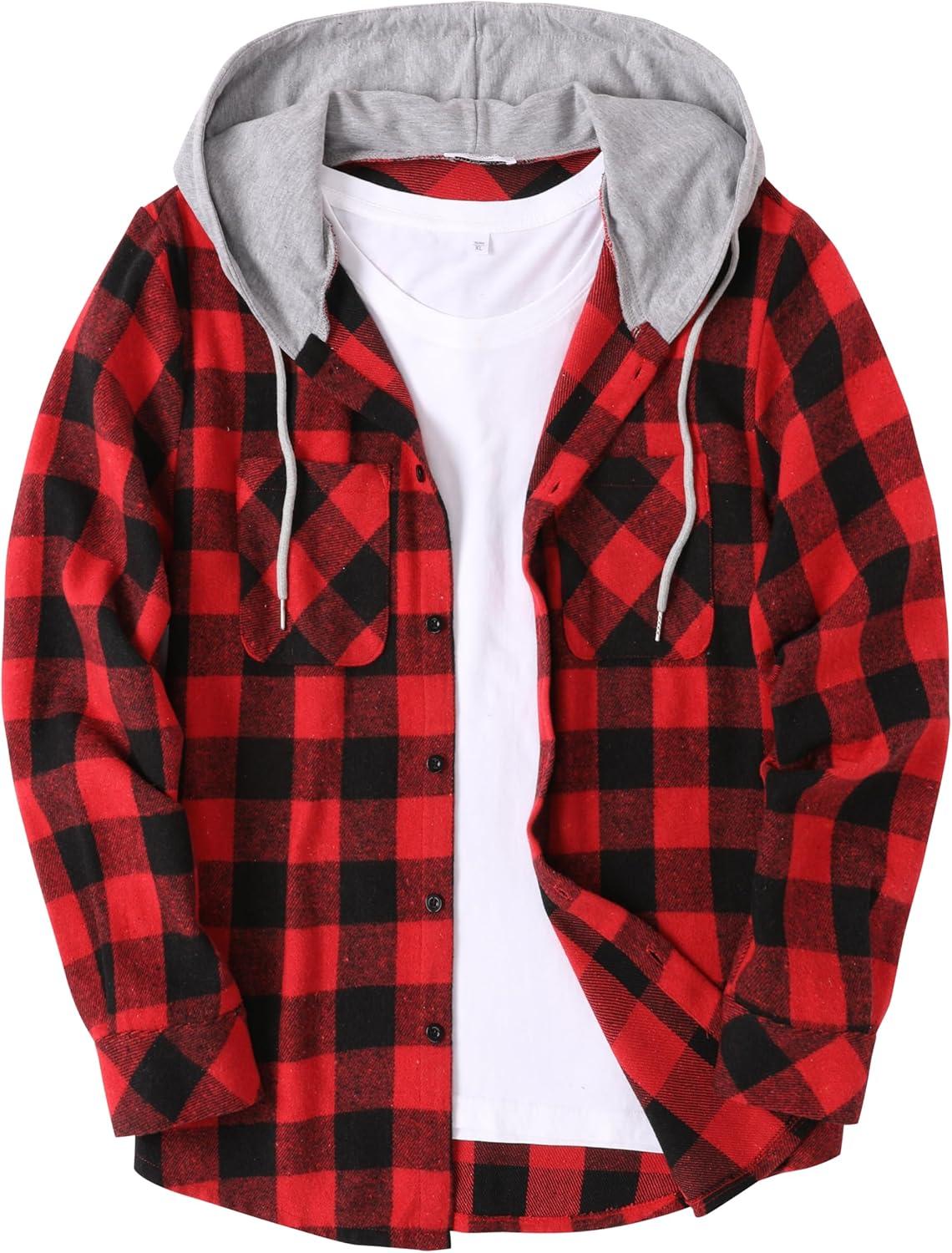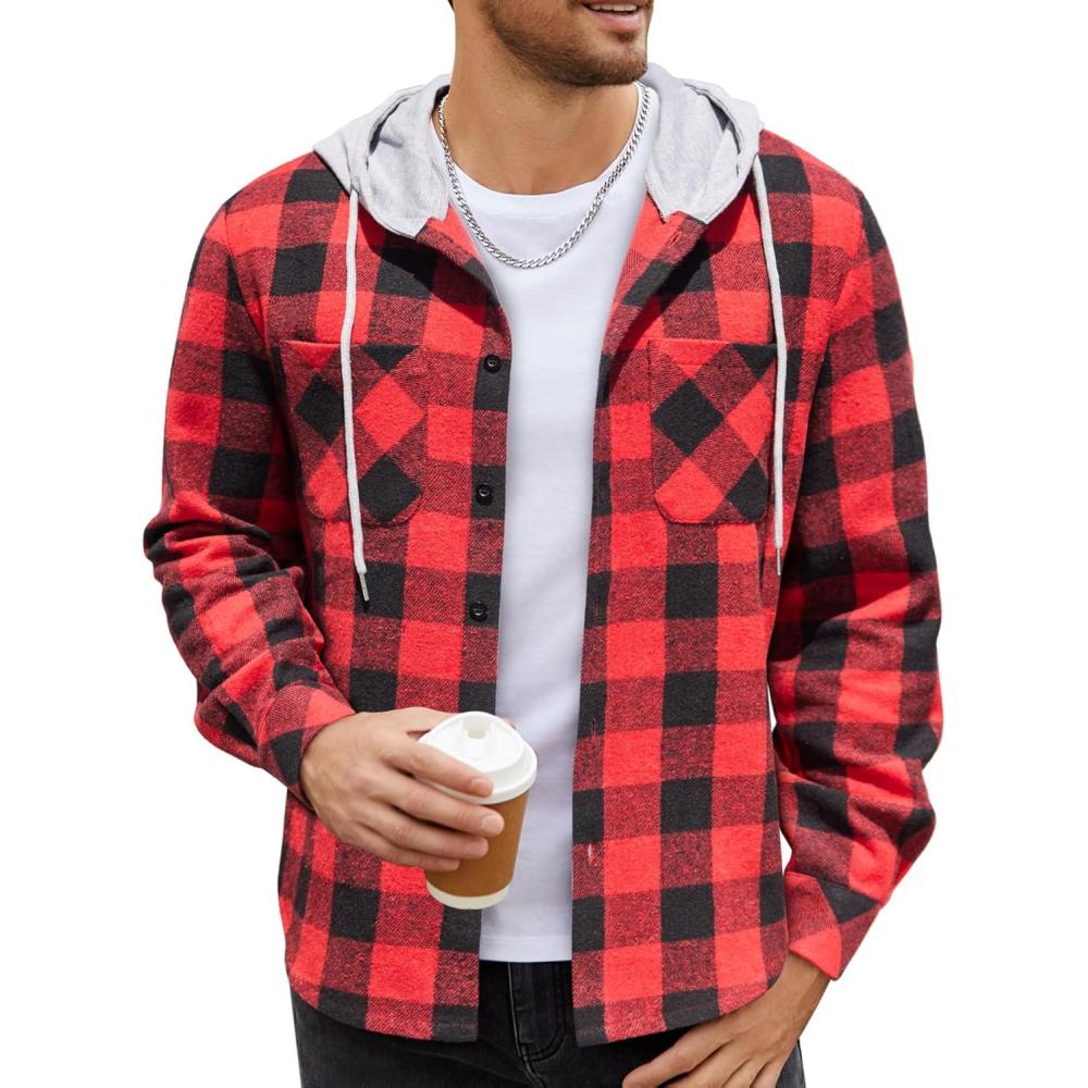 Introducing the Ultimate Men's Flannel Plaid Hoodie ShirtPremium Fabric for Ultimate ComfortCrafted from high-quality, soft flannel fabric, our Men's Flannel Plaid Hoodie Shirt Jacket offers a luxurious, skin-friendly feel. This versatile piece ensures all-day comfort and warmth, making it perfect for autumn, spring, and even chilly winter days. Experience the perfect blend of softness and durability with every wear.Thoughtful and Stylish DesignOur hoodie shirt jacket features a classic plaid pattern with a modern twist. Designed with a tailored fit, it includes a hood, adjustable cuffs, and a 7-button closure, providing both style and practicality. The two chest pockets add a touch of functionality, making it ideal for both casual and formal settings. Exude effortless style and mature charm with this must-have wardrobe staple.Versatile Styling OptionsThis plaid button-up shirt is a wardrobe essential that effortlessly adapts to various styles and occasions. Pair it with jeans, a t-shirt, and boots for a casual look, or dress it up with a sweater, trousers, and leather shoes for a refined ensemble. For a relaxed vibe, combine it with denim or corduroy pants. Its versatility allows you to create stylish outfits that suit any occasion.S Chest 43.7 inch–Waist 41.3 inch–Shoulder 18.8 inch–Sleeve 25.2 inch–Center Back Length 29.3 inchM Chest 45.7 inch–Waist 43.3 inch–Shoulder 19.3 inch–Sleeve 25.6 inch–Center Back Length 29.9 inchL Chest 48.7 inch–Waist 46.3 inch–Shoulder 20.0 inch–Sleeve 26.0 inch–Center Back Length 30.5 inchXL Chest 51.7 inch–Waist 49.3 inch–Shoulder 20.7 inch–Sleeve 26.4 inch–Center Back Length 31.1 inchXXL Chest 54.6 inch–Waist 52.3 inch–Shoulder 21.4 inch–Sleeve 26.8 inch–Center Back Length 31.7 inchXXXL Chest 57.6 inch–Waist 55.3 inch–Shoulder 22.1 inch–Sleeve 26.8 inch–Center Back Length 31.7 inch
