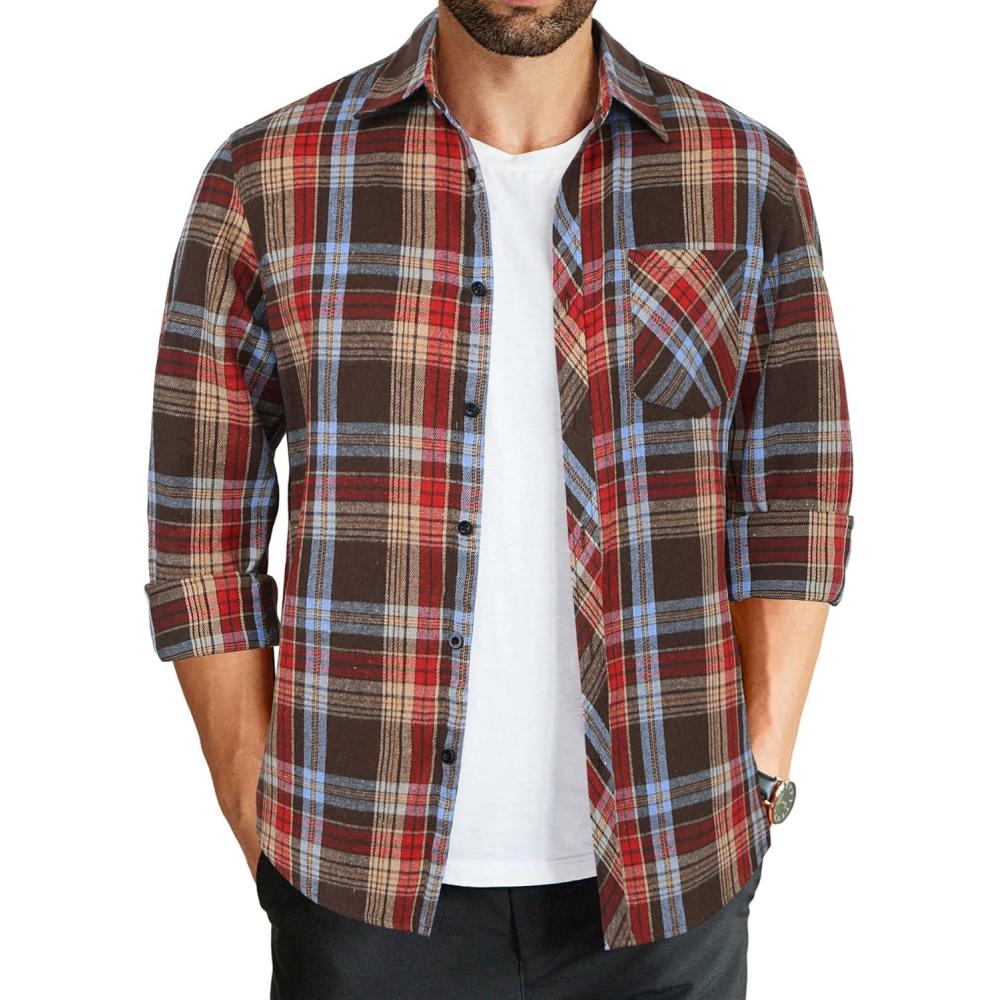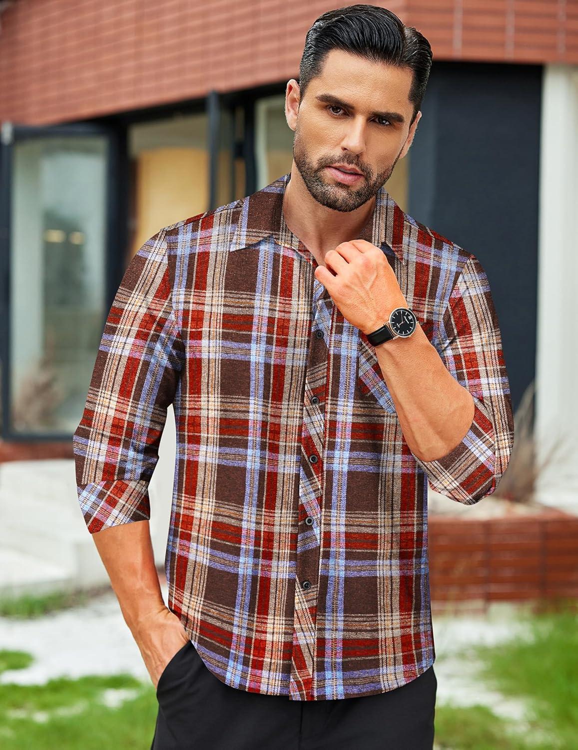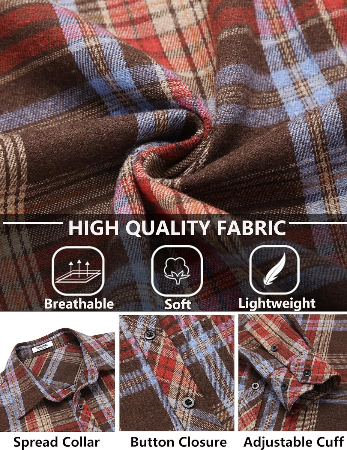 COOFANDY Men’s Flannel Plaid Shirts Long Sleeve Button Down Shirts Casual Fall Shirt Jacket(Brown)