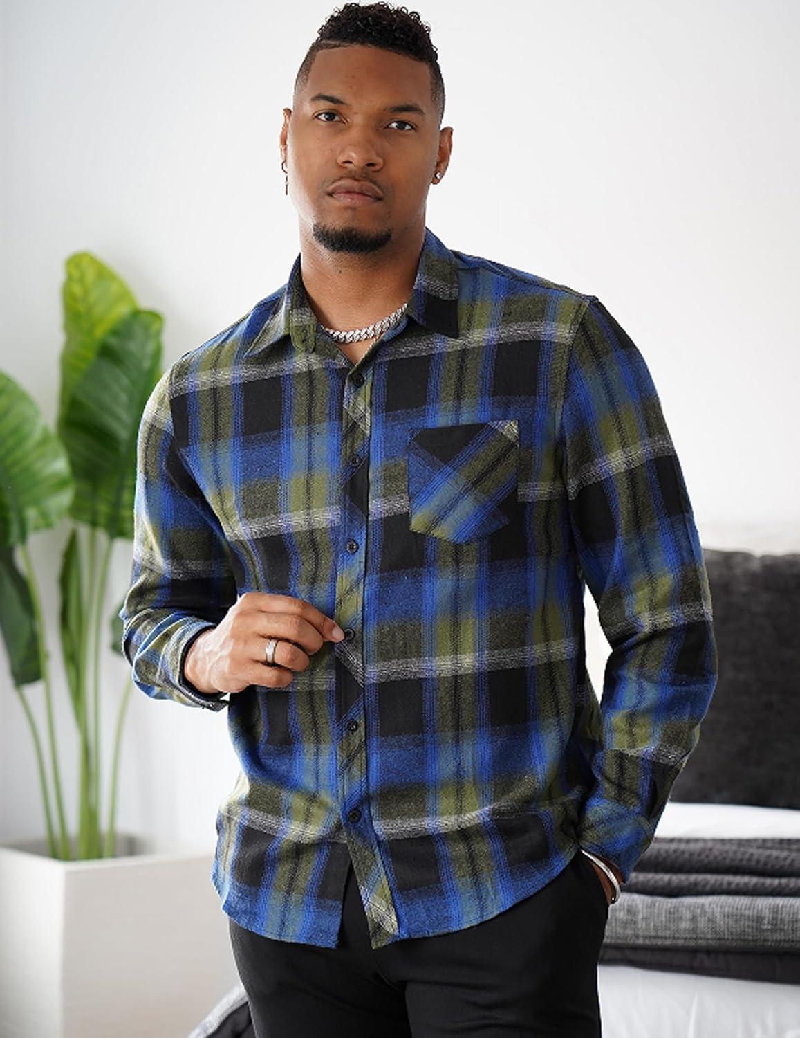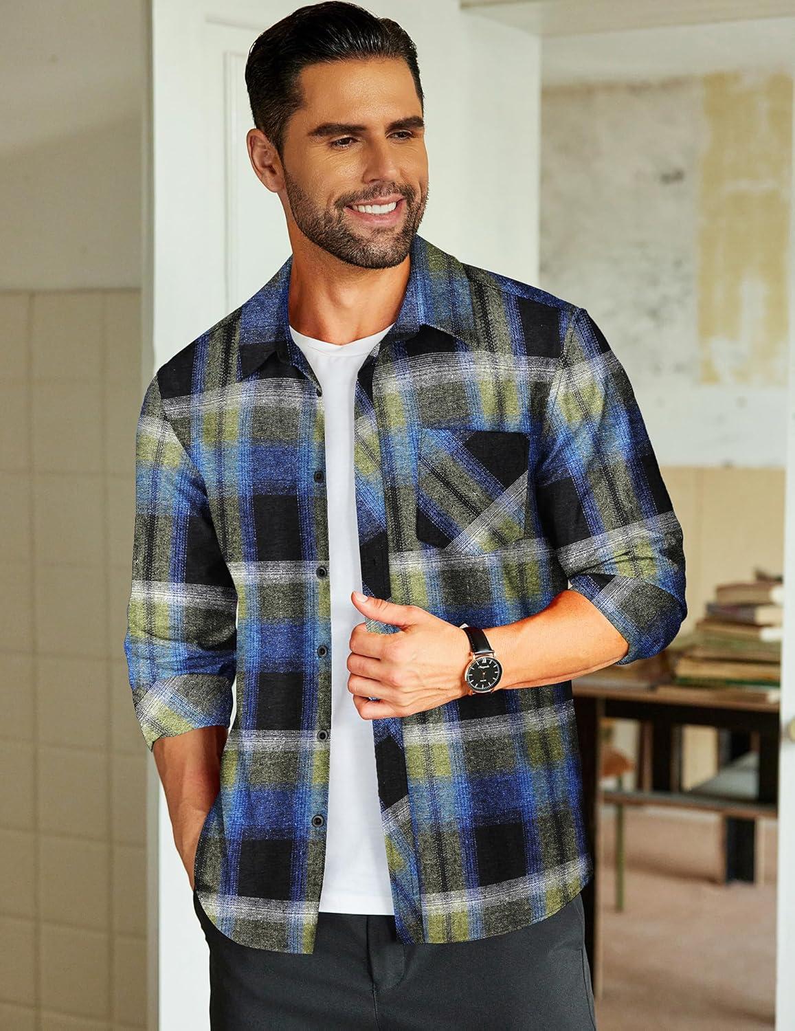 COOFANDY Men’s Flannel Plaid Shirts Long Sleeve Button Down Shirts Casual Fall Shirt Jacket(Dark Blue)