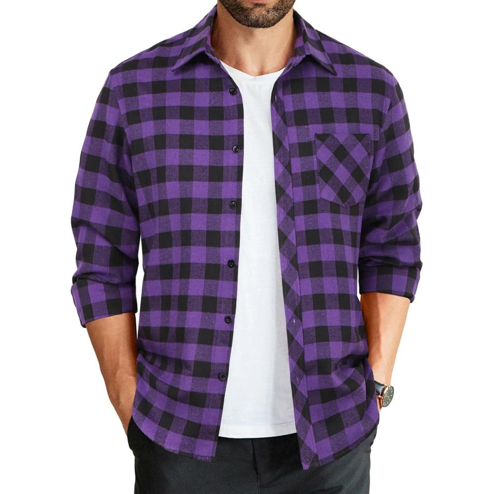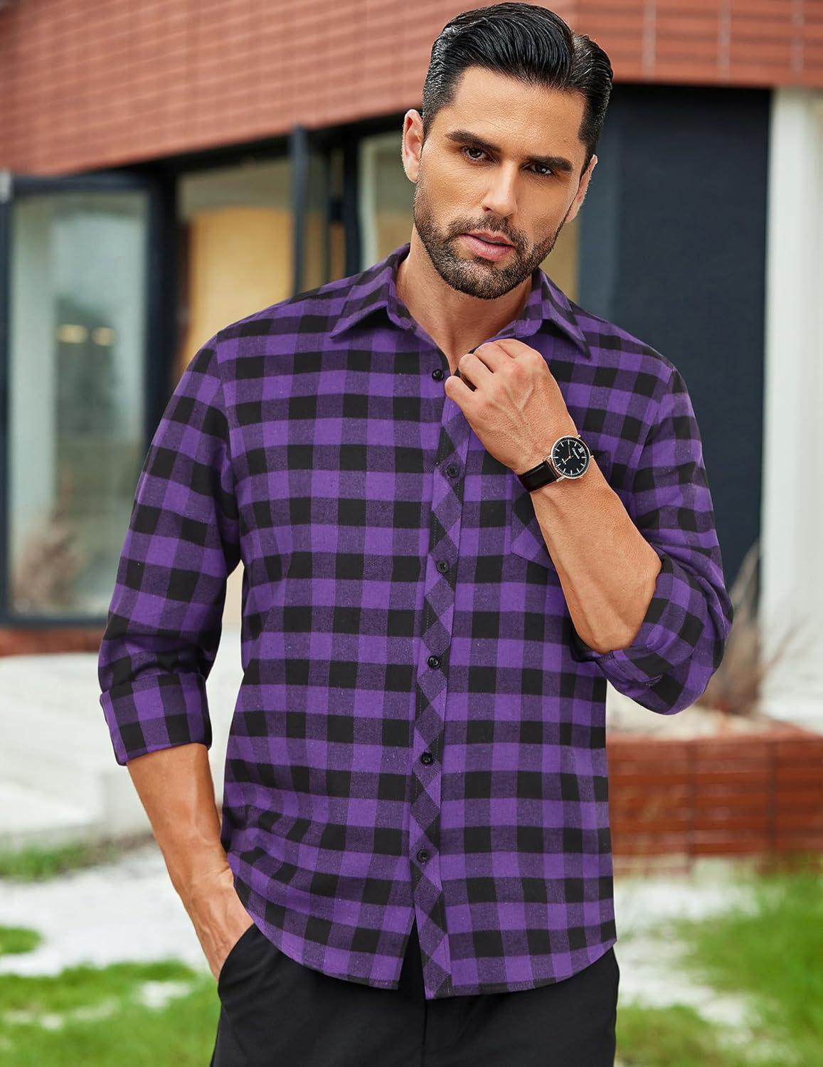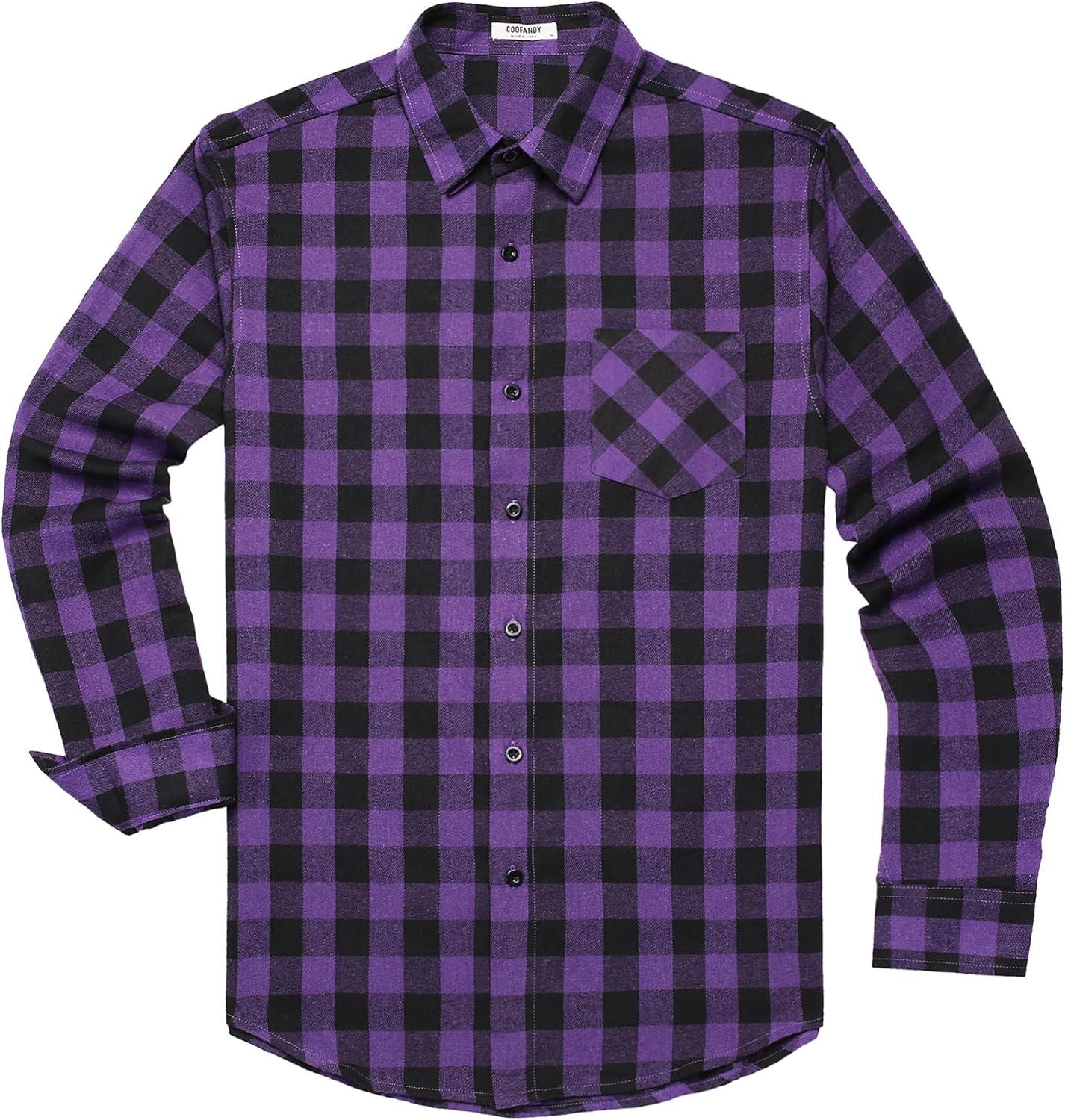 COOFANDY Men’s Flannel Plaid Shirts Long Sleeve Button Down Shirts Casual Fall Shirt Jacket(Purple)