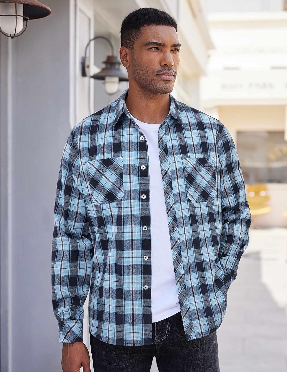 COOFANDY Men’s Flannel Plaid Shirts Long Sleeve Casual Button Down Shirt with Pockets(Blue Black Plaid)