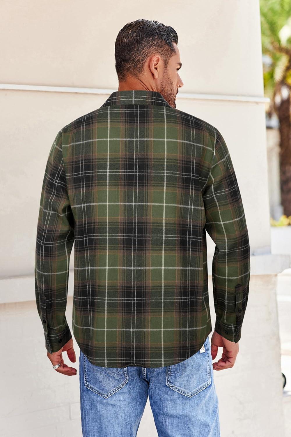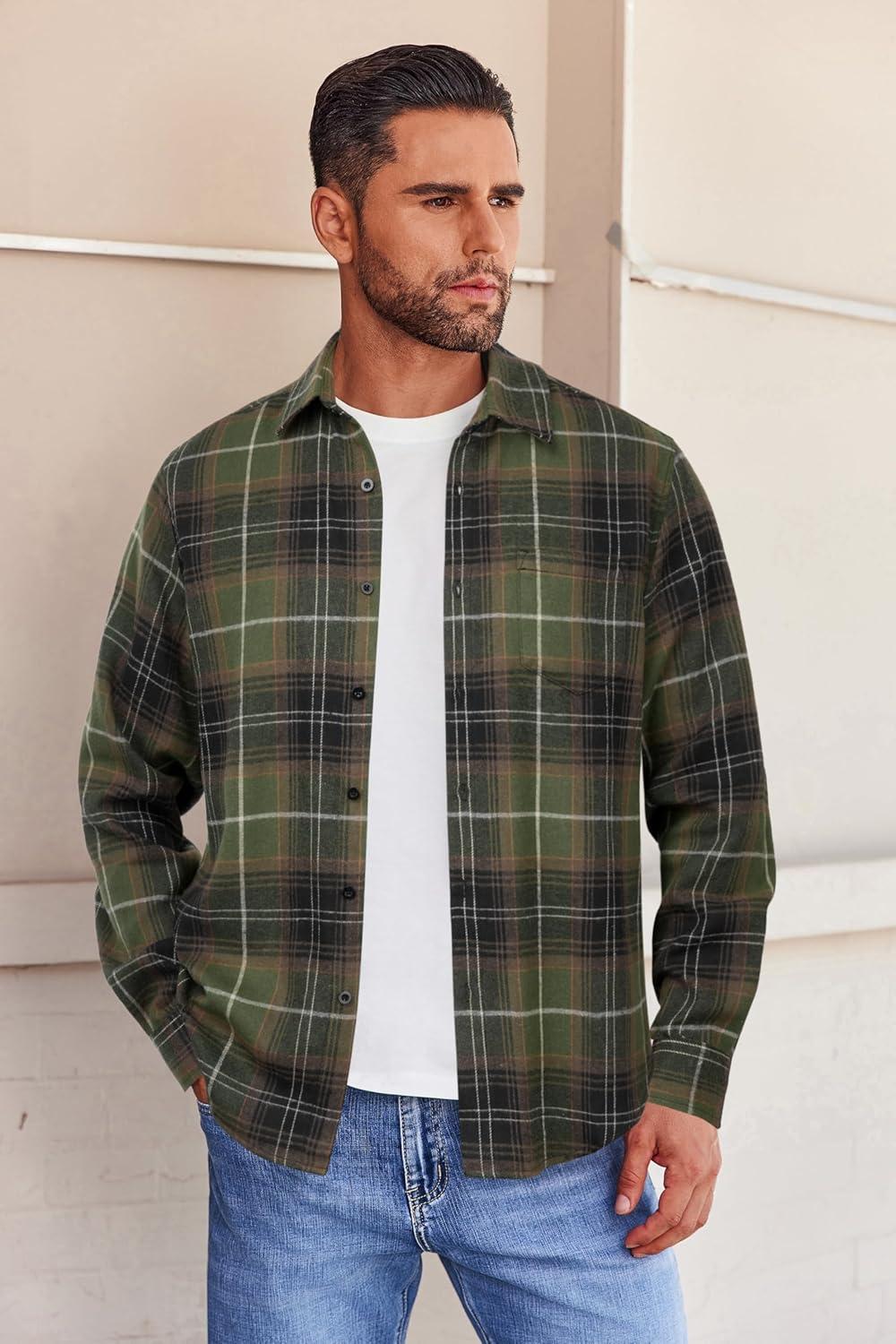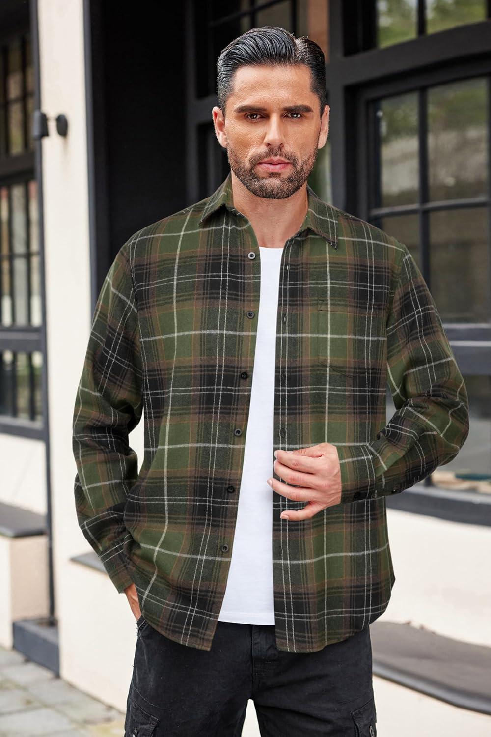 COOFANDY Mens Flannel Shirts Long Sleeve Button Down Shirt with Pocket Casual Shirts Work Shirts for Men(Army Green Black Plaid)