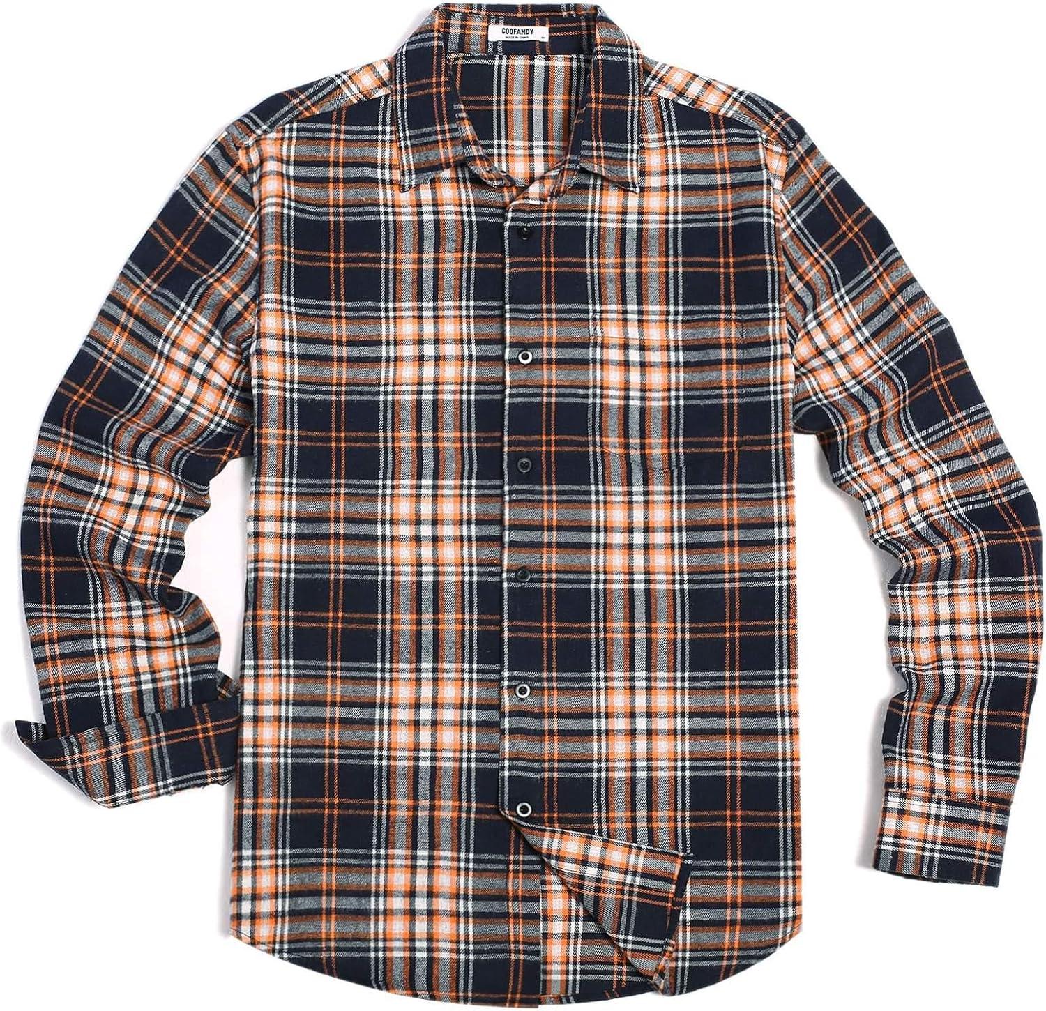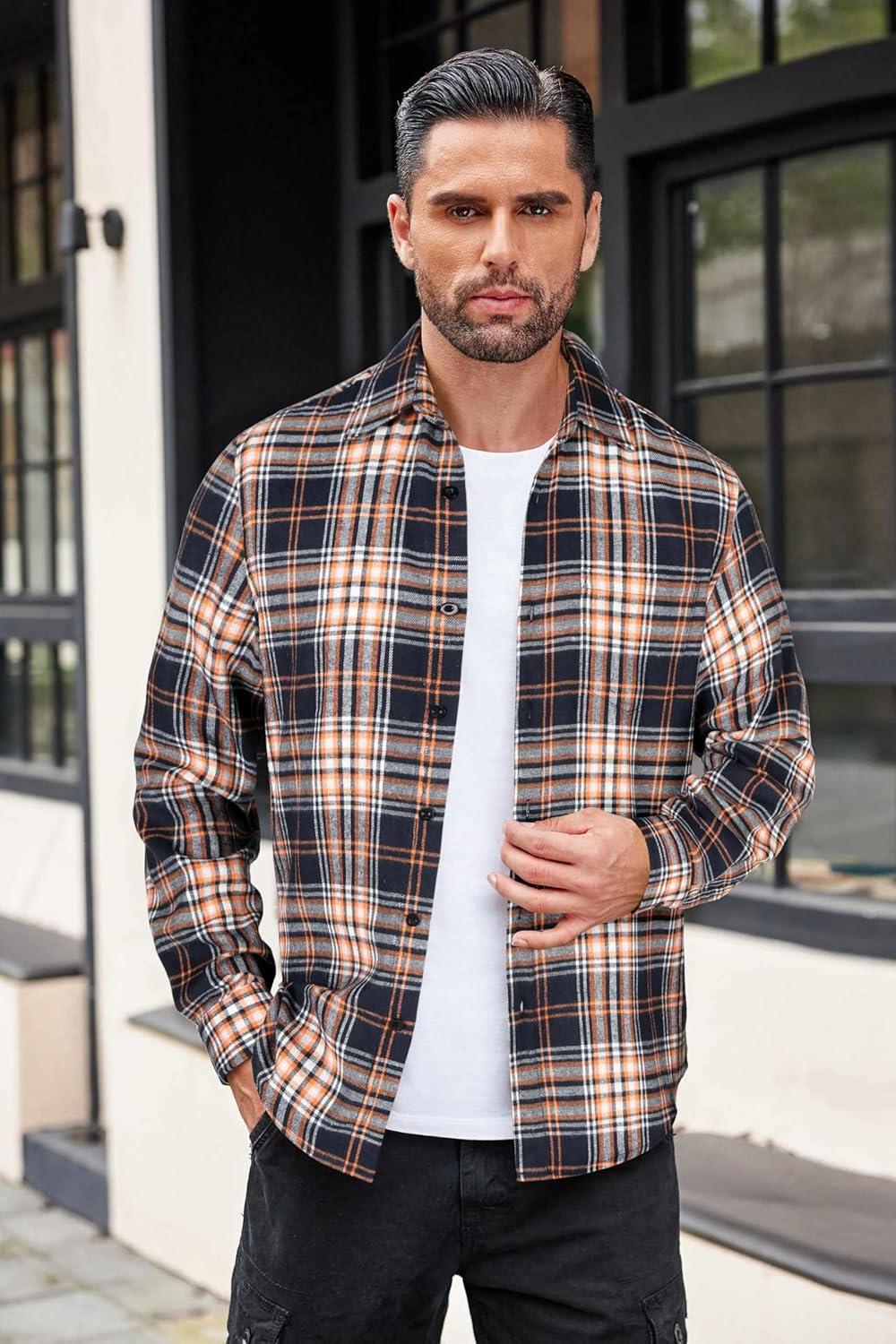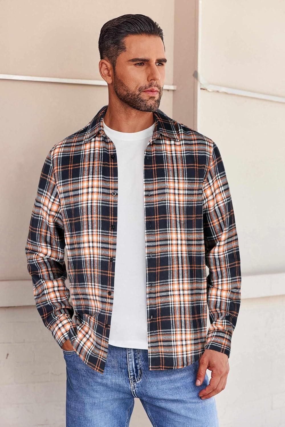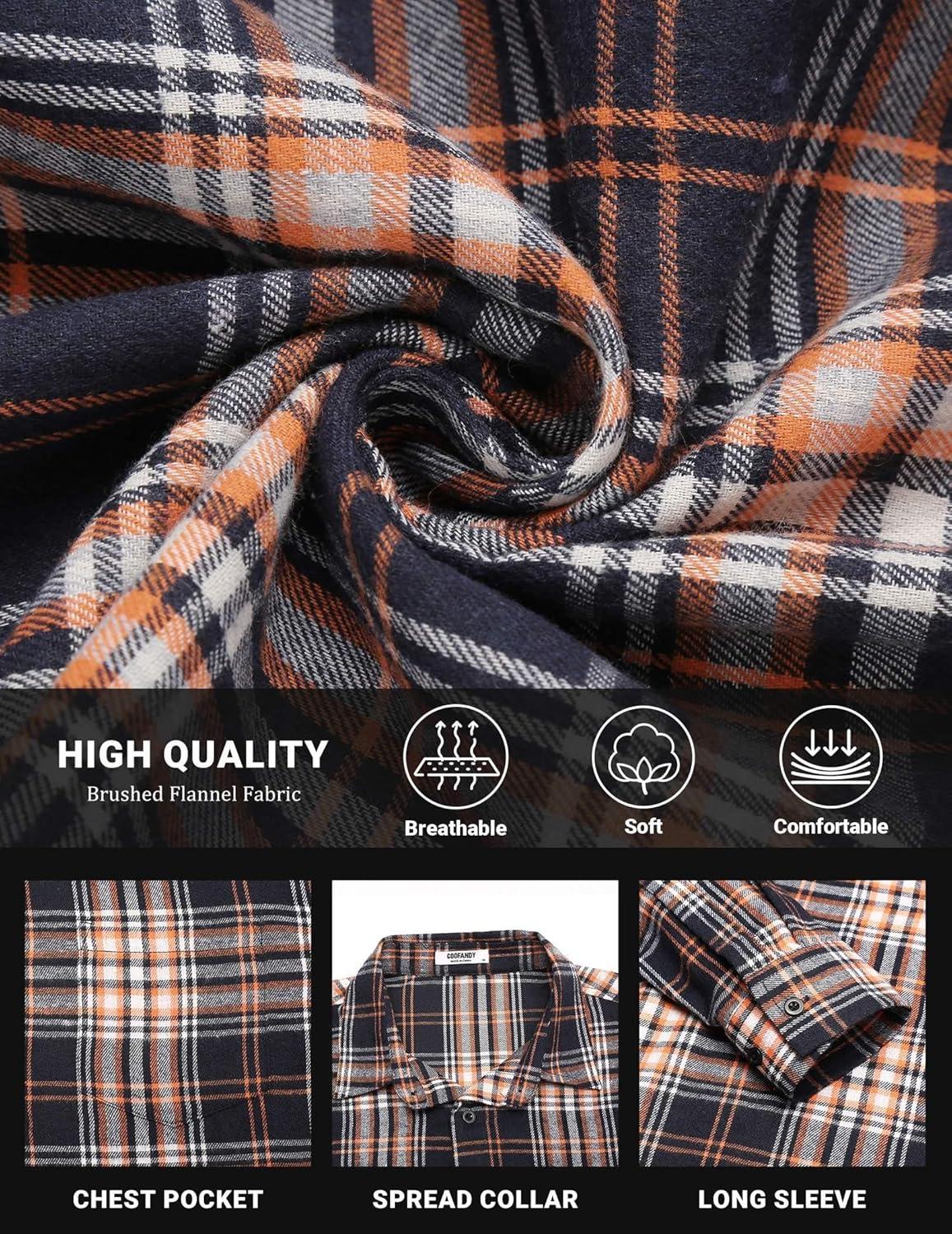Score big savings on COOFANDY Mens Flannel Shirts Long Sleeve Button Down Shirt with Pocket Casual Shirts Work Shirts for Men(Orange Navy White Plaid) during our back-to-school sale. Limited quantities available.